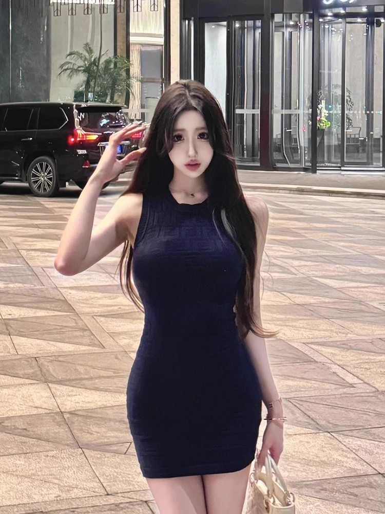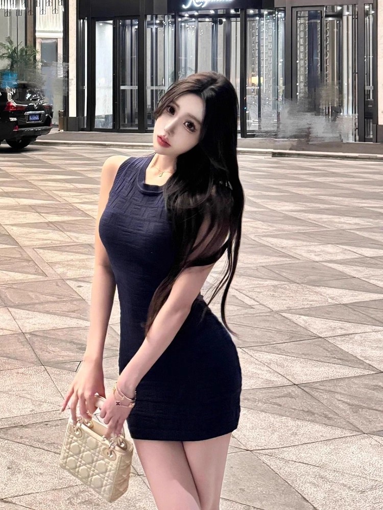여성용 여름 섹시 아이스 실크 니트 드레스, 고급스러운 분위기, 슬림핏, 힙라인을 강조하는 스커트, 허리를 날씬하게 보이게 하는 베스트 스커트