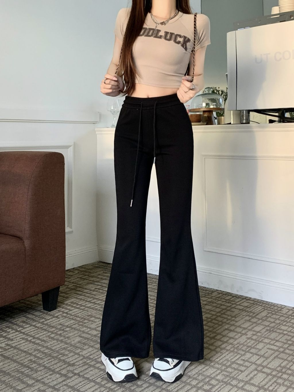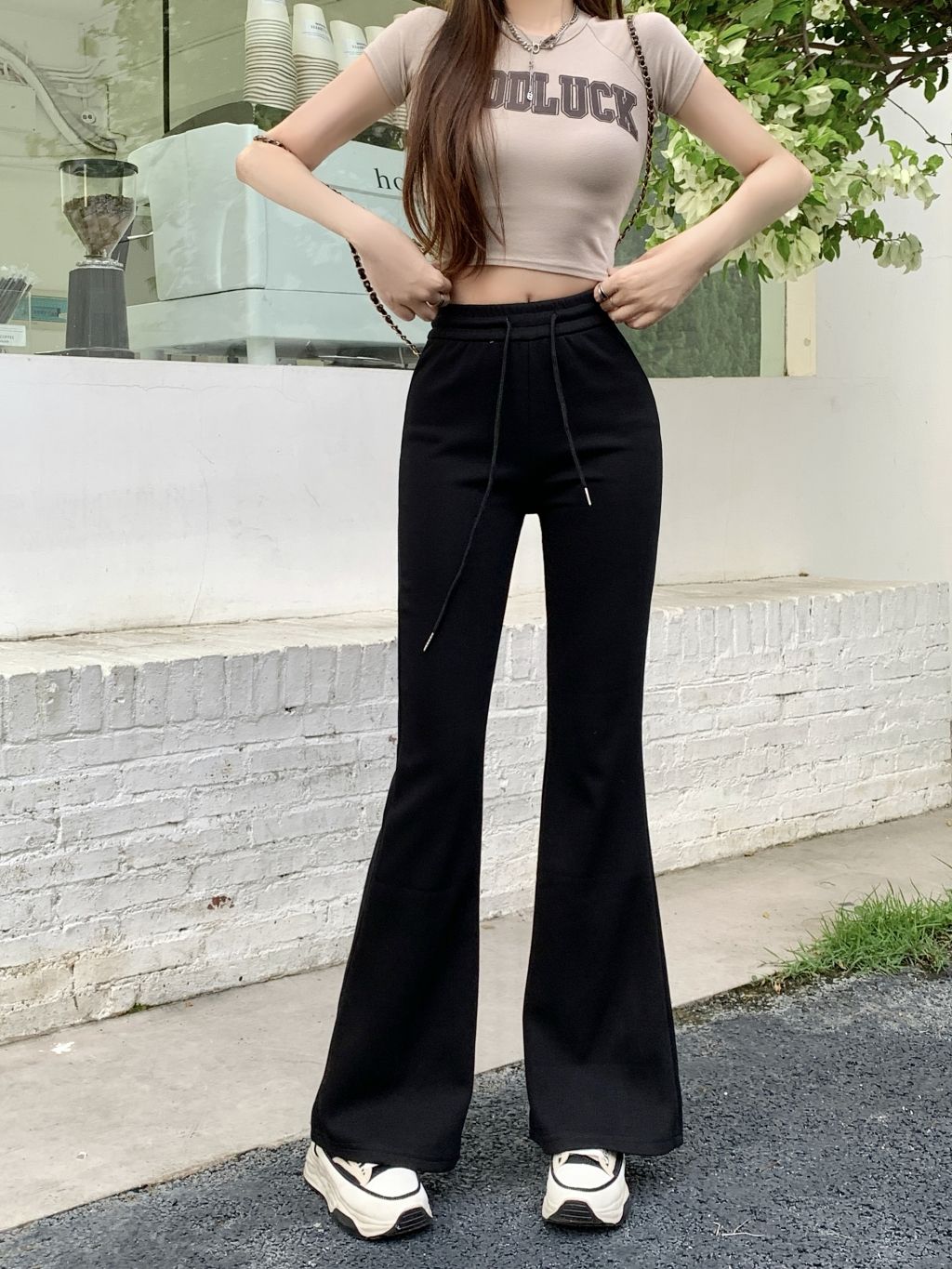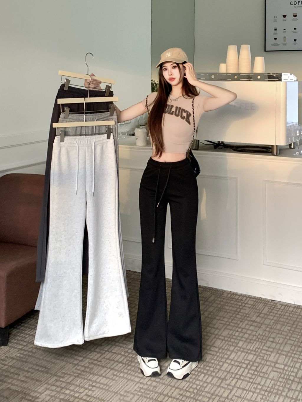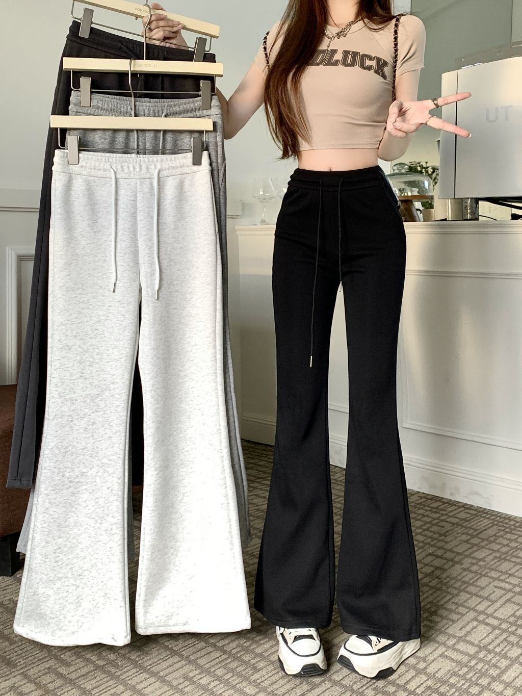 华棉复合 秋装微喇运动裤女高腰显瘦美式喇叭卫裤