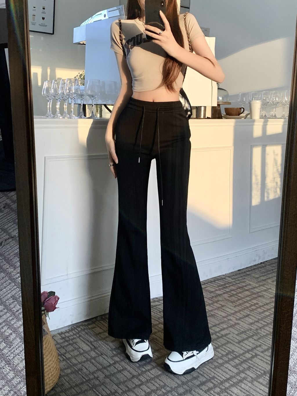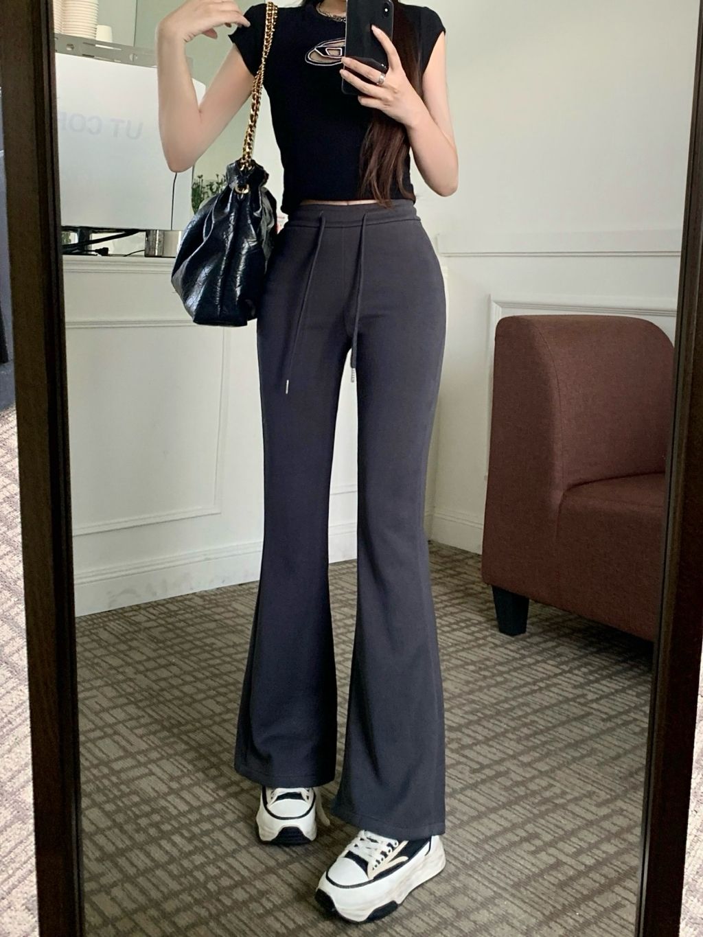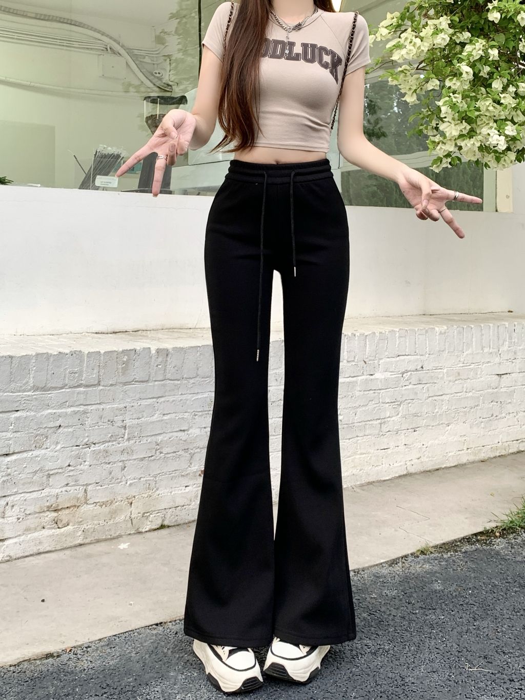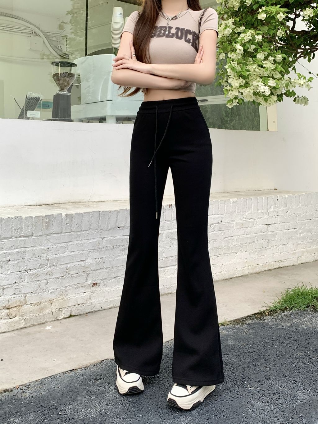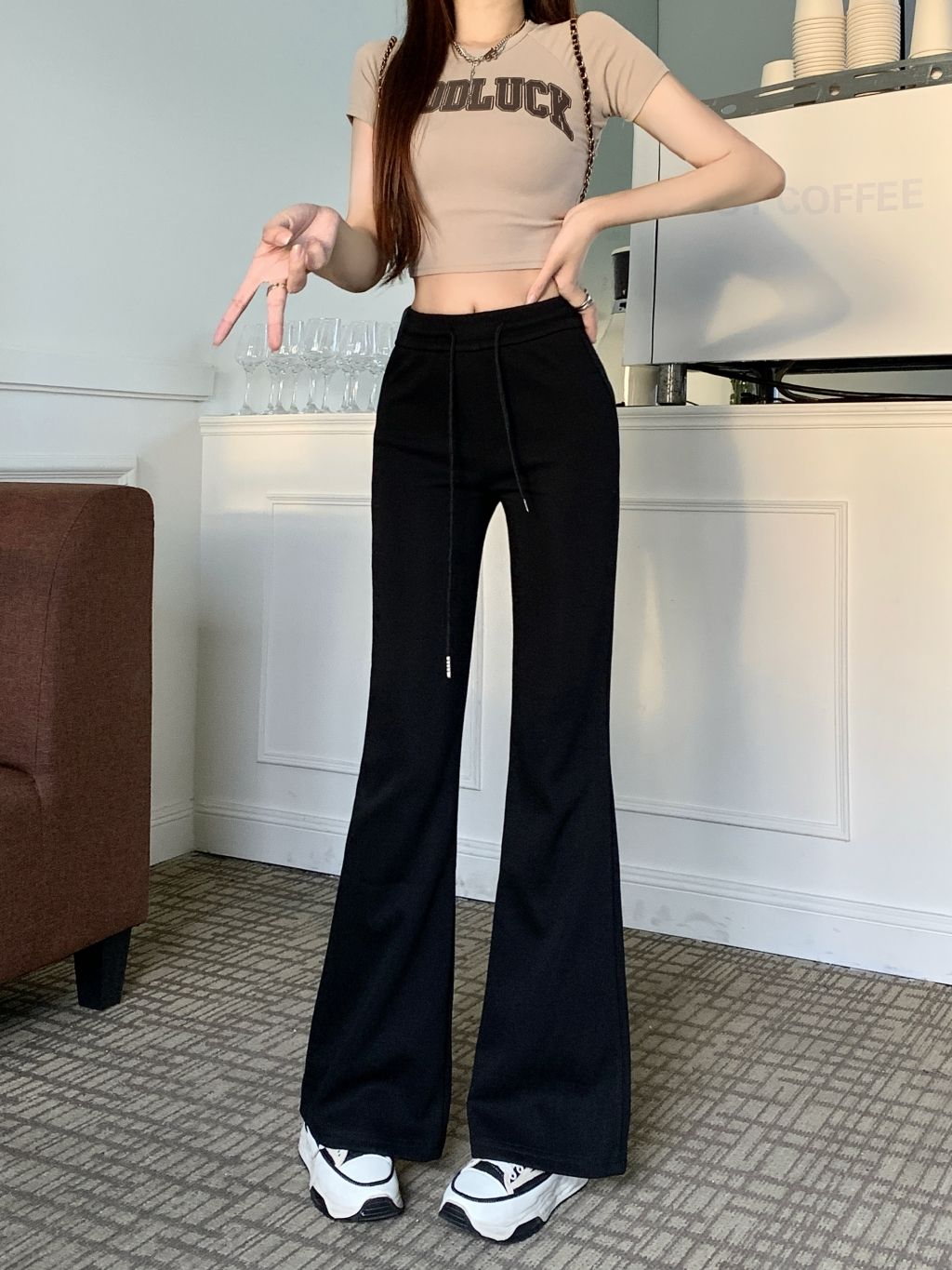 华棉复合 秋装微喇运动裤女高腰显瘦美式喇叭卫裤