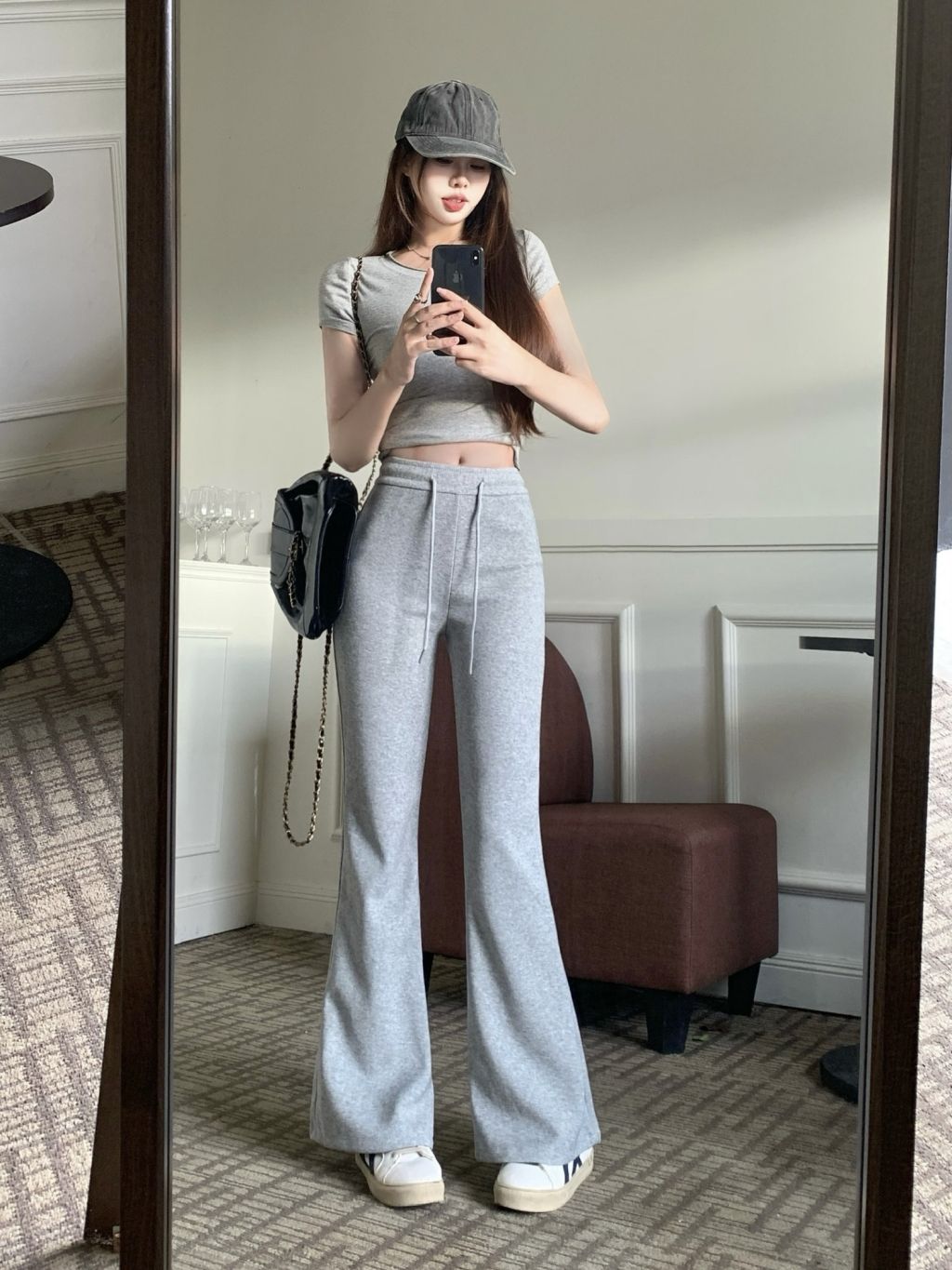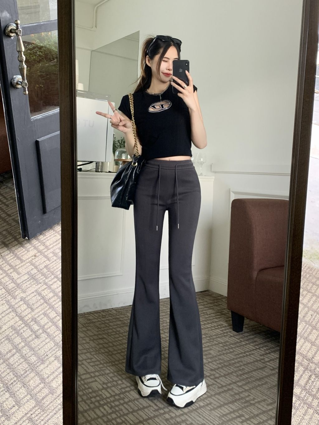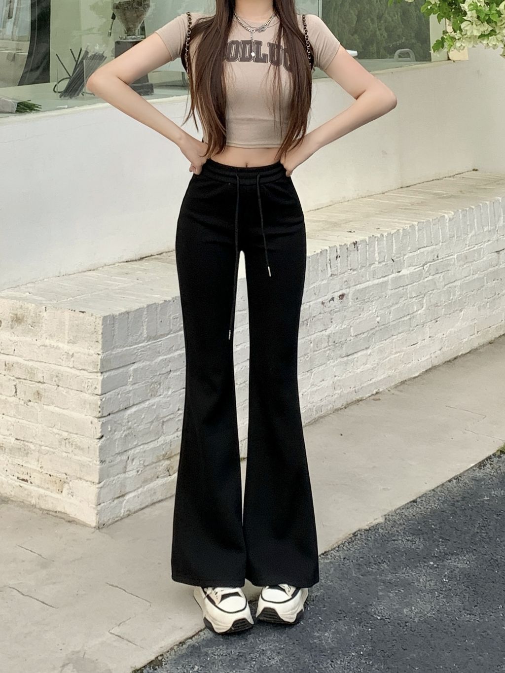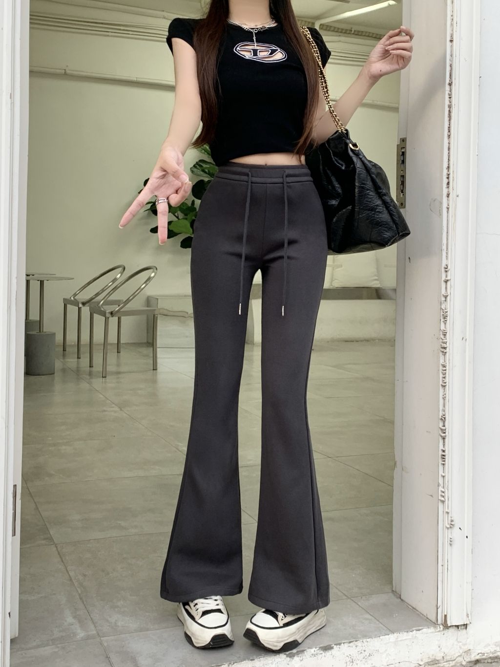 华棉复合 秋装微喇运动裤女高腰显瘦美式喇叭卫裤