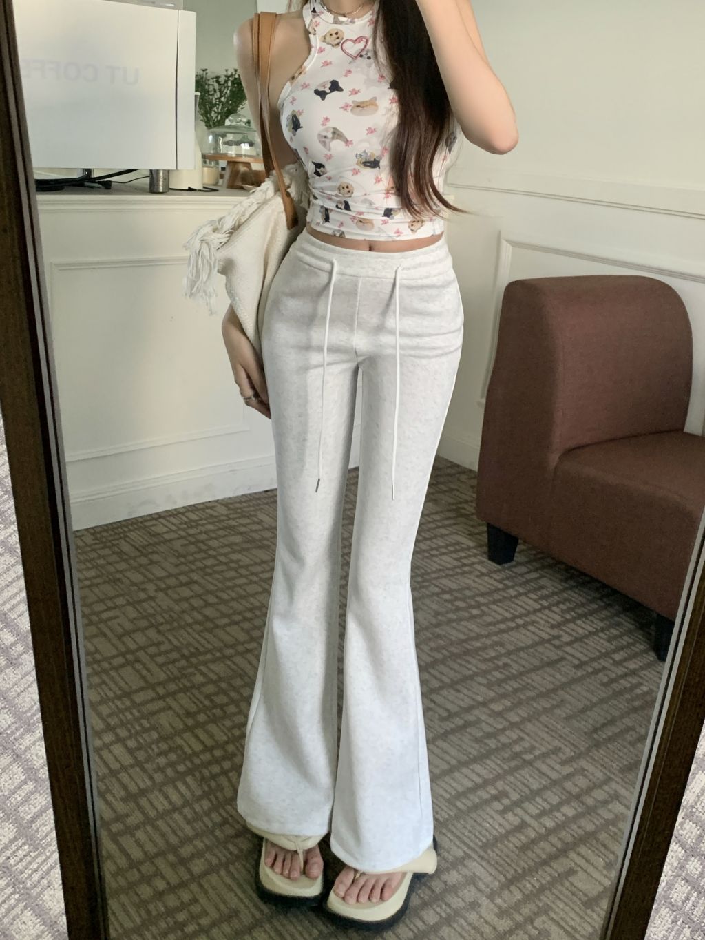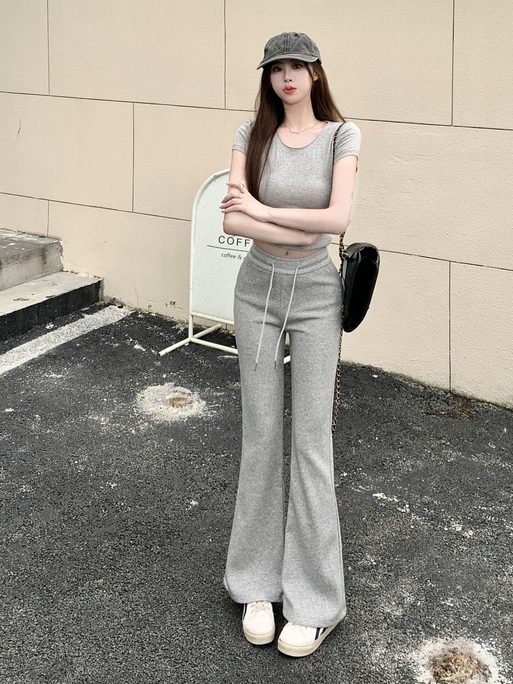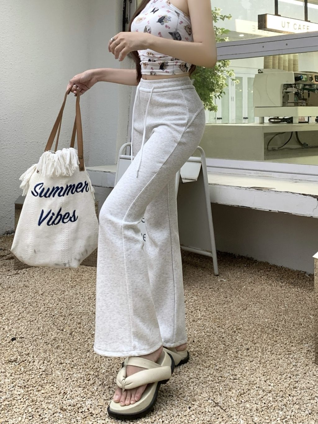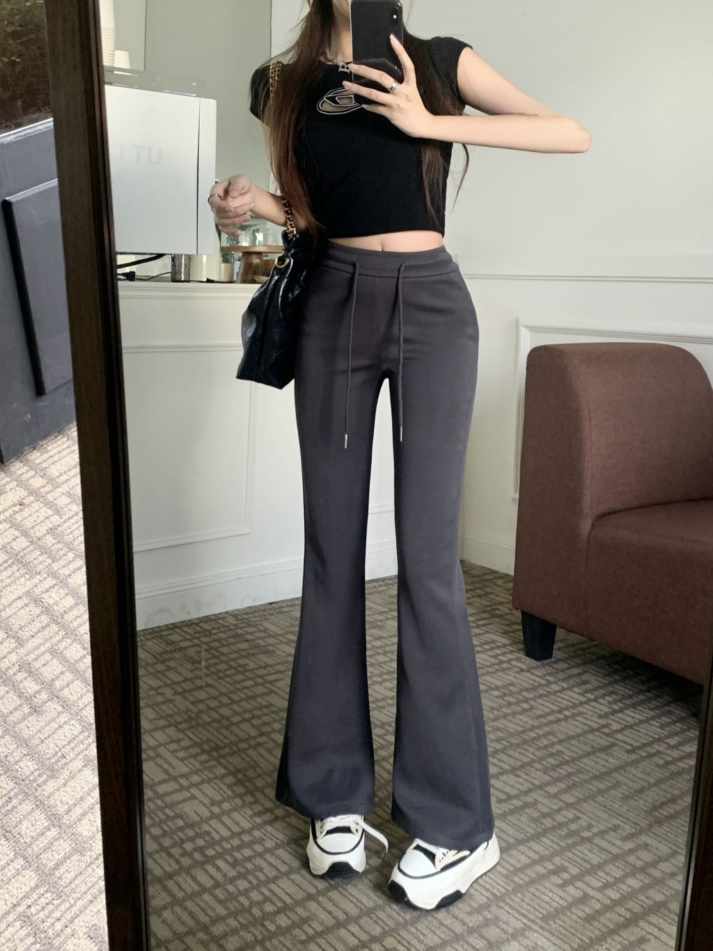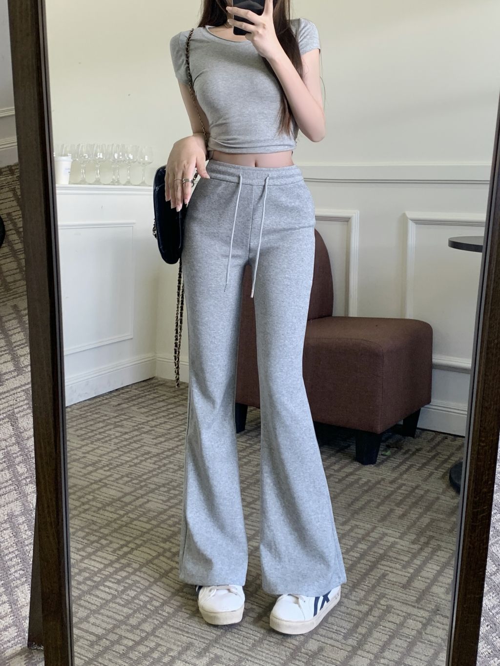 华棉复合 秋装微喇运动裤女高腰显瘦美式喇叭卫裤
