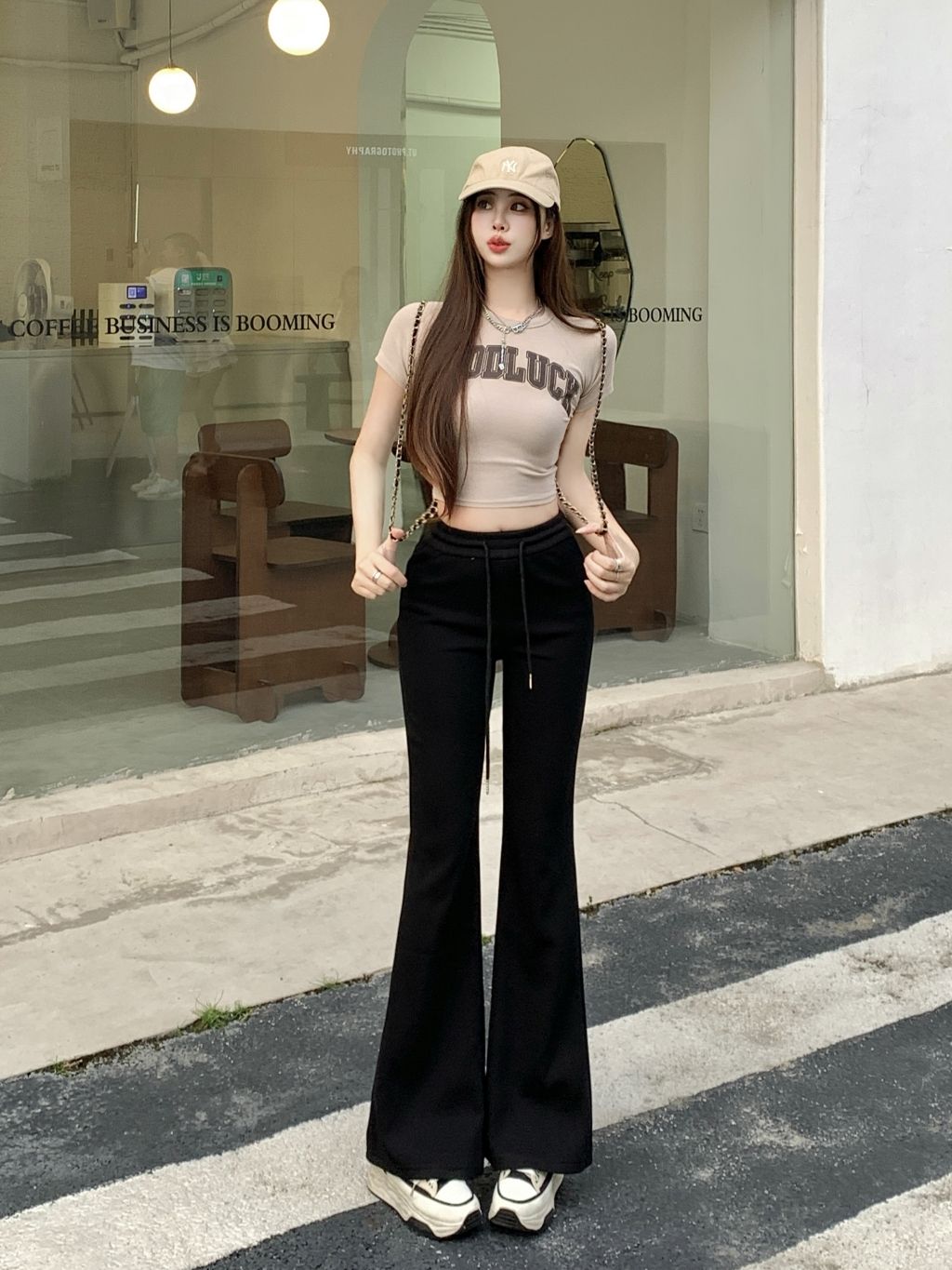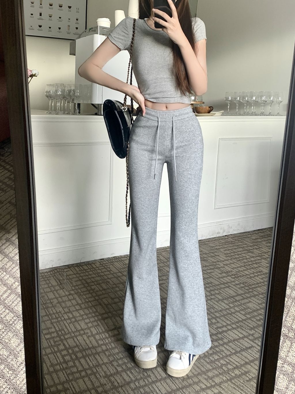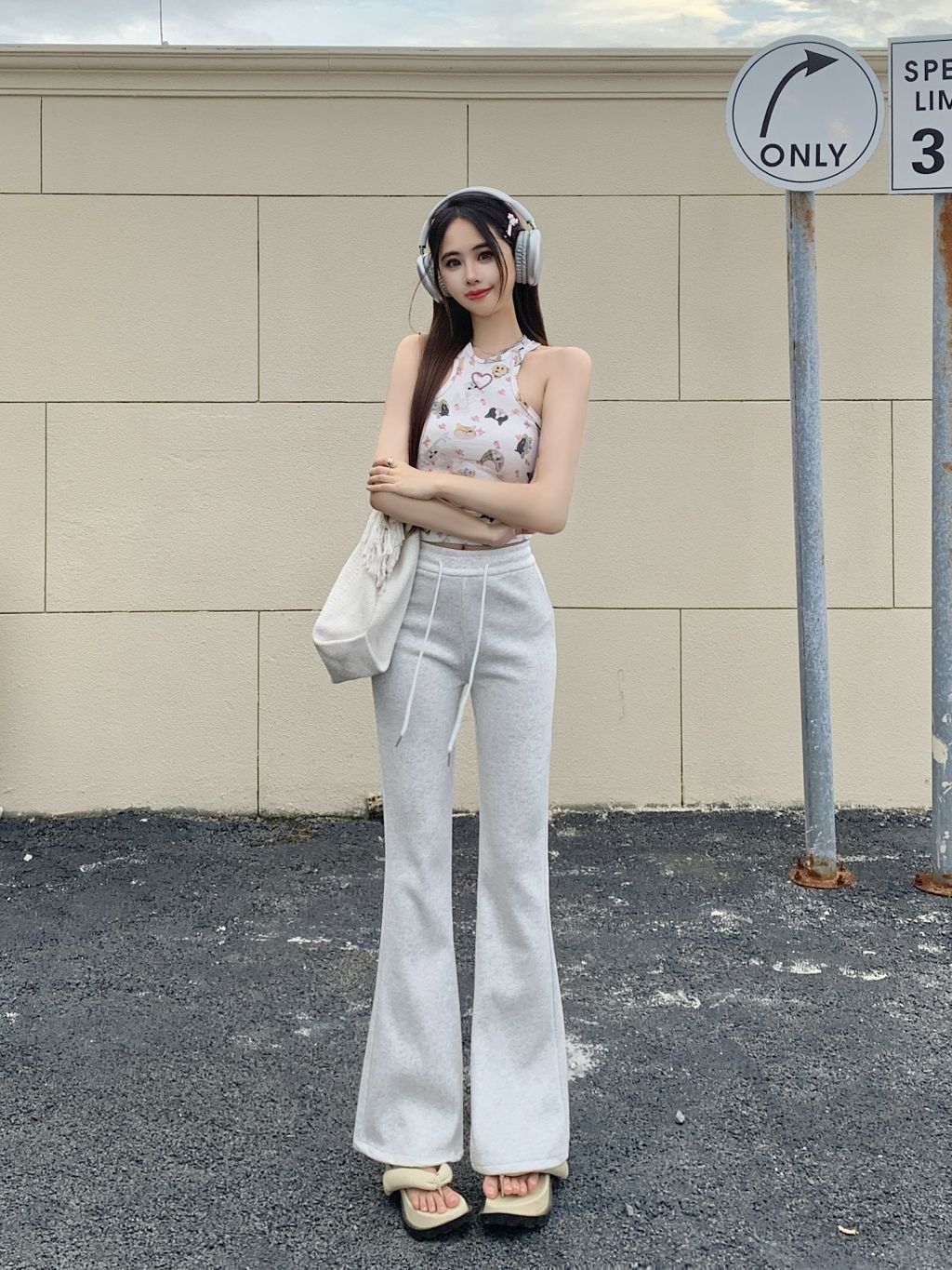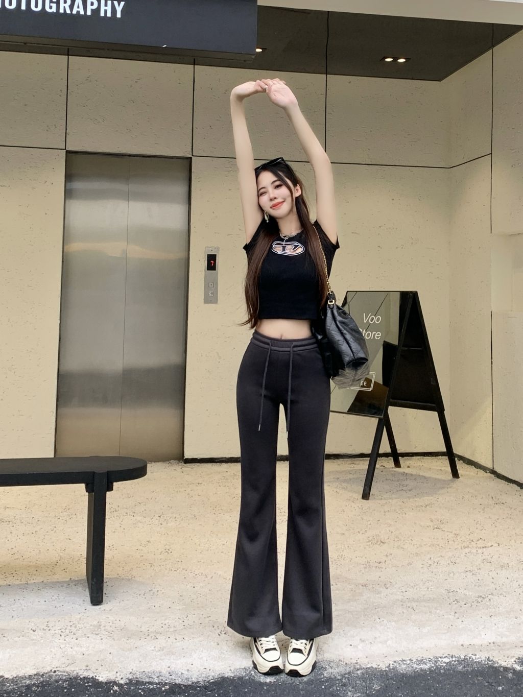 华棉复合 秋装微喇运动裤女高腰显瘦美式喇叭卫裤