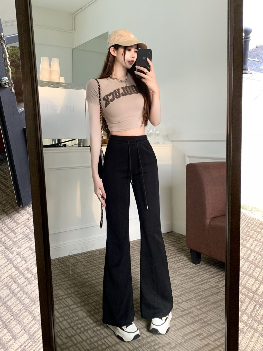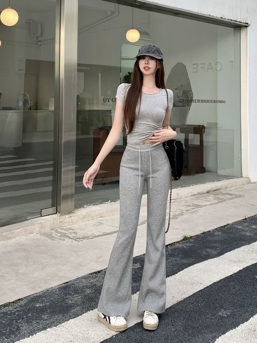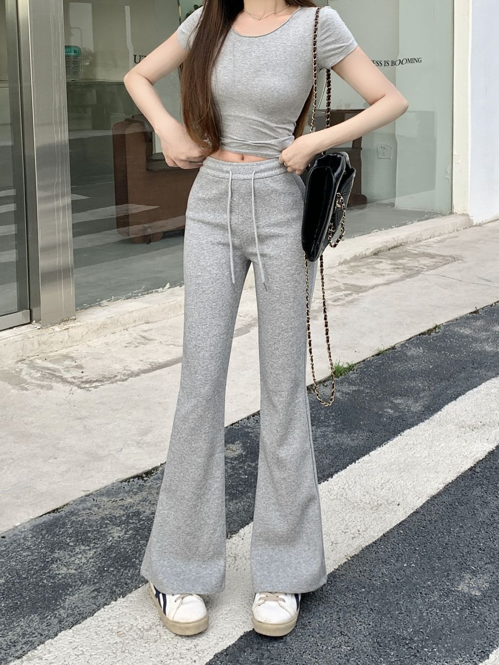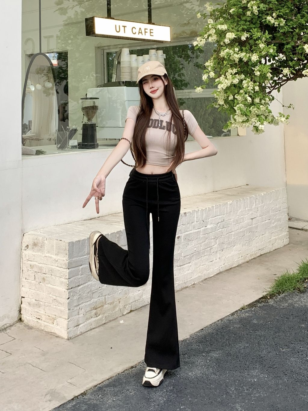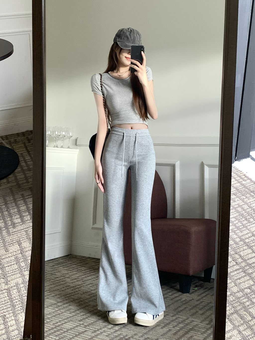 华棉复合 秋装微喇运动裤女高腰显瘦美式喇叭卫裤