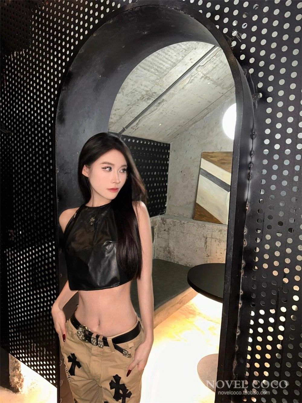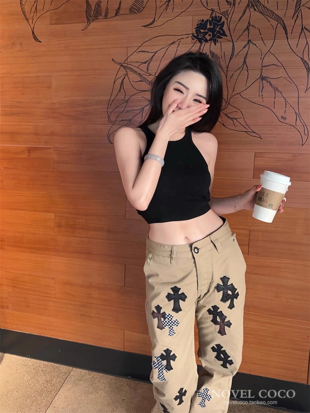 여성용 가죽 크로스 진, 가죽 포켓, 루즈핏, 로우라이즈, 스트레이트 레그, 슬림핏, 캐주얼 롱 팬츠