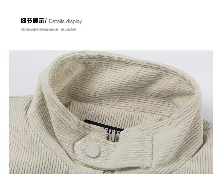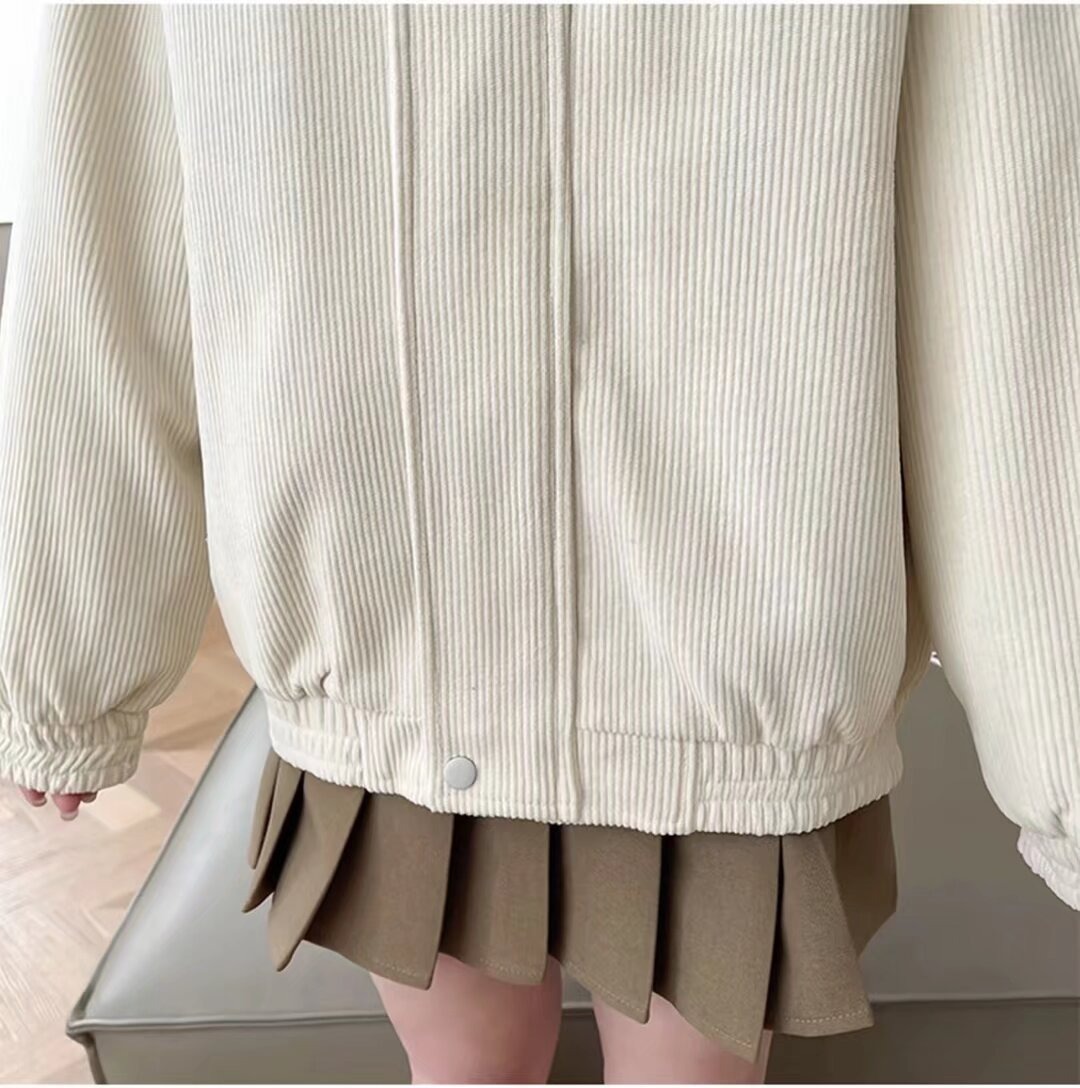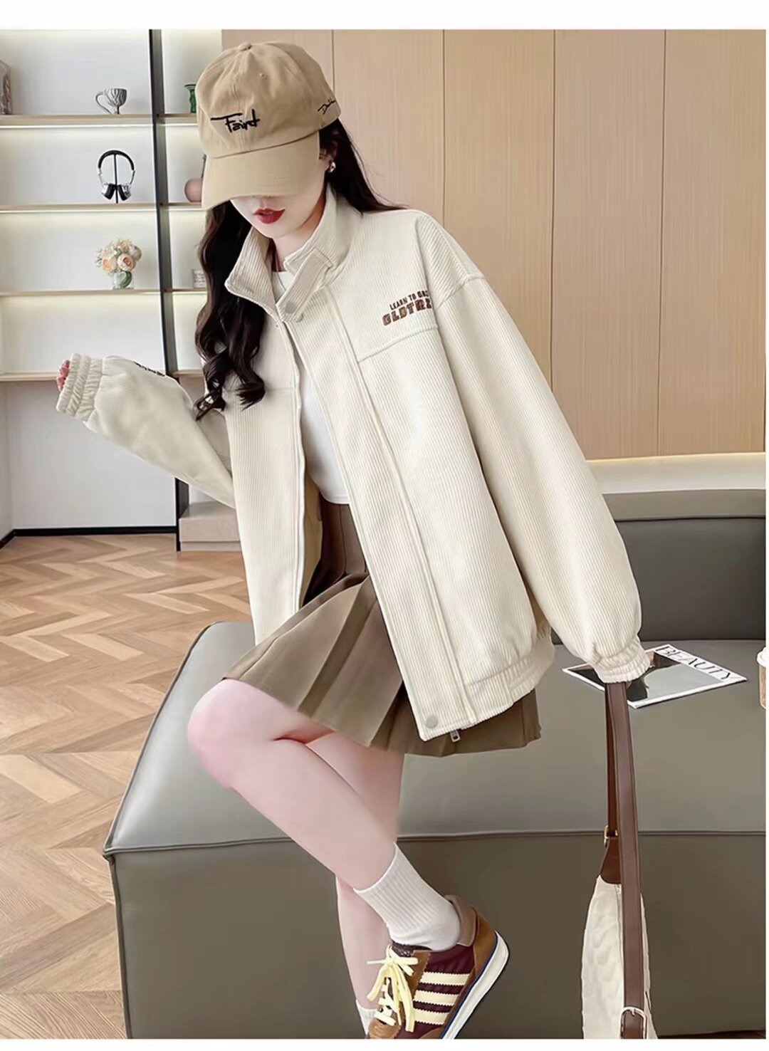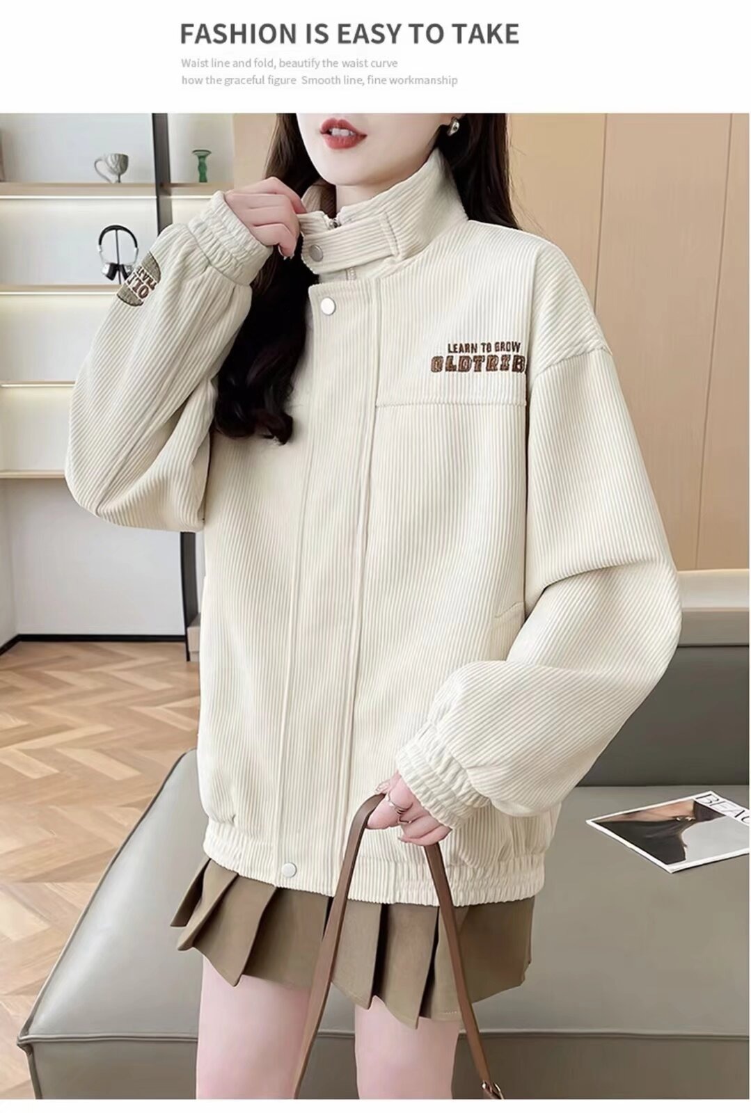 2025년 봄/가을 신상 살구색 스탠드 칼라 코듀로이 재킷 (남녀 공용, 루즈핏, 활용도 높은 캐주얼 스포츠 재킷)