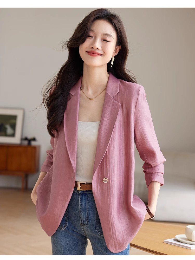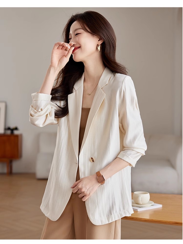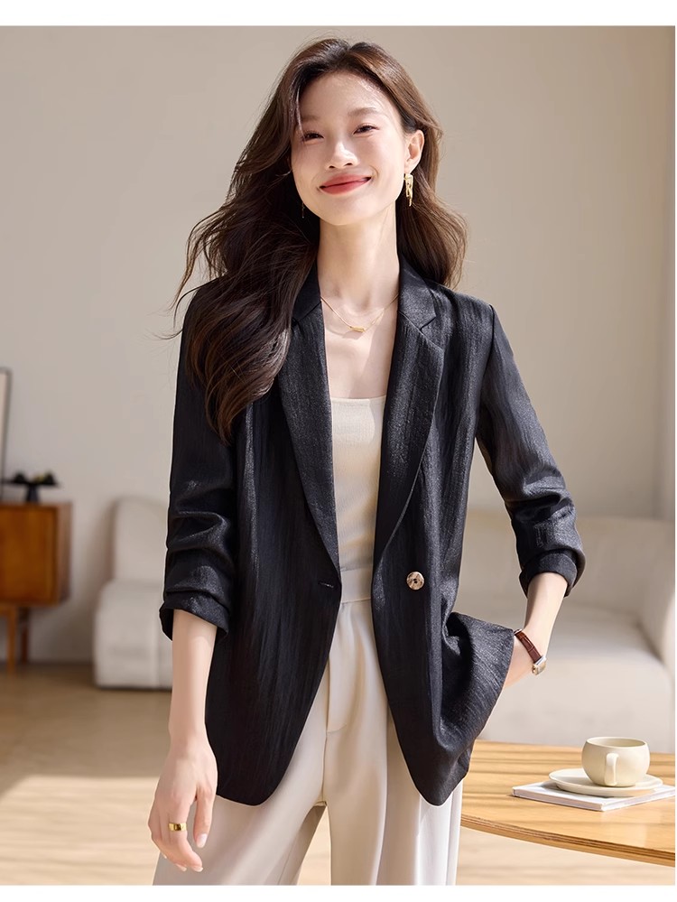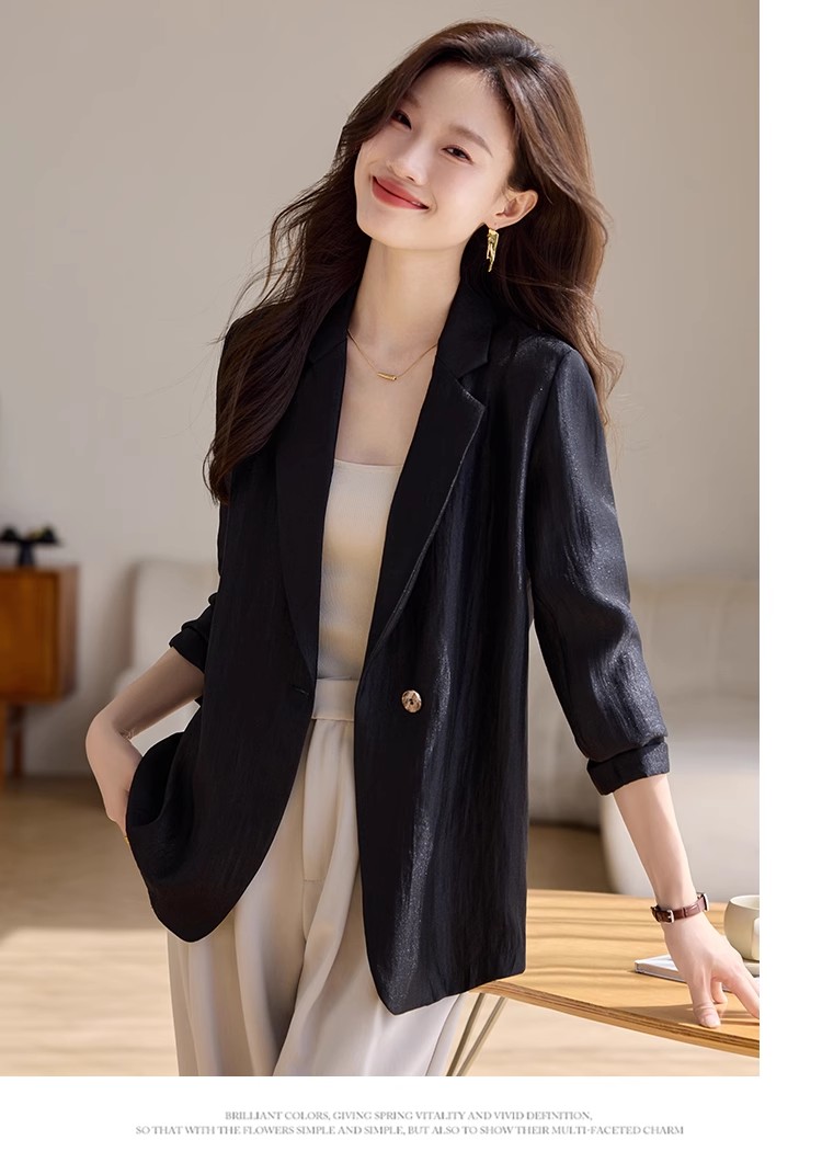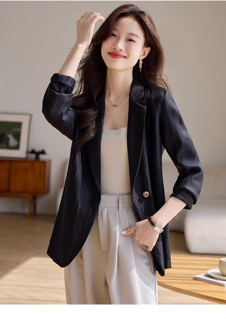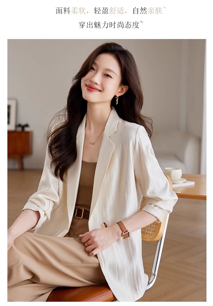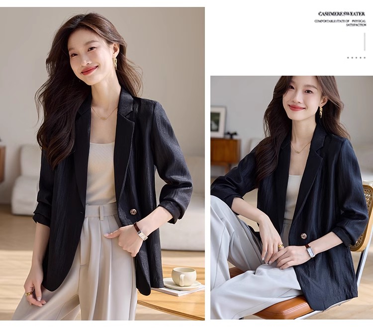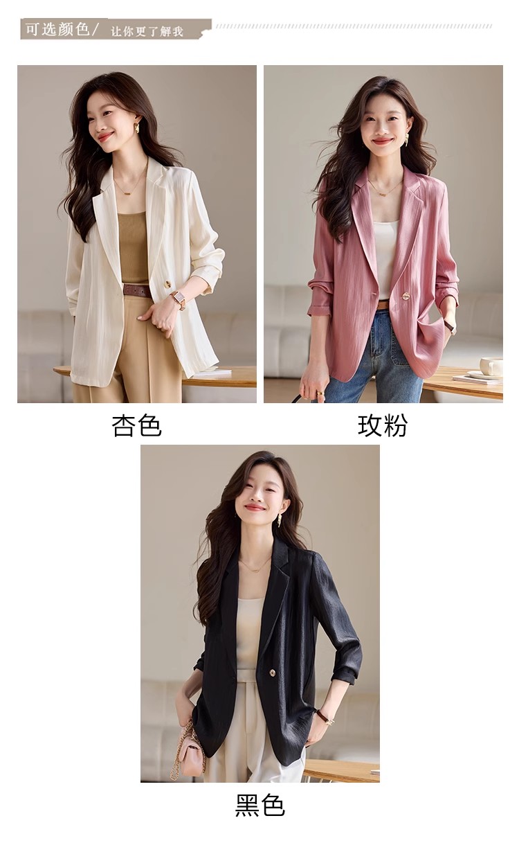 2025年春秋新款真丝西装上衣女高端气质显瘦桑蚕丝长袖外套薄西服