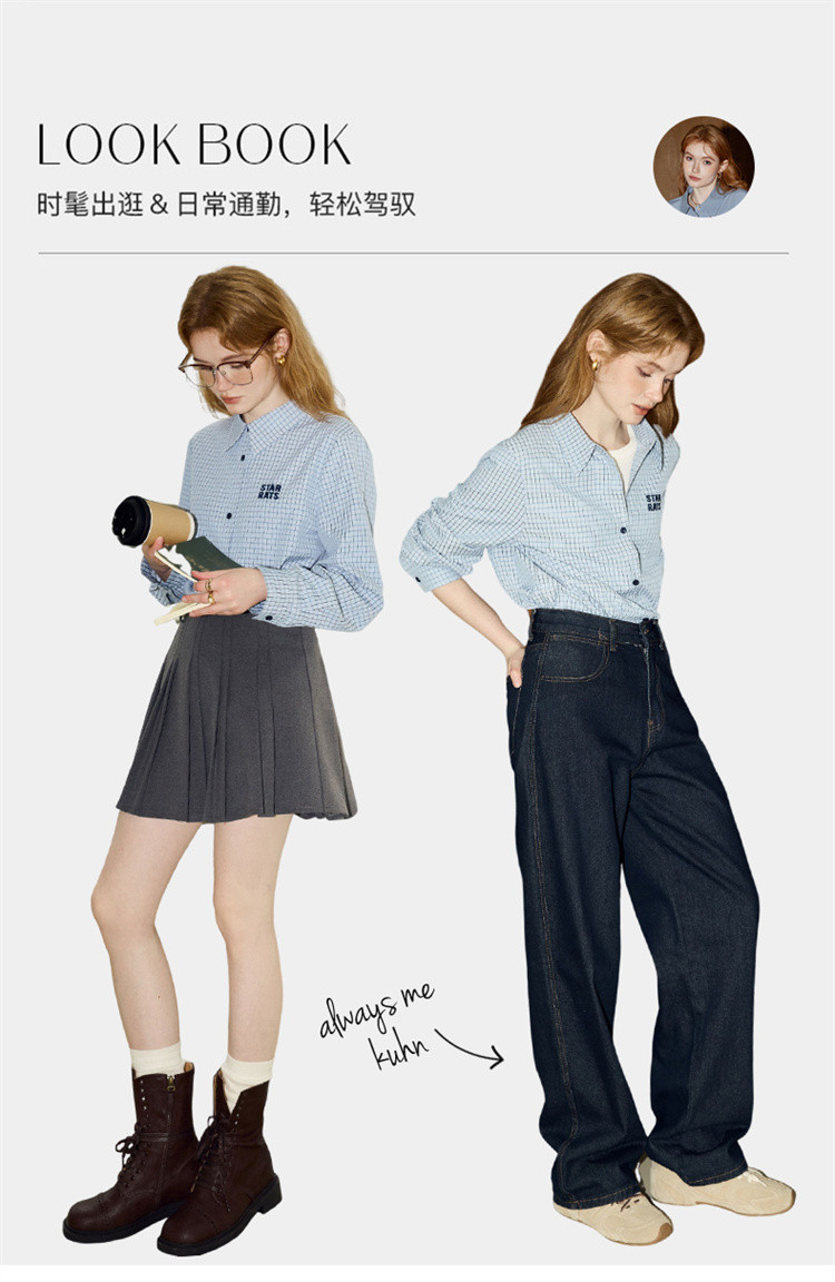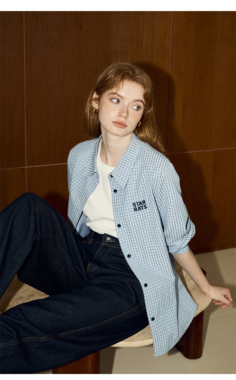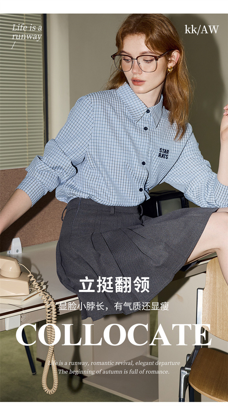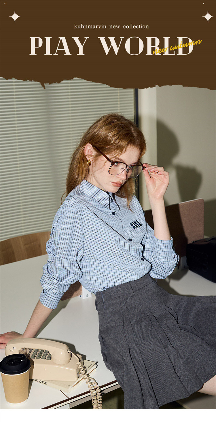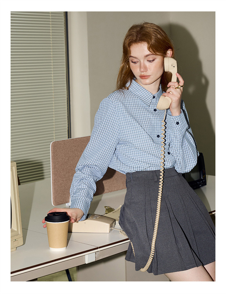 여성용 체크무늬 긴팔 셔츠, 2025년 가을, 산뜻하고 캐주얼한 아우터.