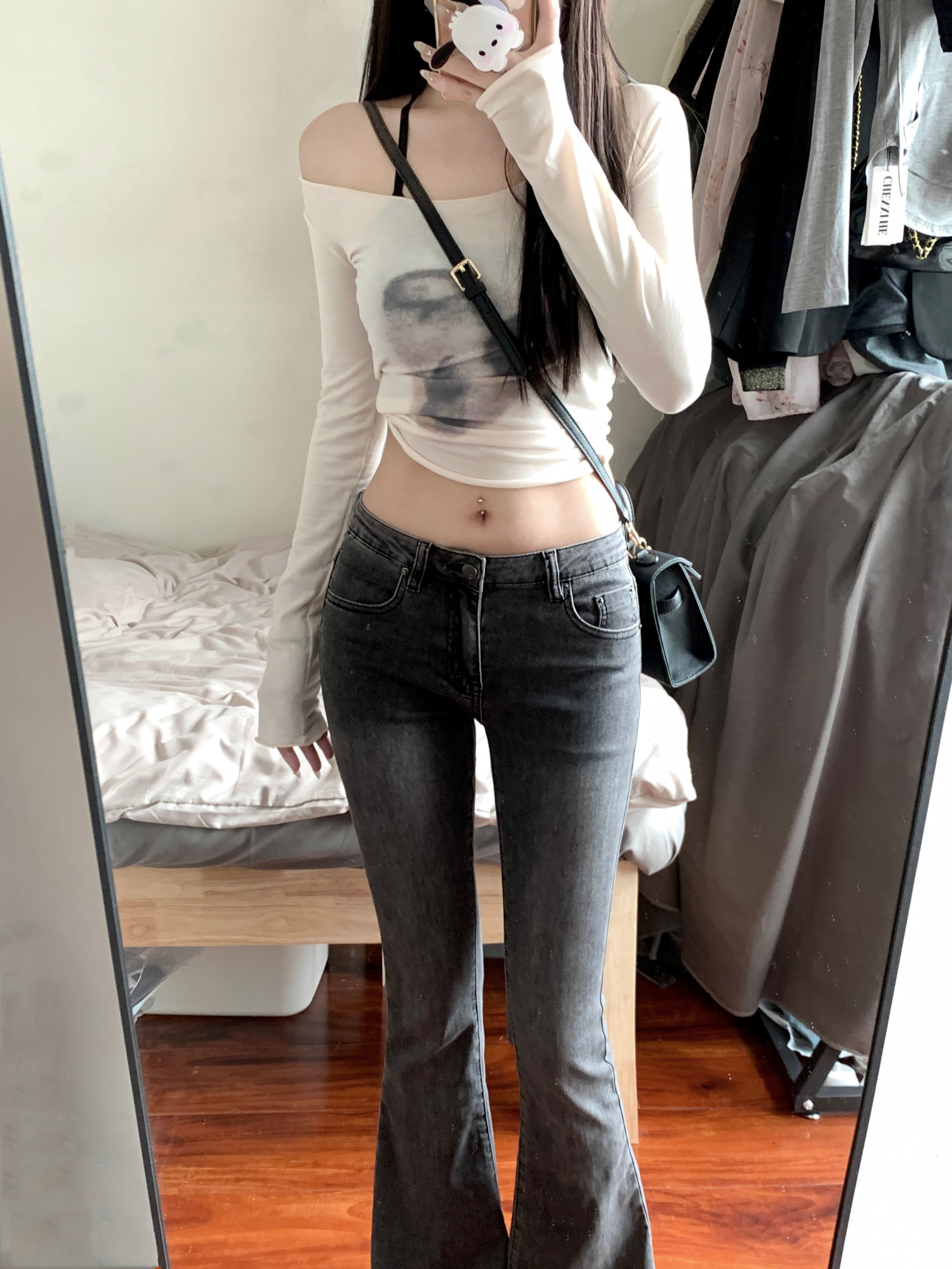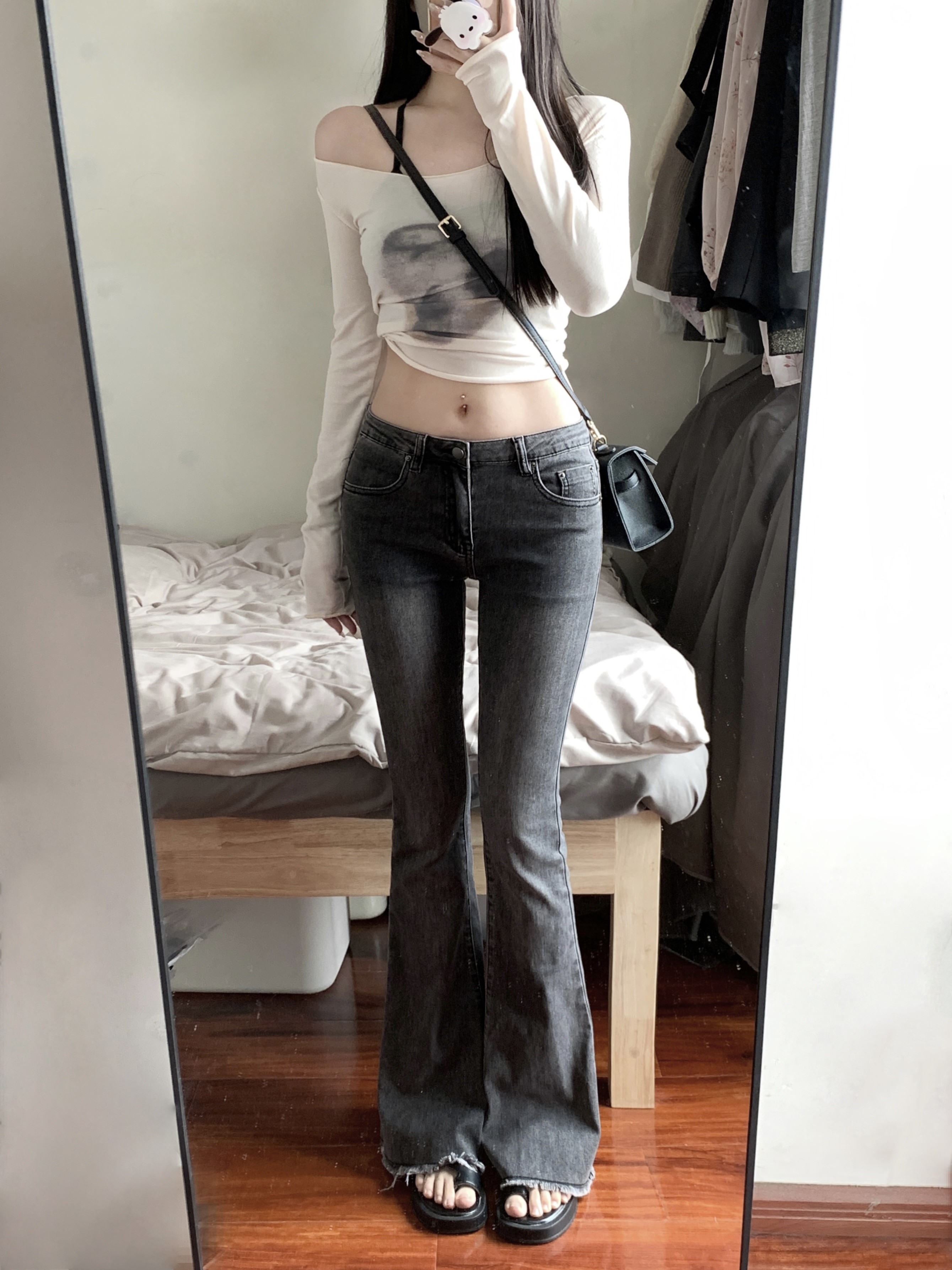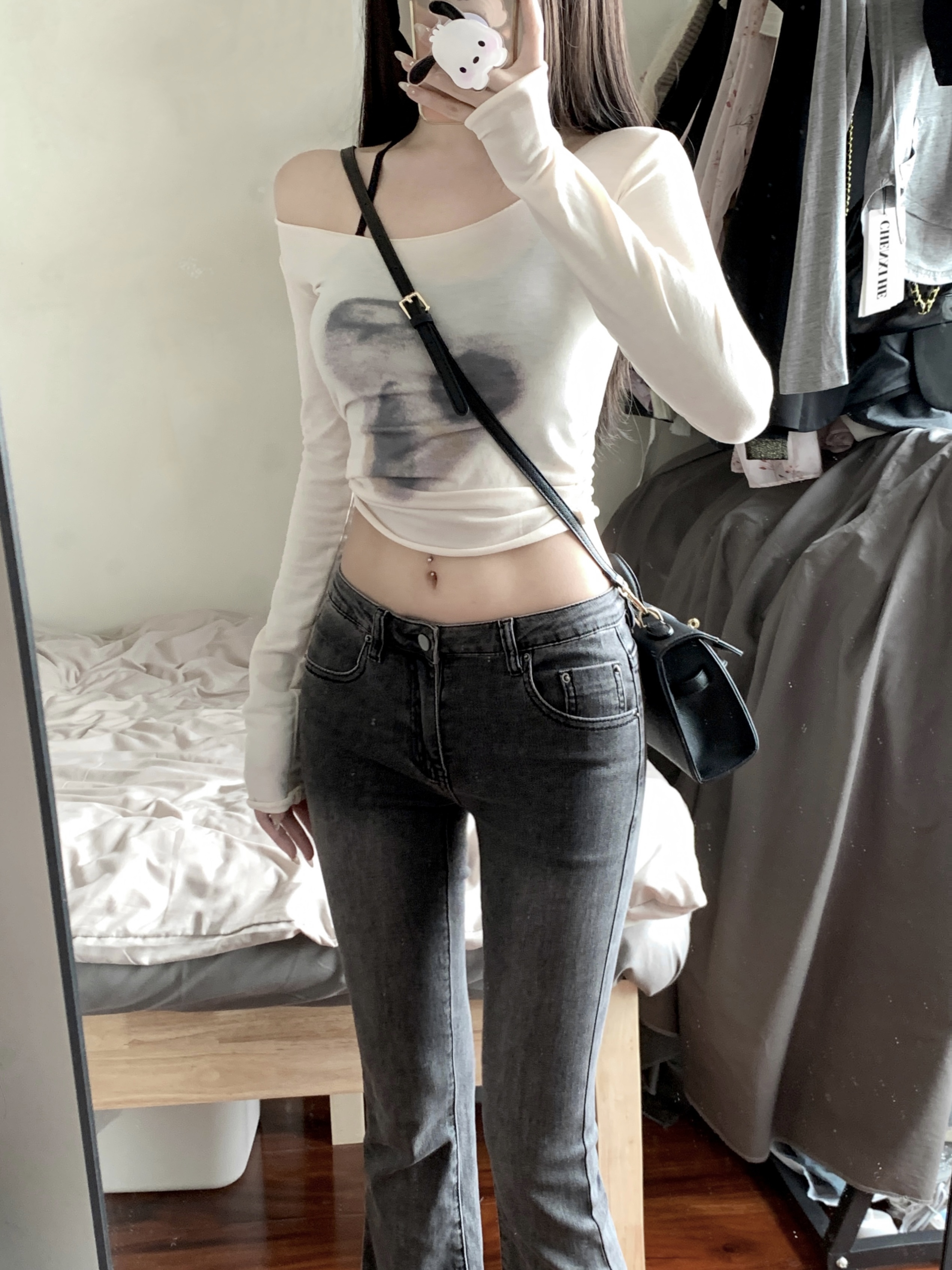 实拍实价 早秋薄款个性扎染大领口修身长袖修身显瘦上衣女