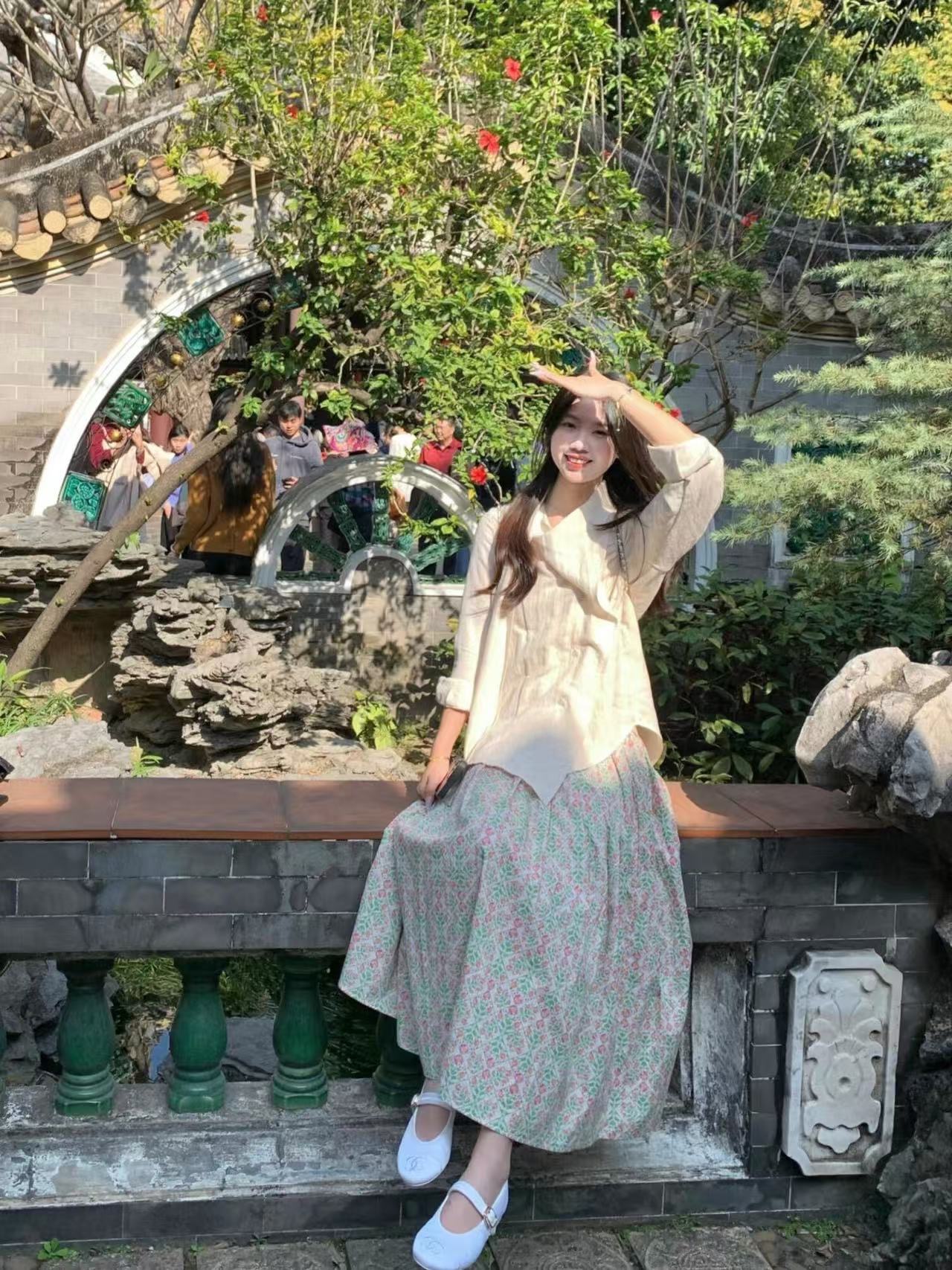 초가을 한국 스타일 코디: 비대칭 탑과 꽃무늬 스커트 - 너무나 귀엽고 독특한 투피스 세트!