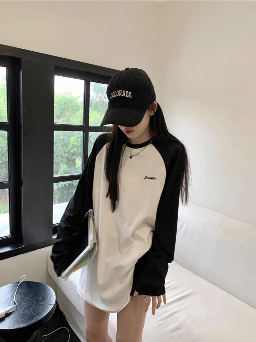220g 코밍 순면 소재, 뒷면 패딩 칼라, 초가을 플러스 사이즈 순면 긴팔 티셔츠, 컬러 블록 디자인, 미국 레트로 트렌디 브랜드
