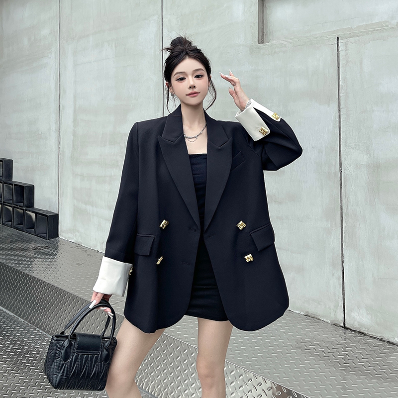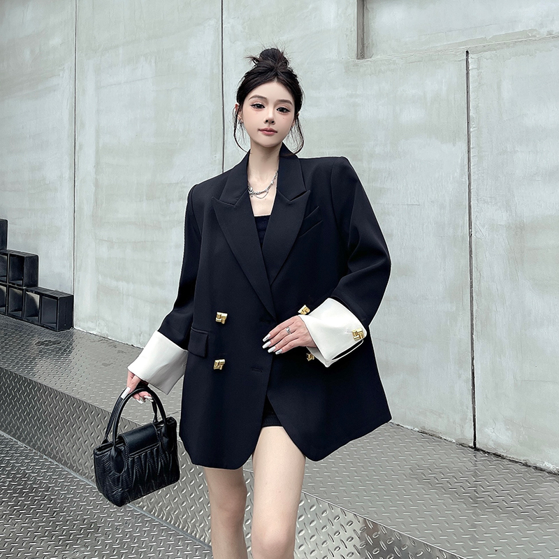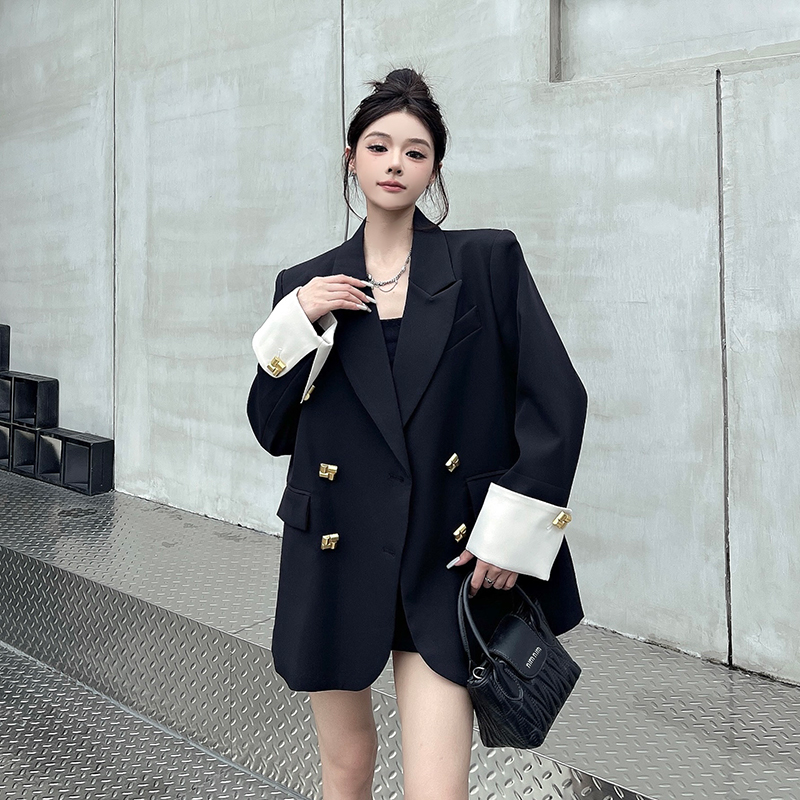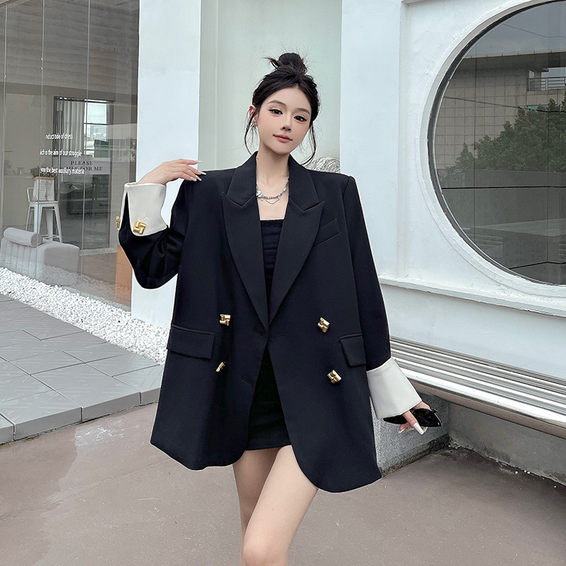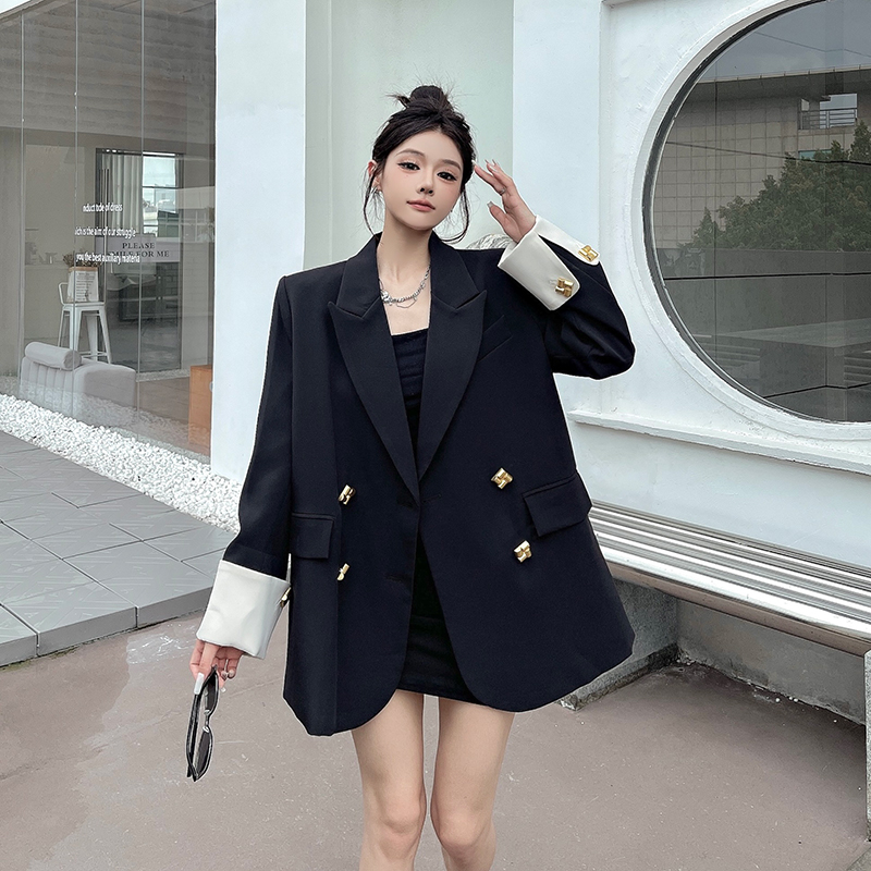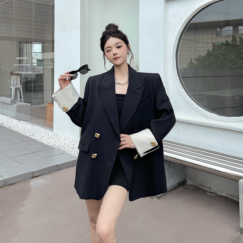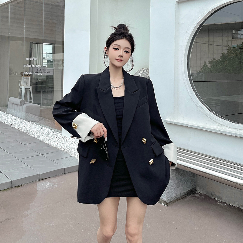实拍实价春秋新款长袖西装外套女宽松气质高级感炸街垫肩西服上衣