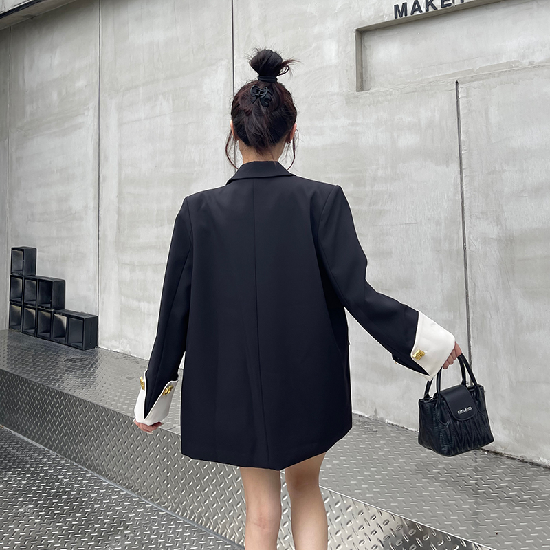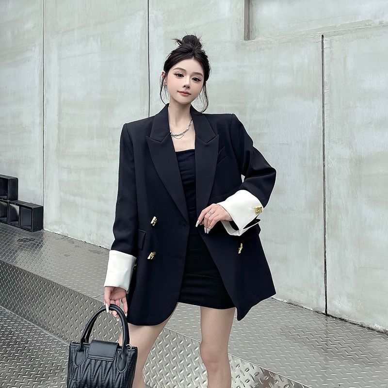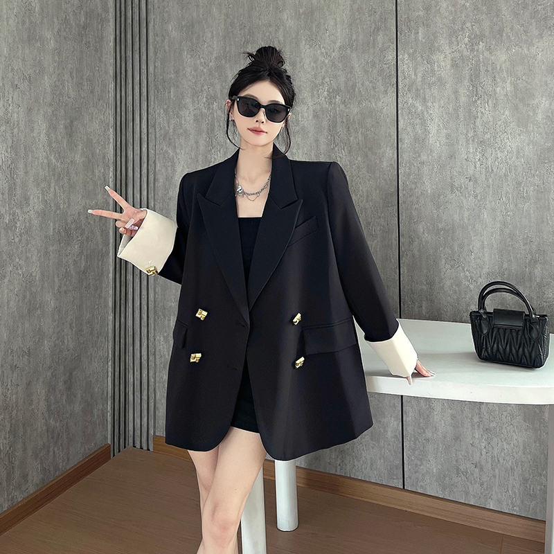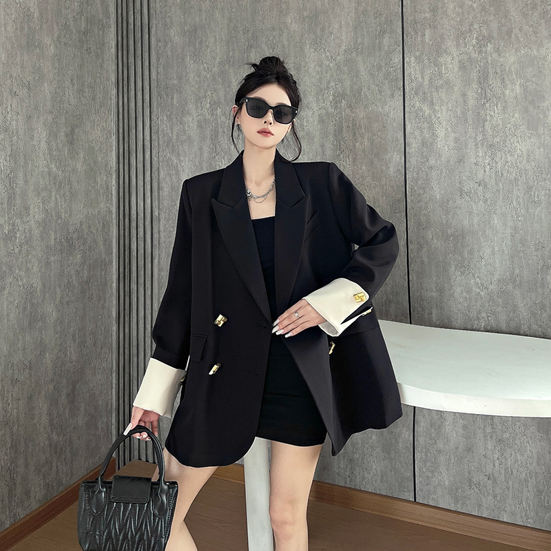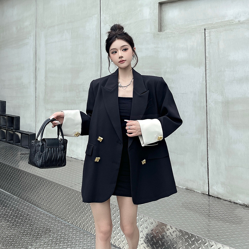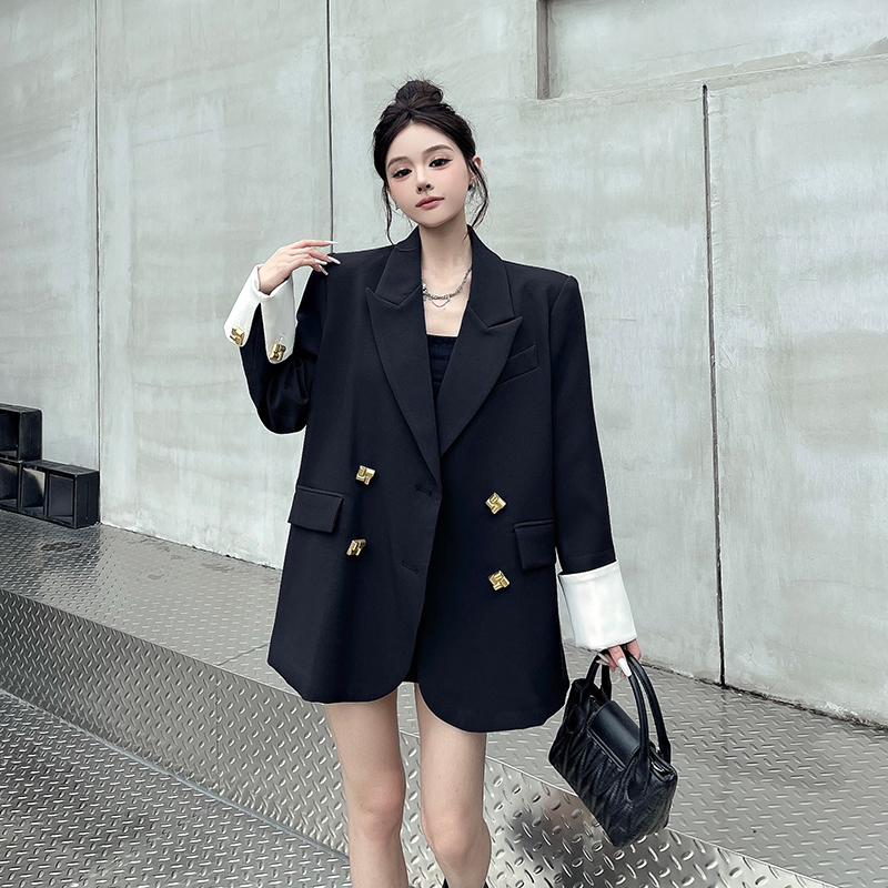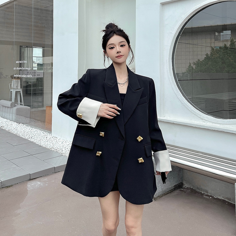 实拍实价春秋新款长袖西装外套女宽松气质高级感炸街垫肩西服上衣
