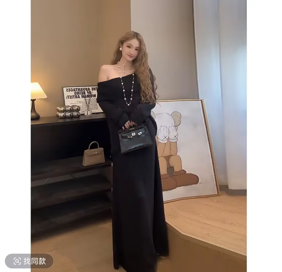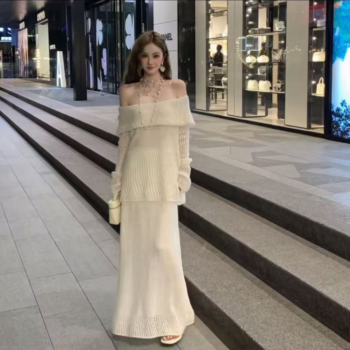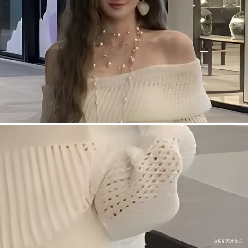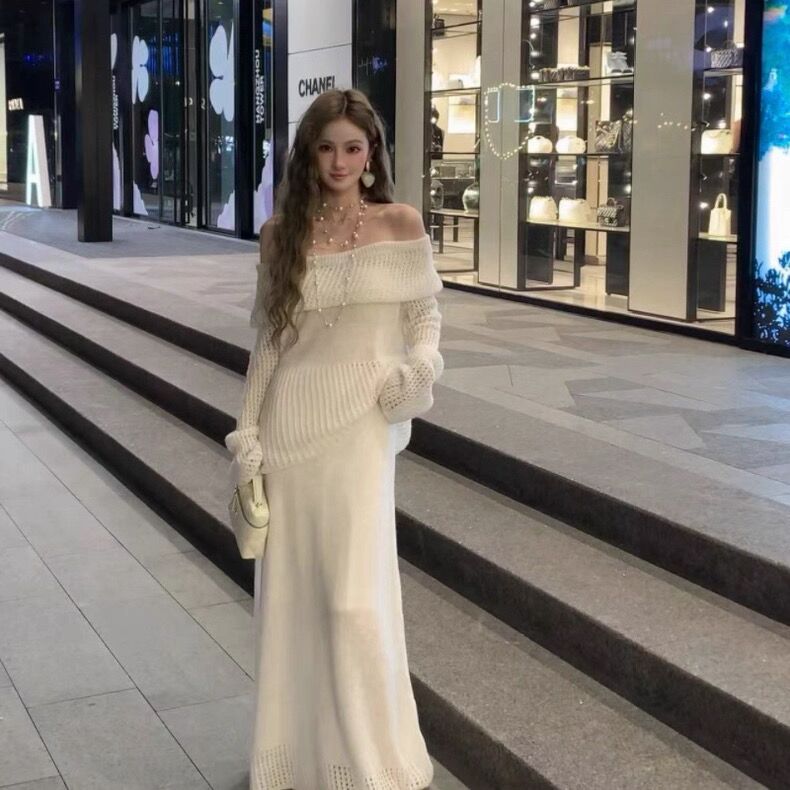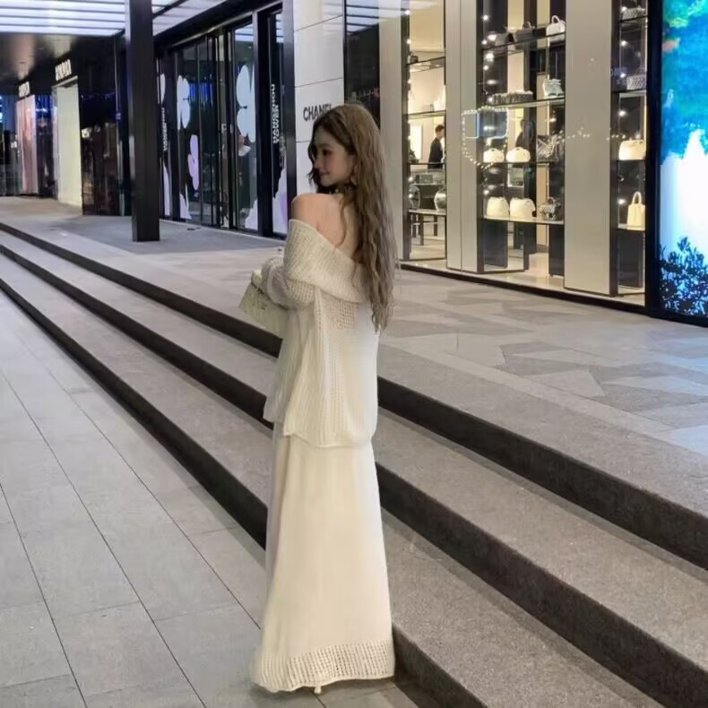 一字肩针织上衣+半裙宽松气质套装
