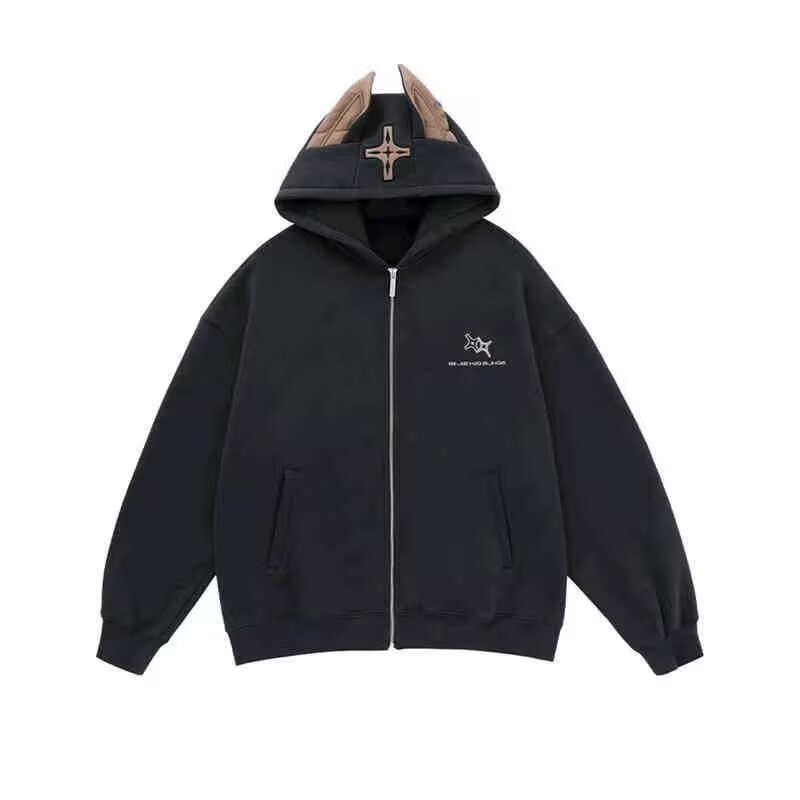 트렌디하고 활용도 높은 새로운 긴팔 가디건 후드티로, 편안하고 하라주쿠풍의 예술적인 미니멀리즘 일본 스타일을 담았습니다.