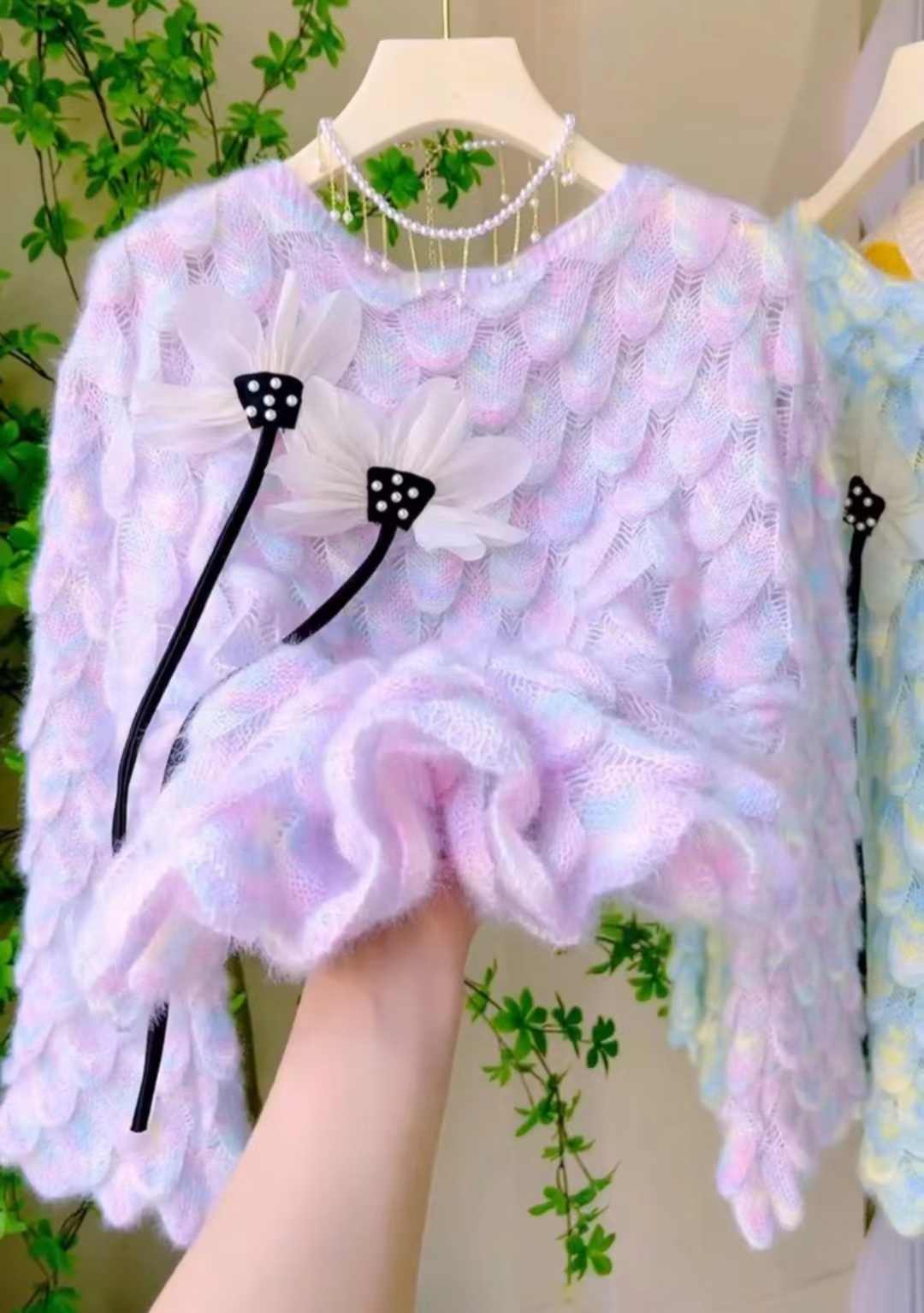여성용 느긋한 스타일의 그라데이션 니트 스웨터, 새로운 가을 스타일, 느슨한 핏, 세련되고, 3차원 꽃무늬 라운드 넥 풀오버 스웨터, 단독으로 입기에 적합합니다.