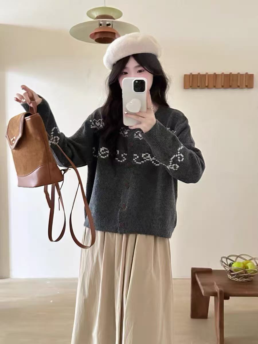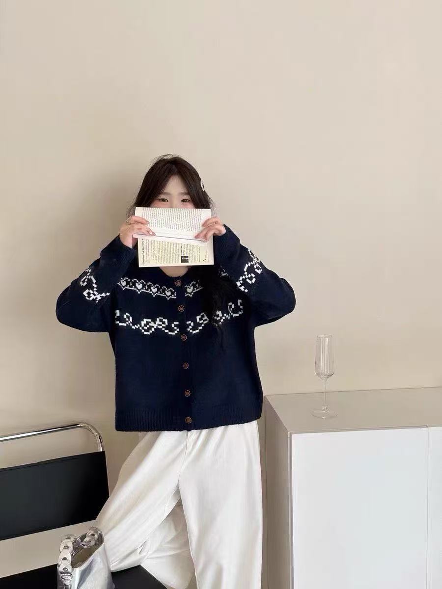 文艺复古宽松慵懒风甜美软糯提花针织开衫毛衣百搭休闲款宽松显