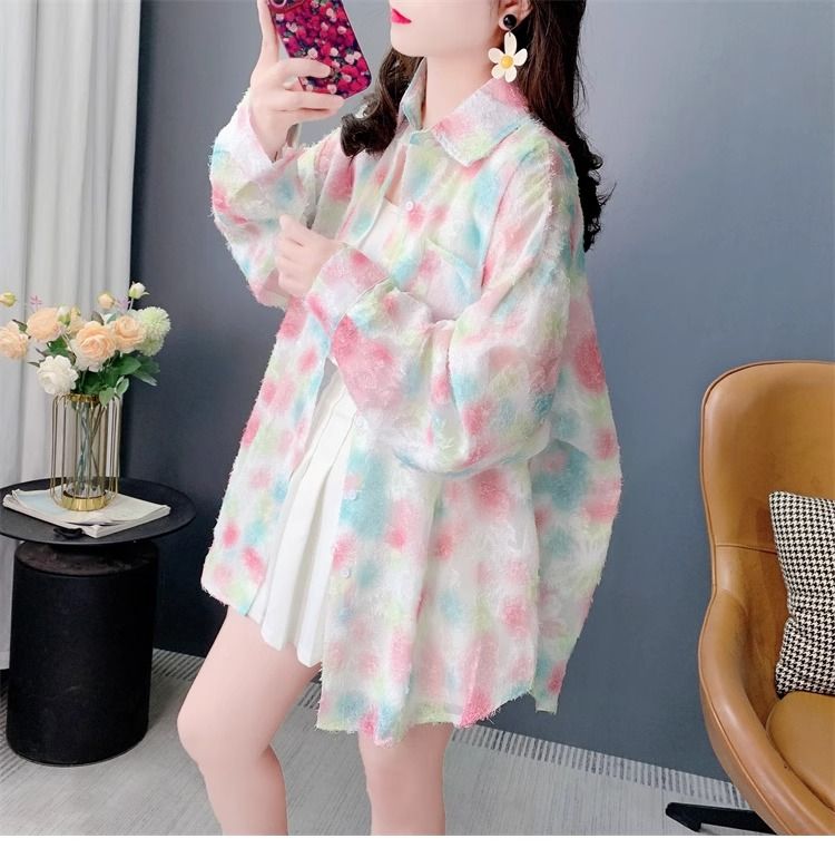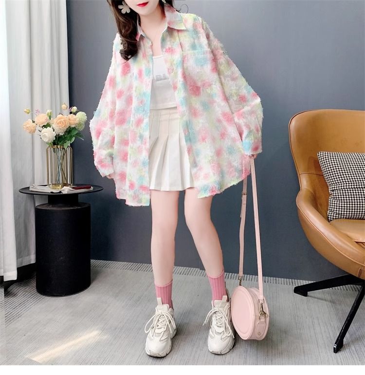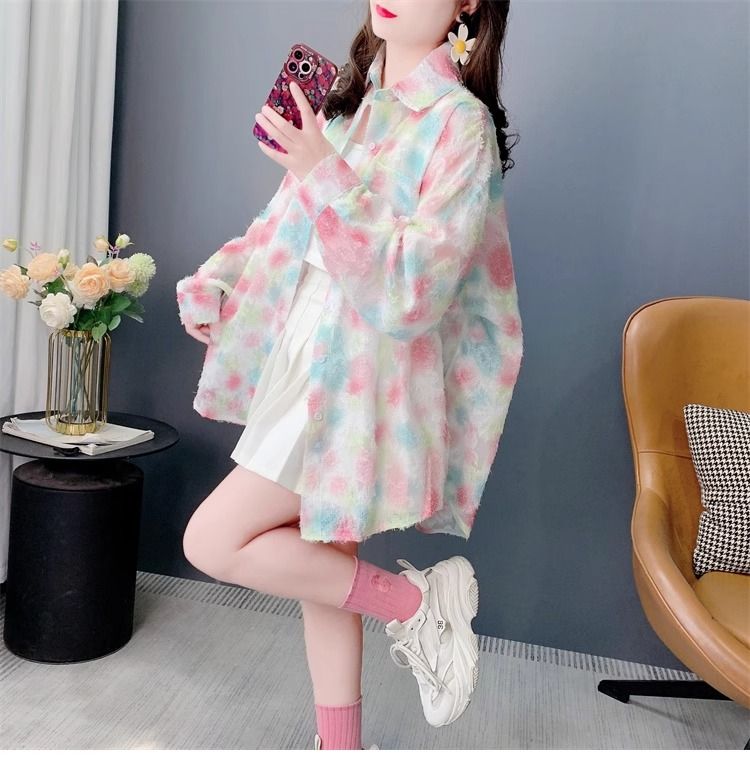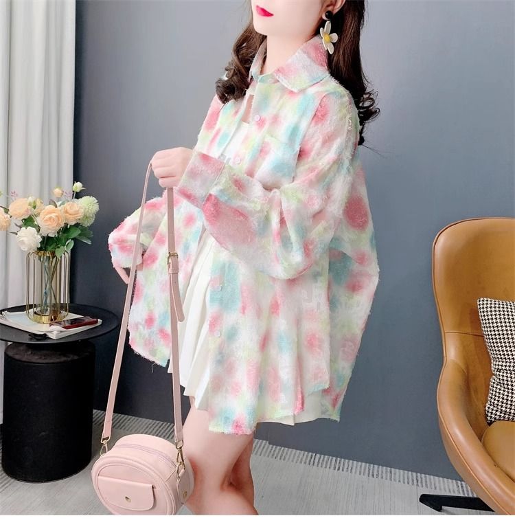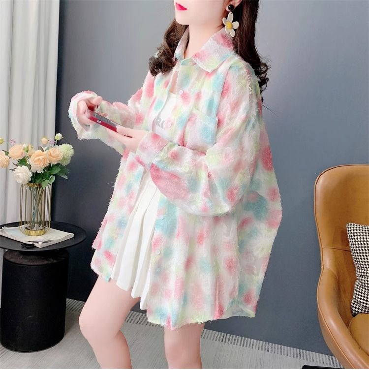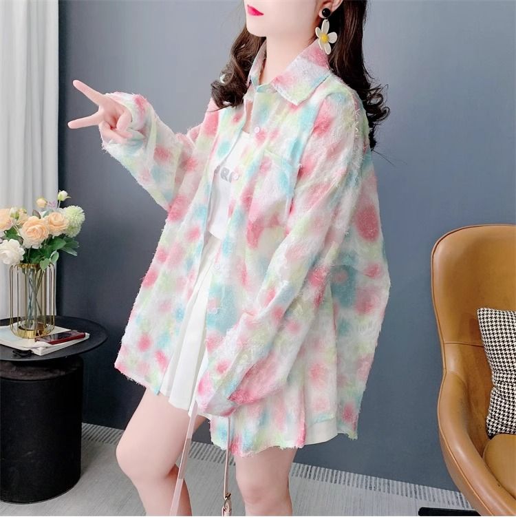 여성용 100% 폴리에스터 타이다이 긴팔 자외선 차단 셔츠, 루즈핏, 캐주얼, 가벼운 재킷