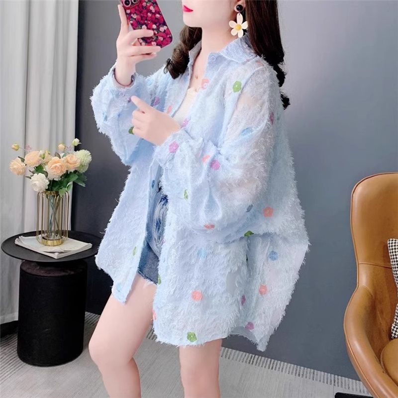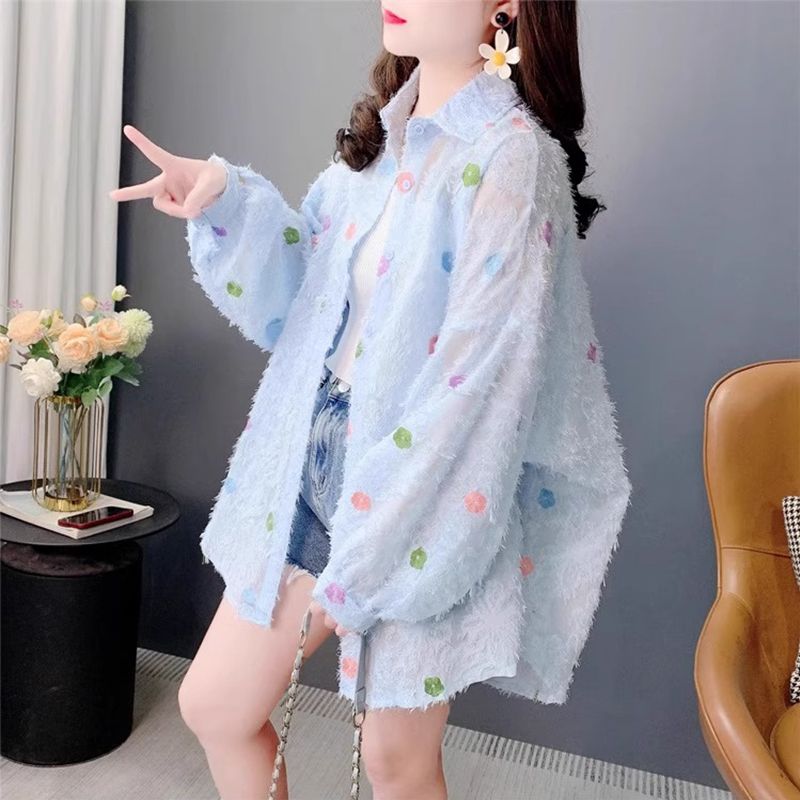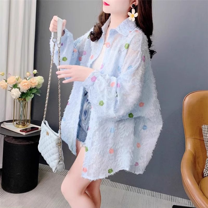 여성용 100% 폴리에스터 디자인 긴팔 자외선 차단 셔츠, 루즈핏, 캐주얼, 얇은 재킷 탑