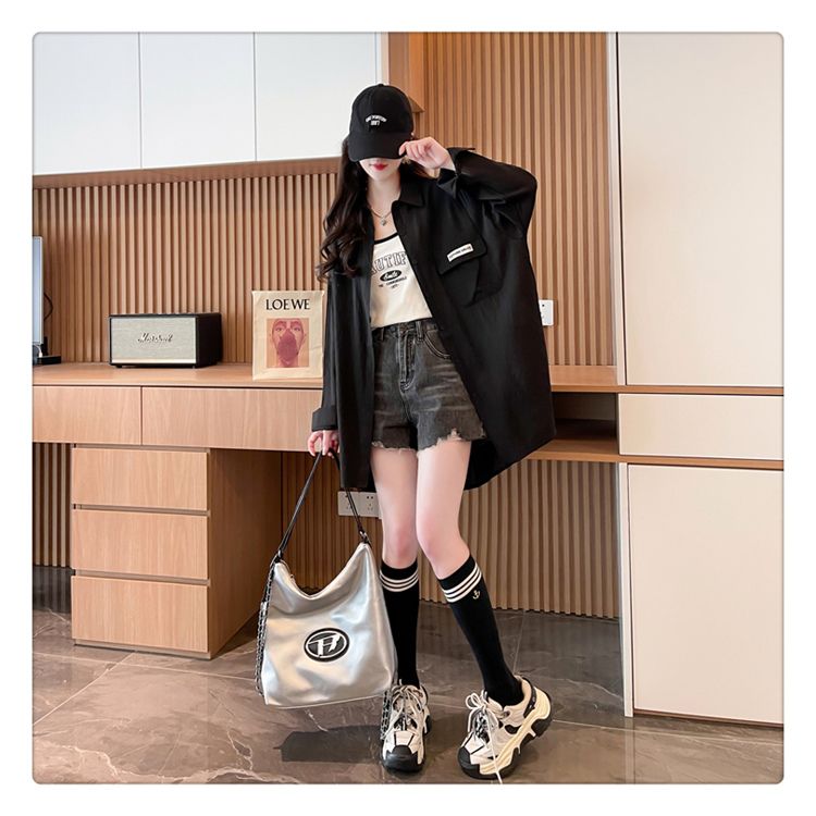 여성용 100% 폴리에스터 포켓 자외선 차단 셔츠, 플러스 사이즈 상의