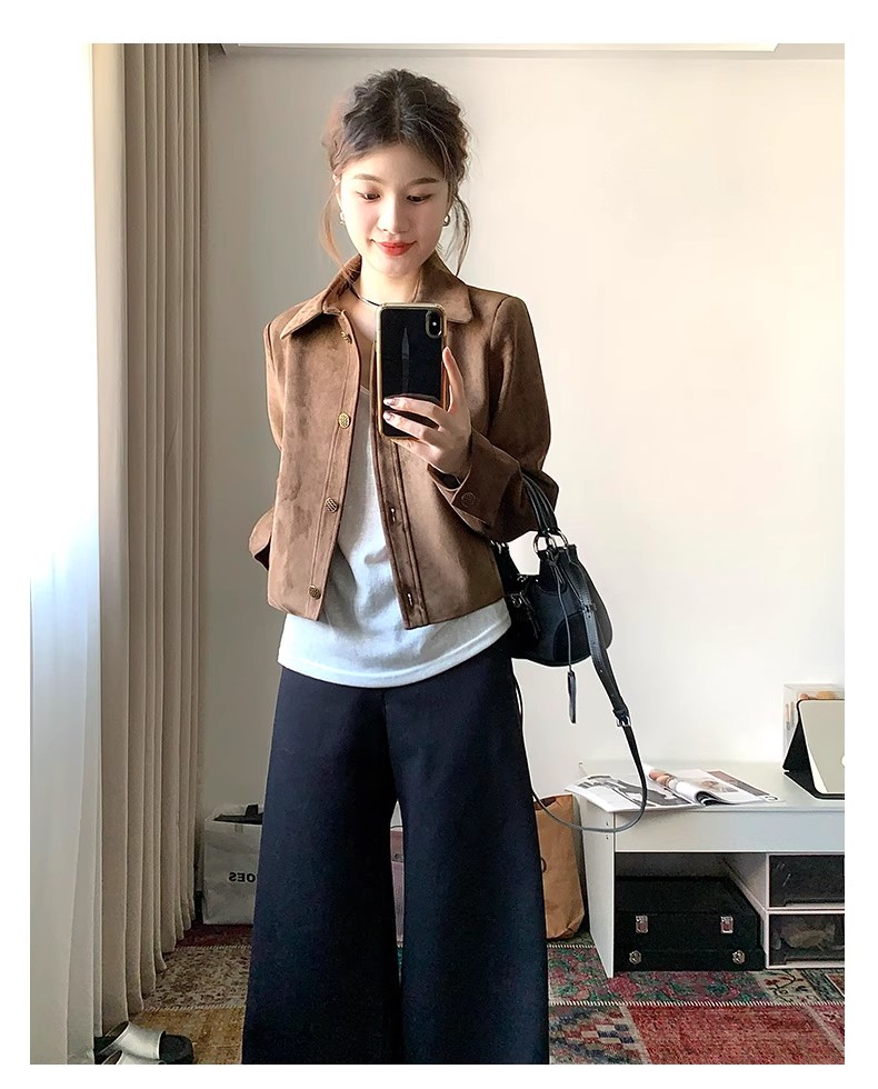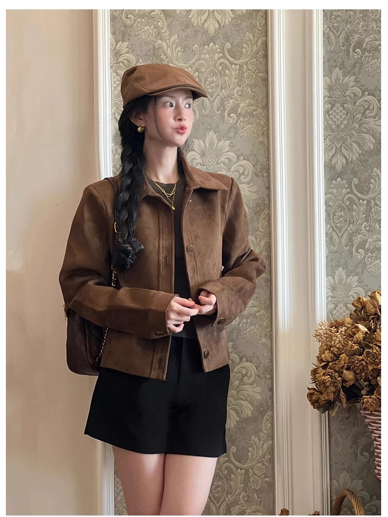 여성용 메라드 스웨이드 코트, 2025년 가을 신상 한국 레트로 스타일 반팔 캐주얼 재킷