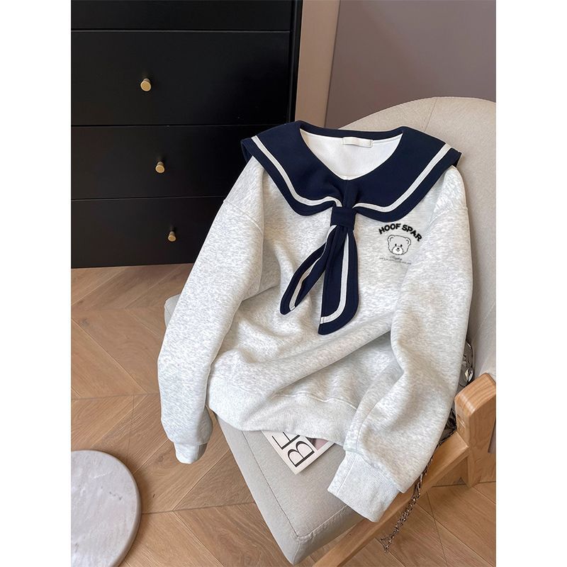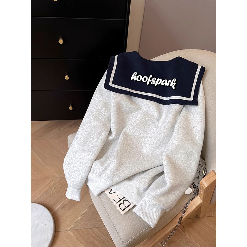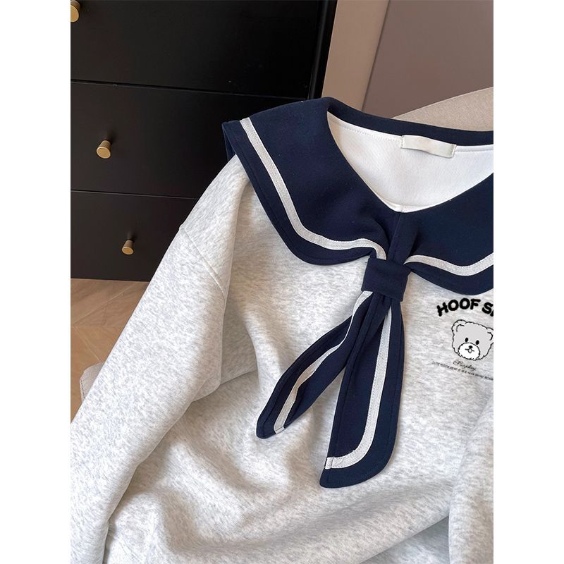 공식 이미지: 화미안 밀크 실크 플러스 사이즈 300kg 프린트 만화 세일러 칼라 스웨트셔츠 여성용, 봄, 가을