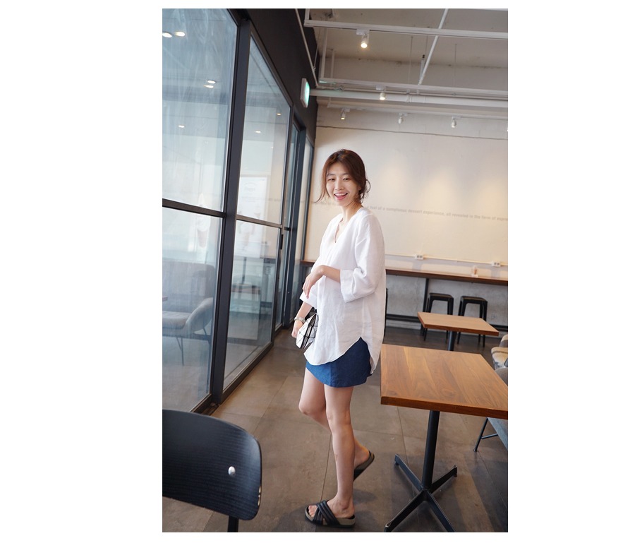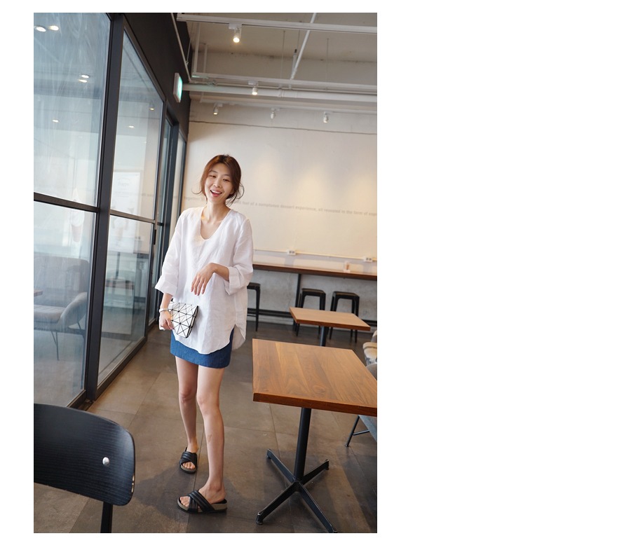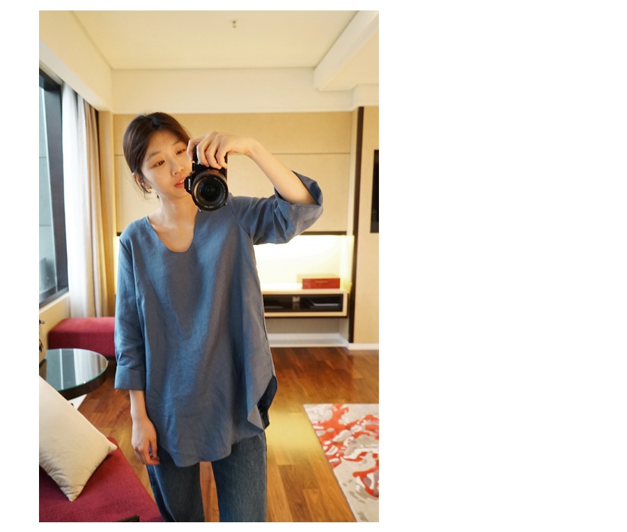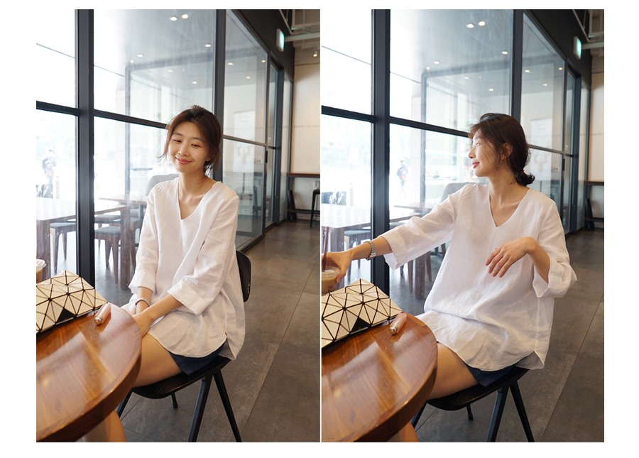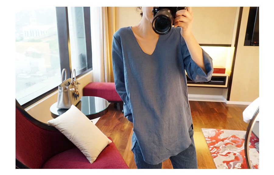 小心机宽松纯亚麻大码女衬衫上衣 通勤凉爽七分袖防晒显瘦