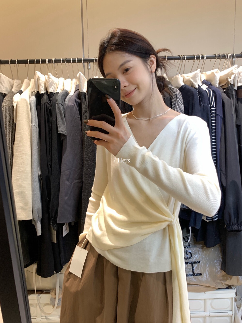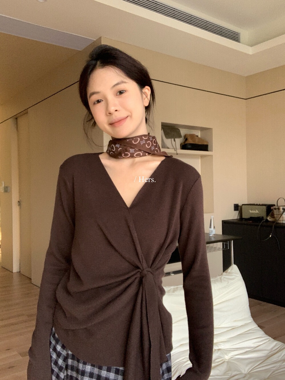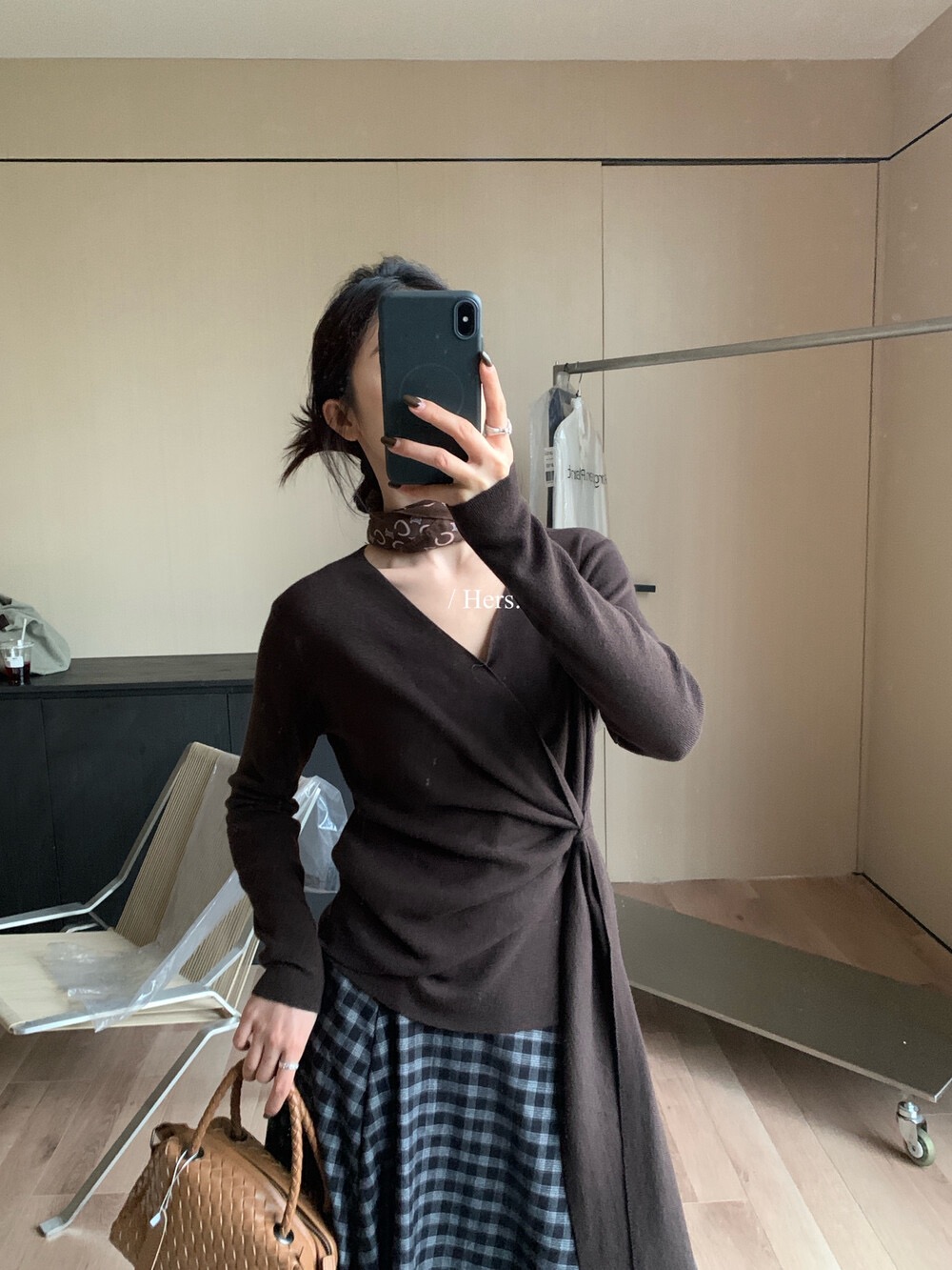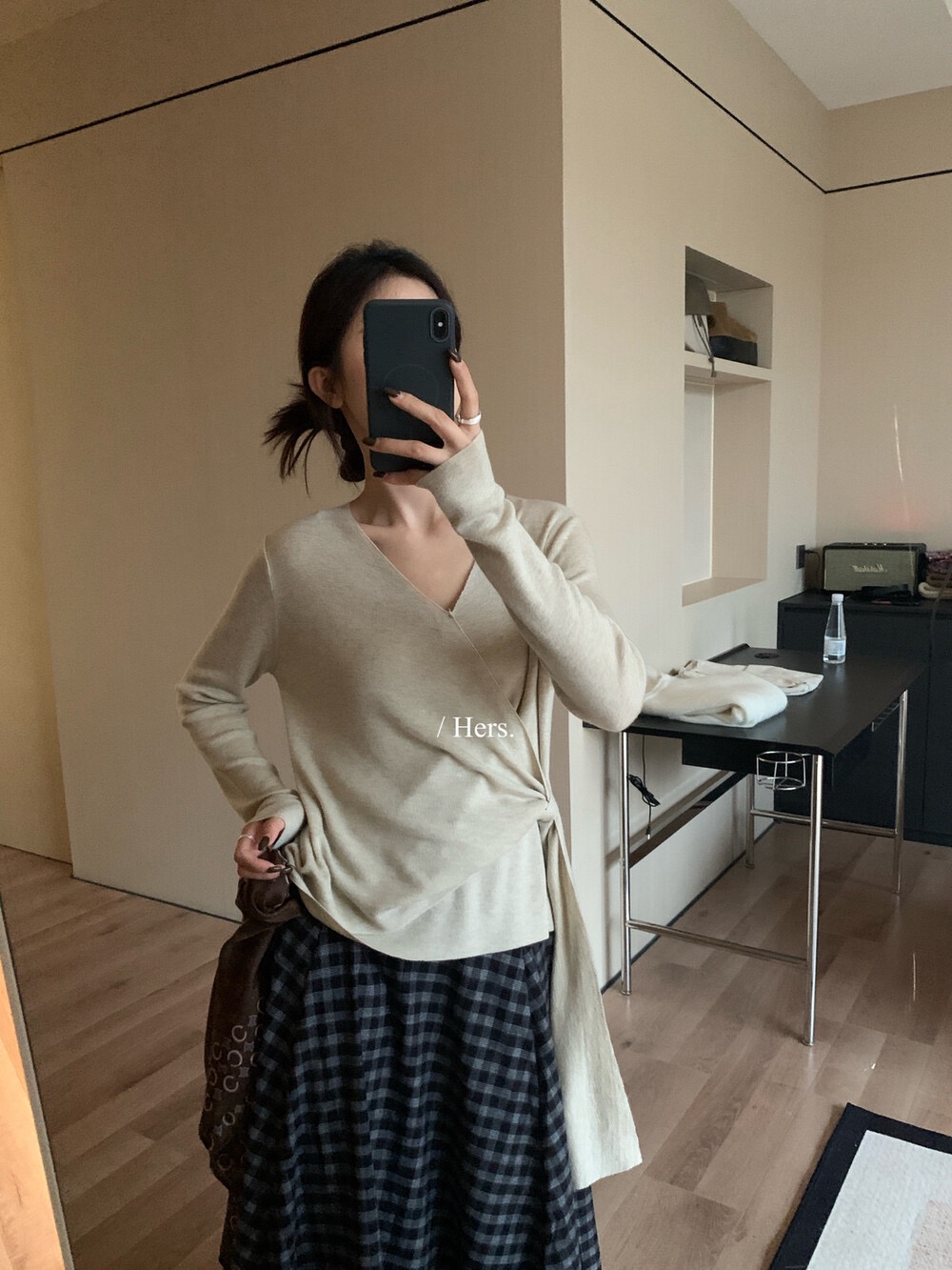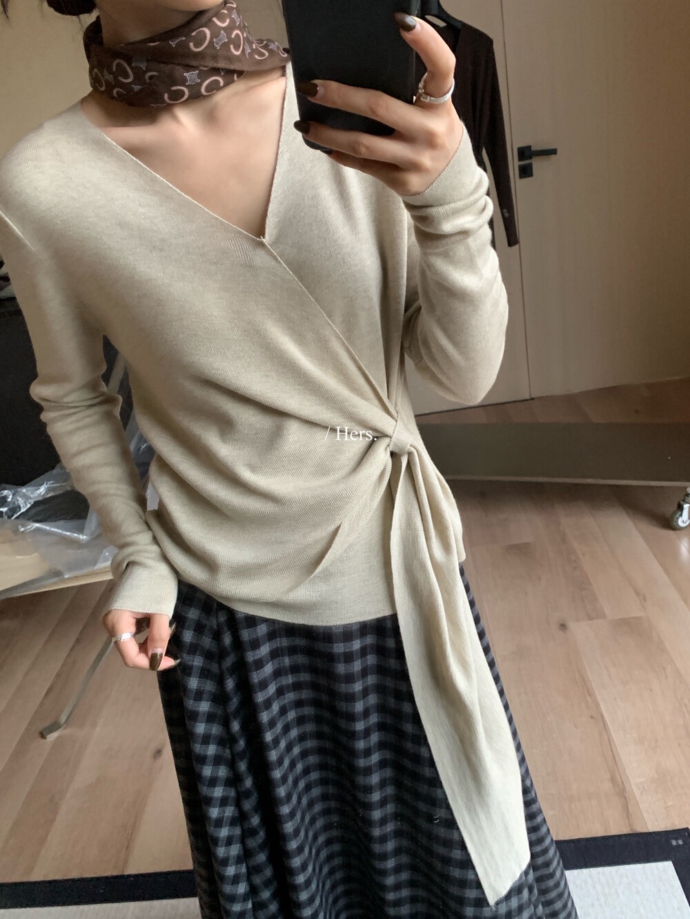 가을 신상품! 한국 스타일의 우아하고 심플하면서도 시크한 브이넥 니트 스웨터