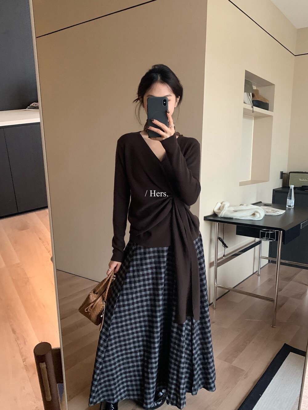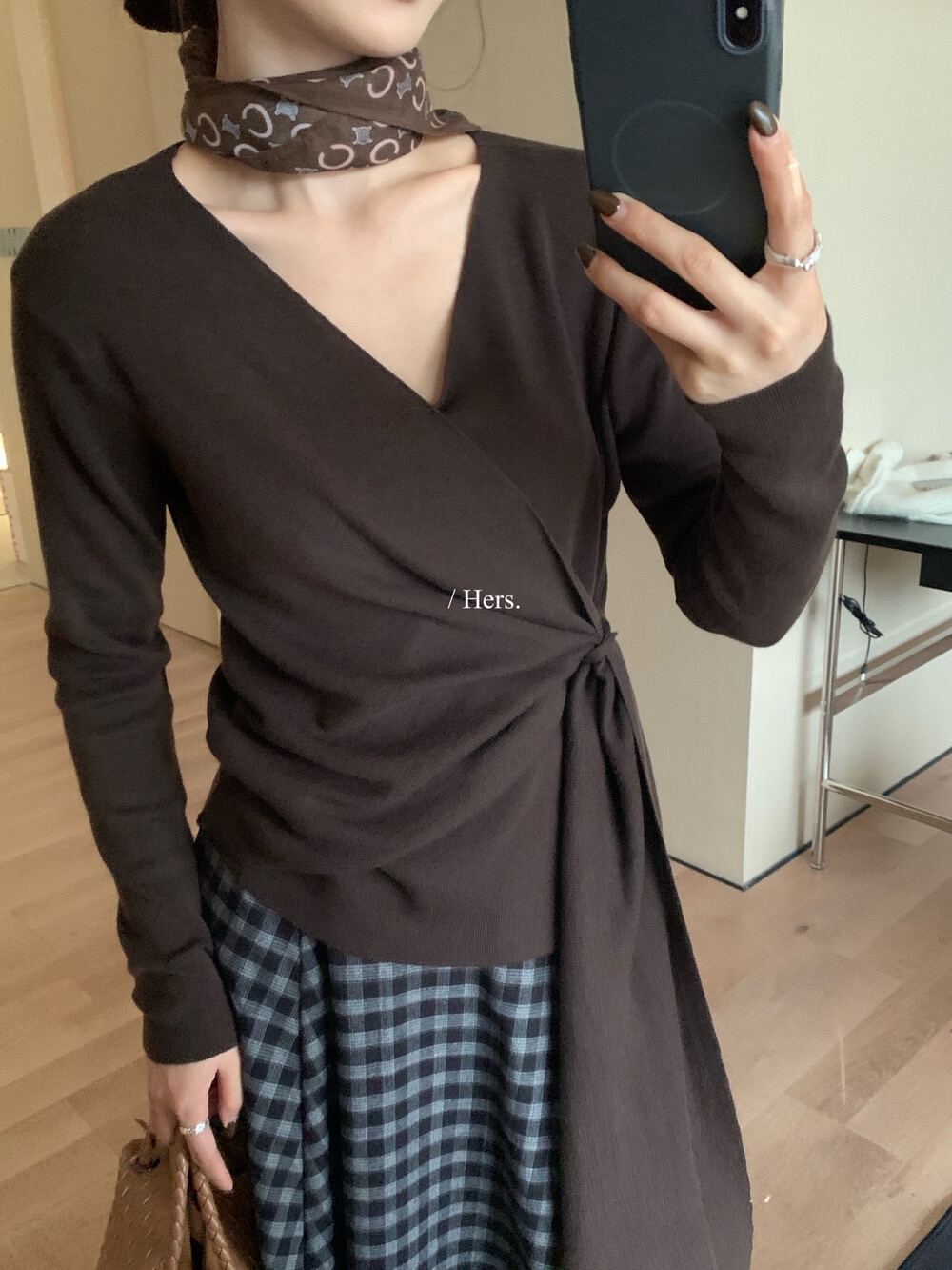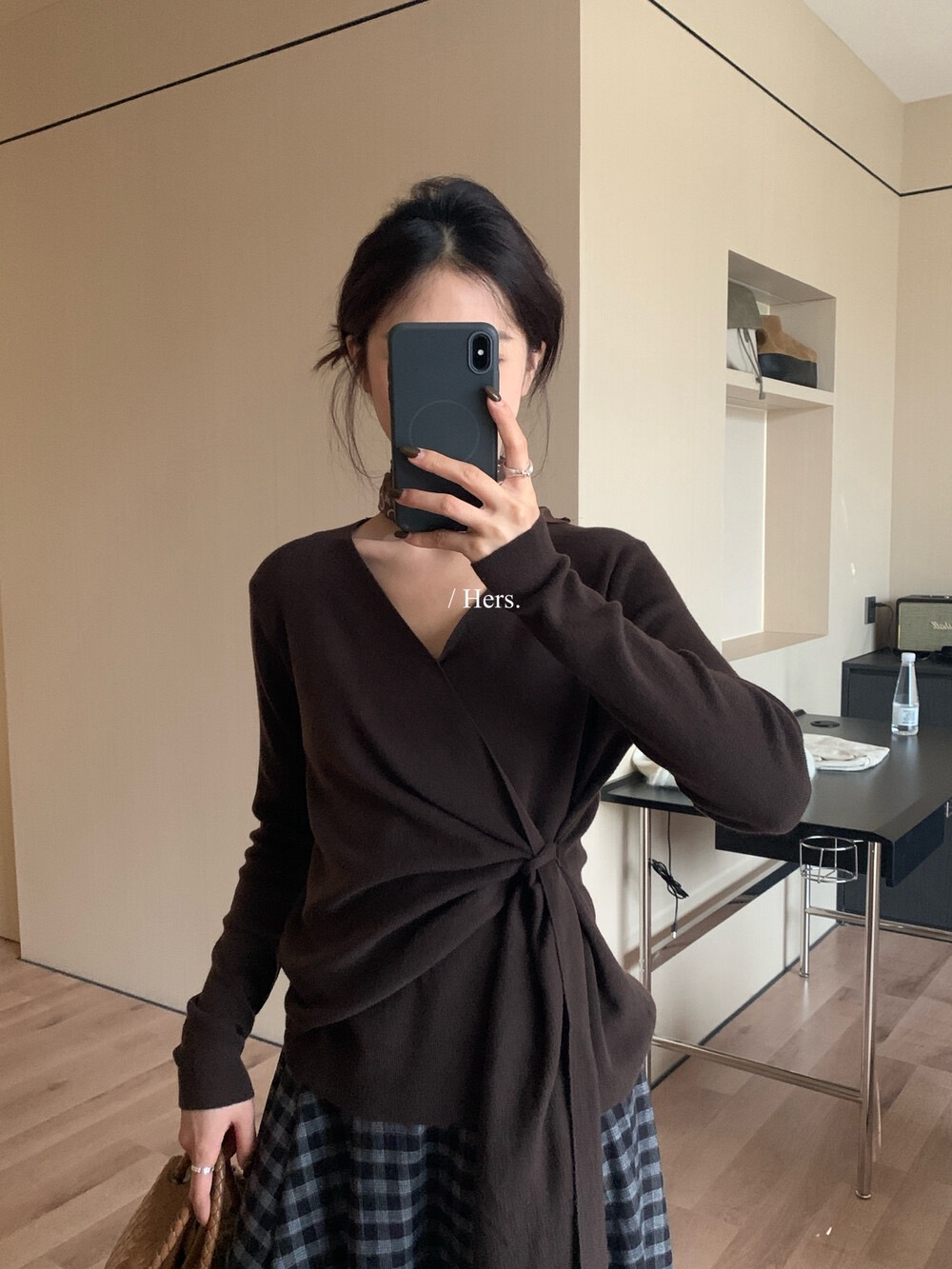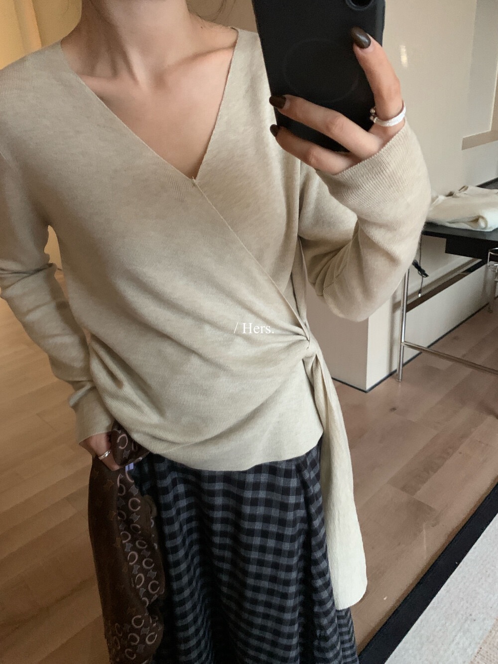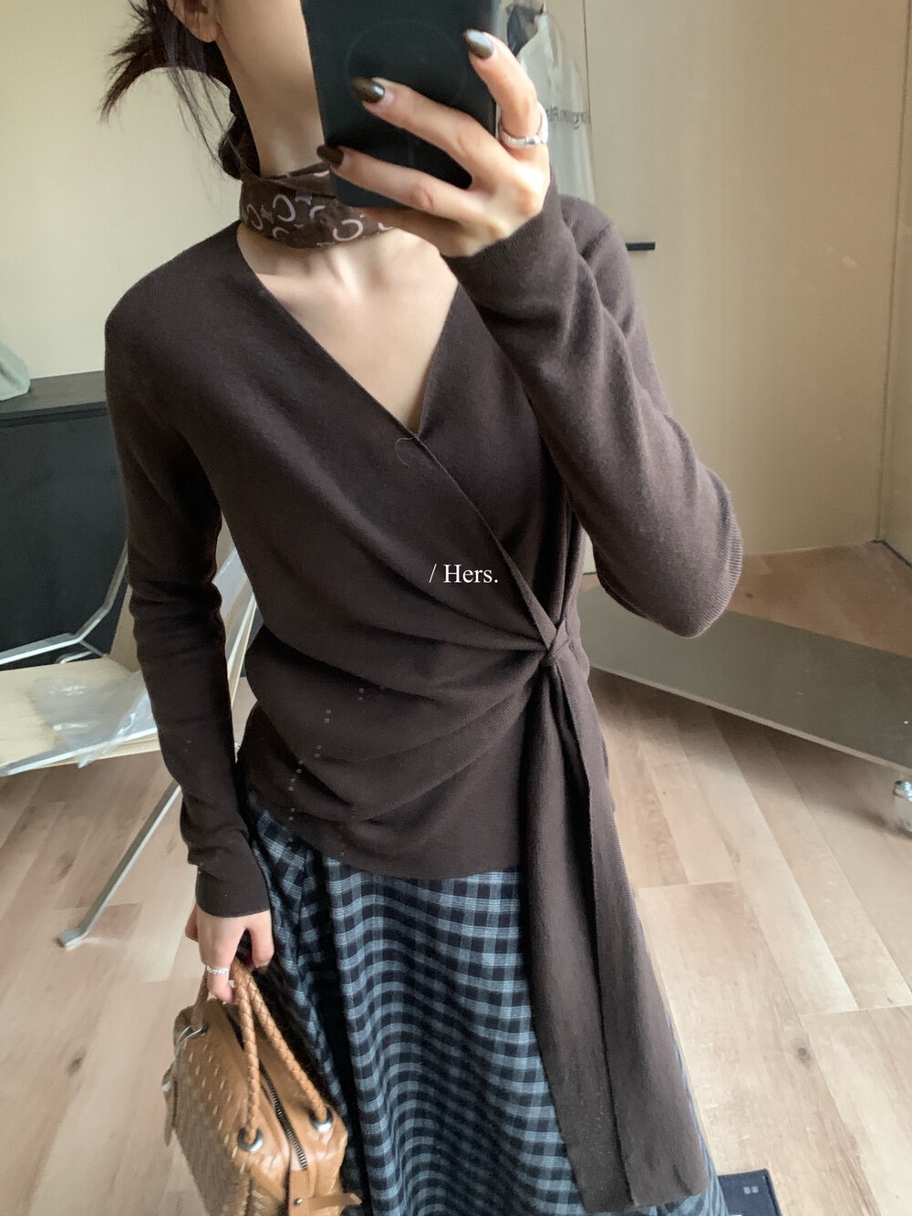 가을 신상품! 한국 스타일의 우아하고 심플하면서도 시크한 브이넥 니트 스웨터