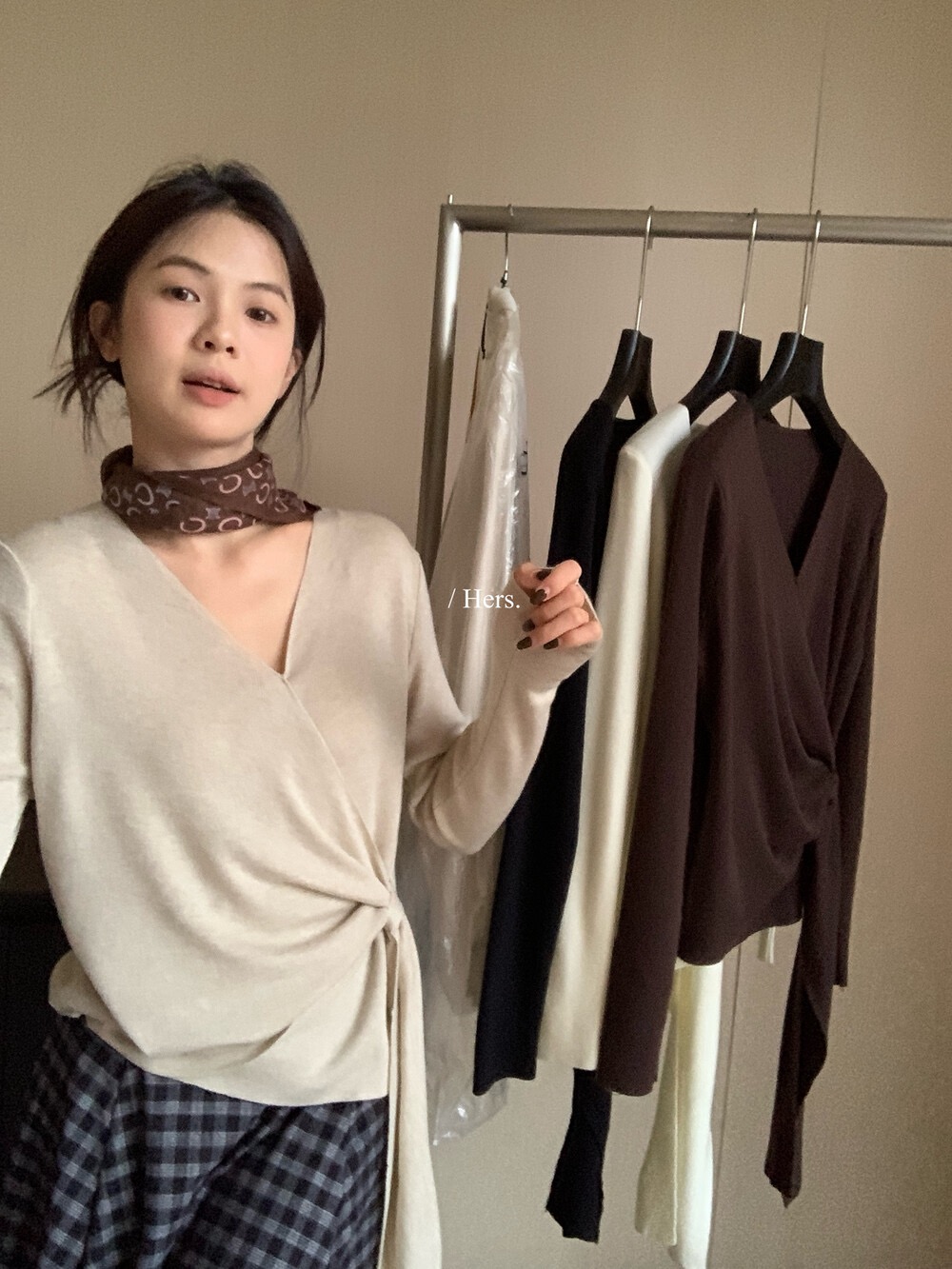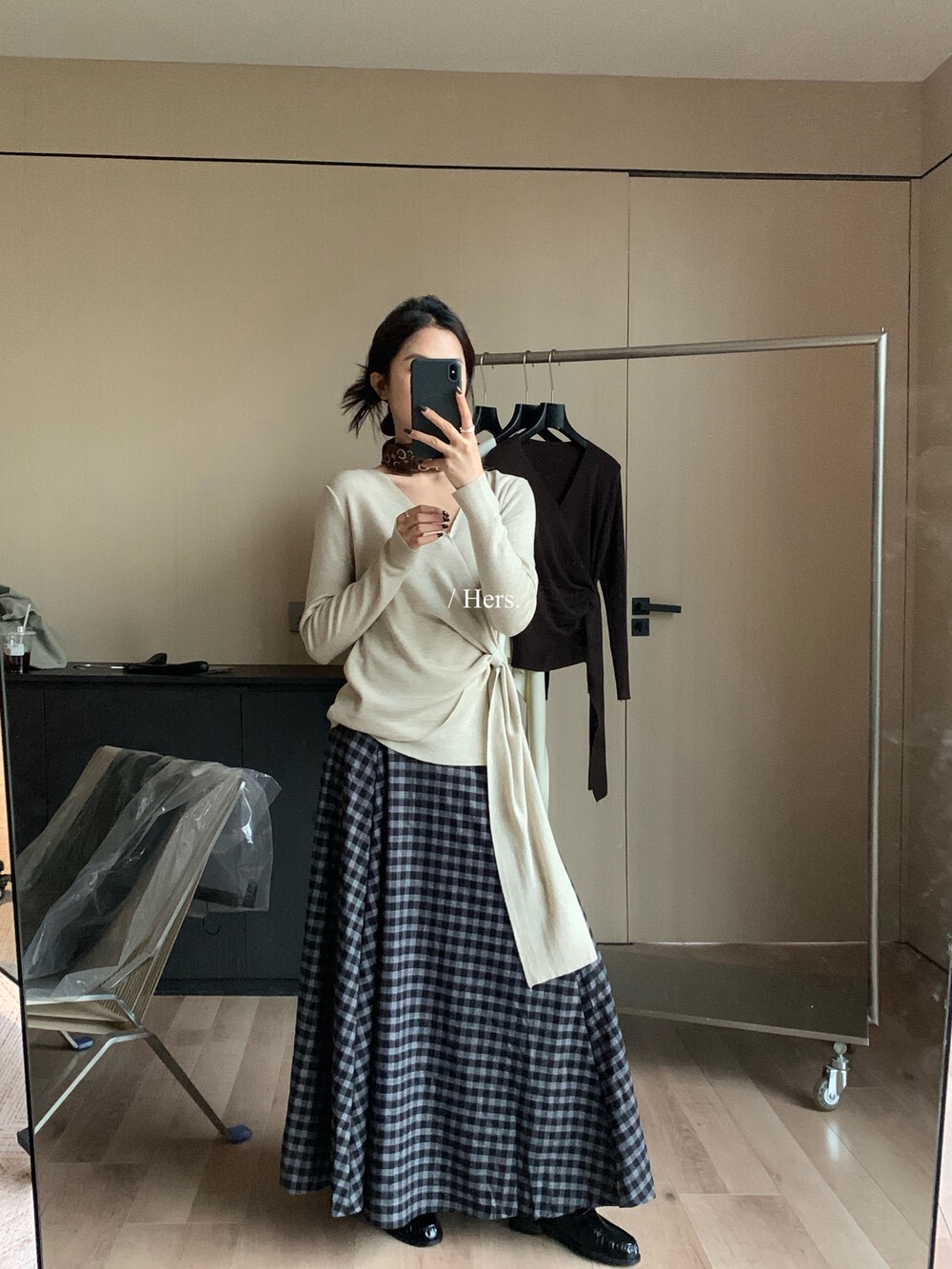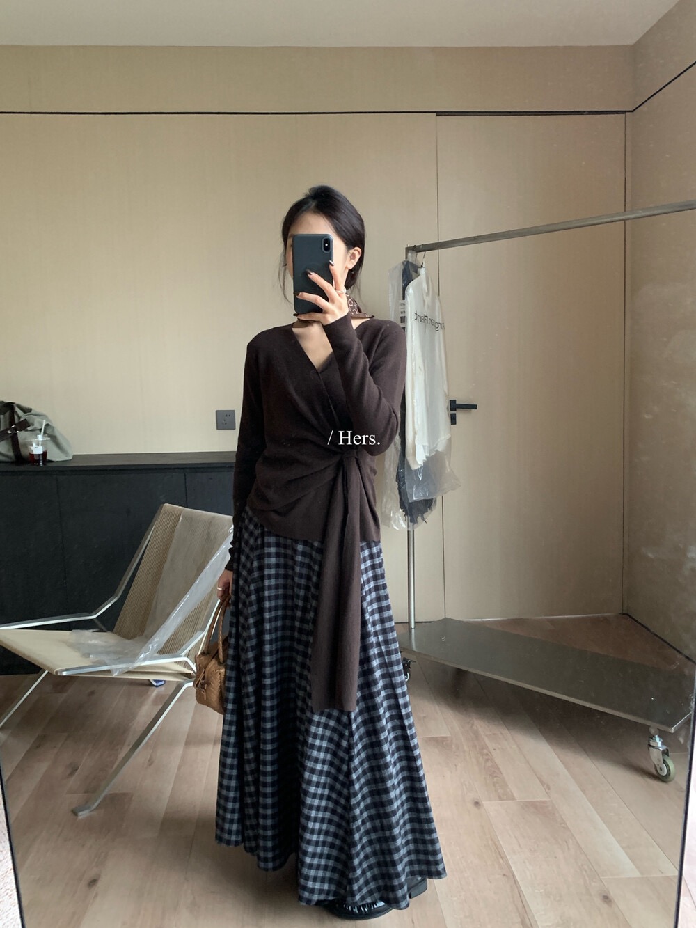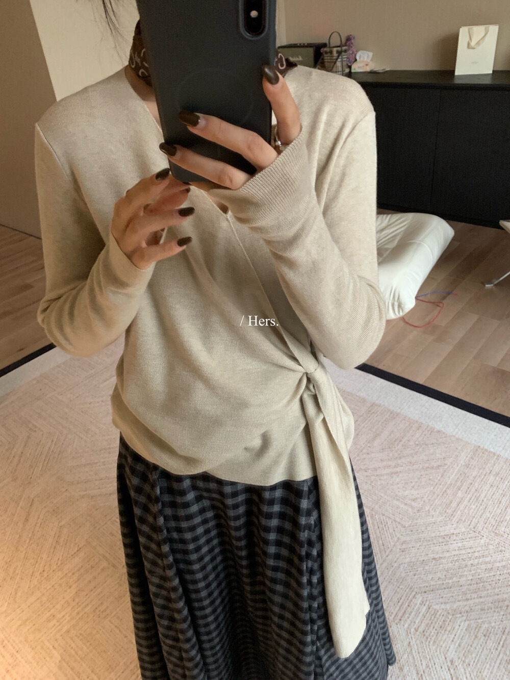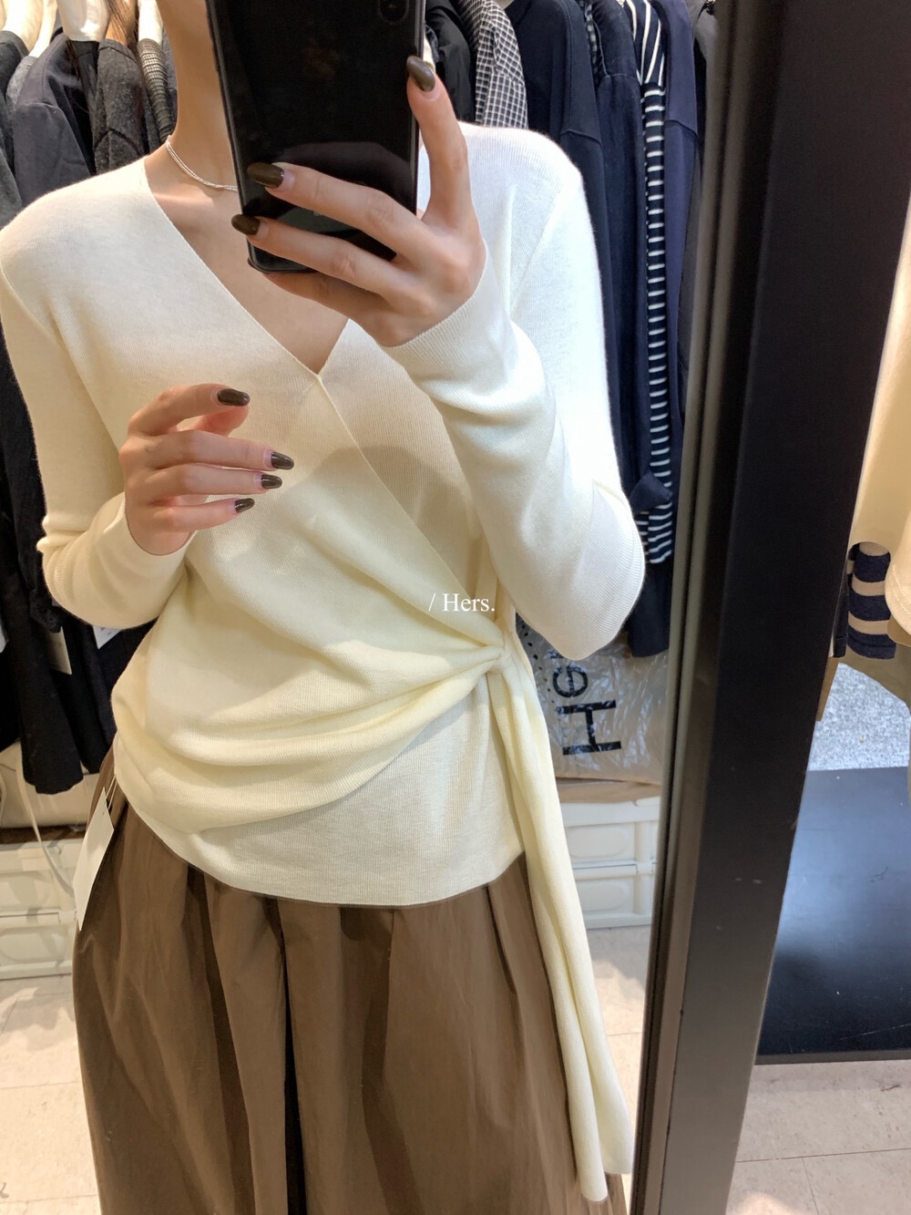 가을 신상품! 한국 스타일의 우아하고 심플하면서도 시크한 브이넥 니트 스웨터