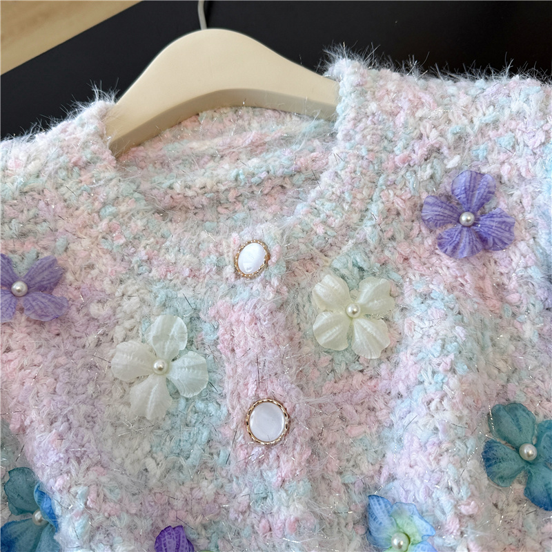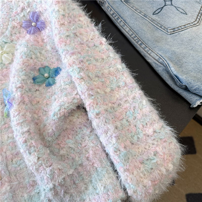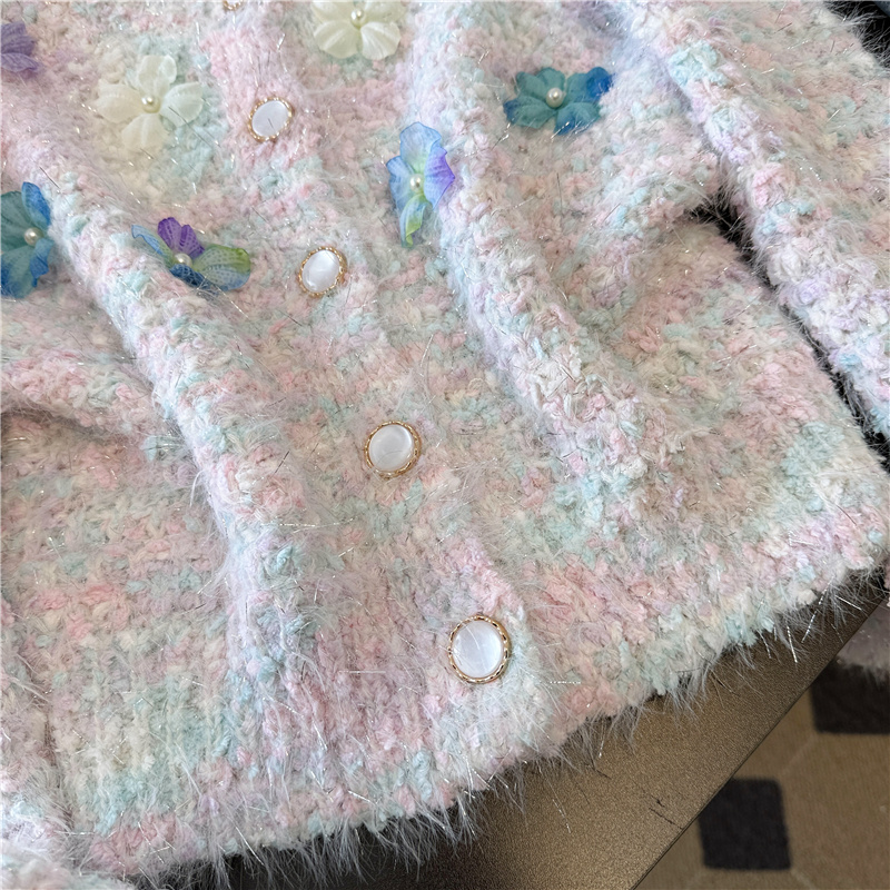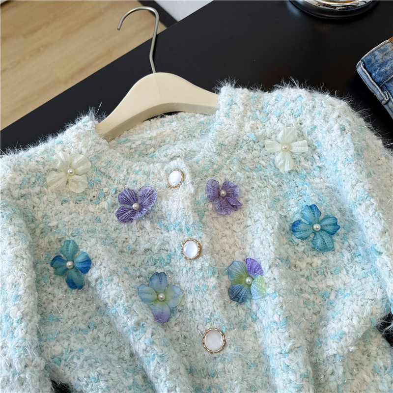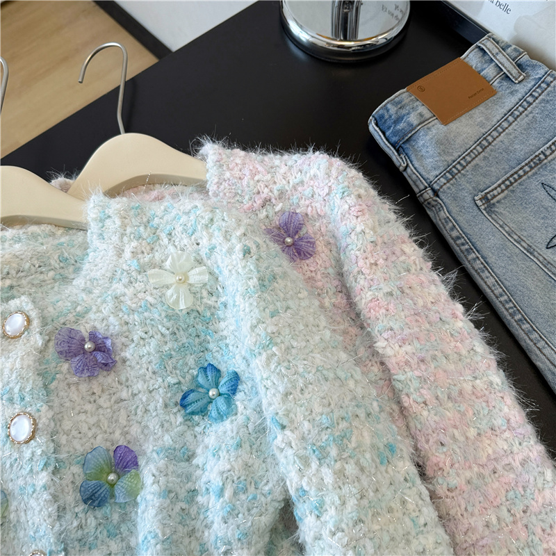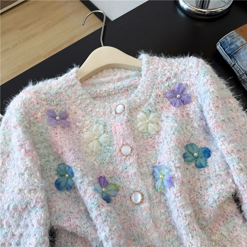 실제 사진 ~ 샤넬 스타일의 3D 플로럴 패턴 긴팔 니트 스웨터 (여성용), 2025년 가을/겨울 신상, 부드럽고 포근한 소재로 단독 착용하기 좋습니다.