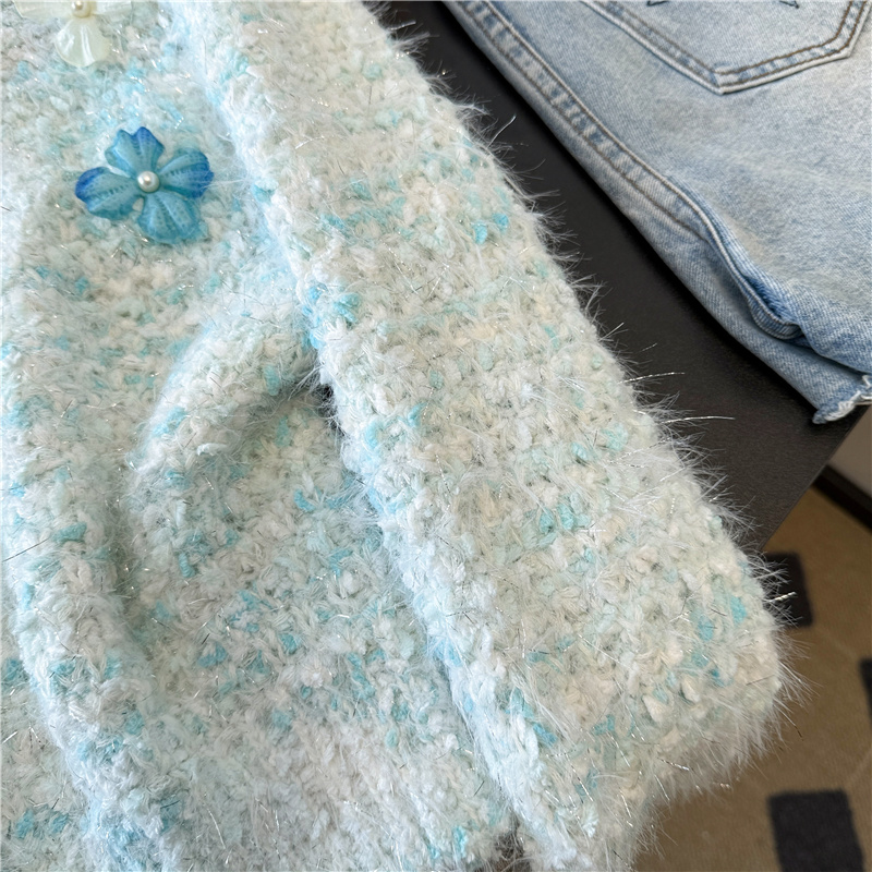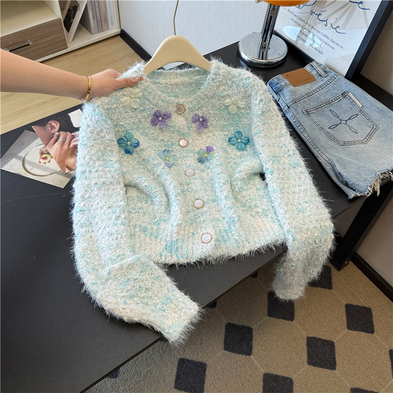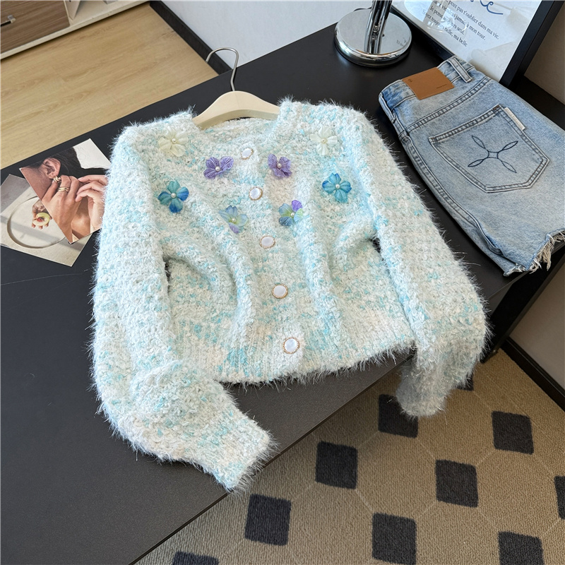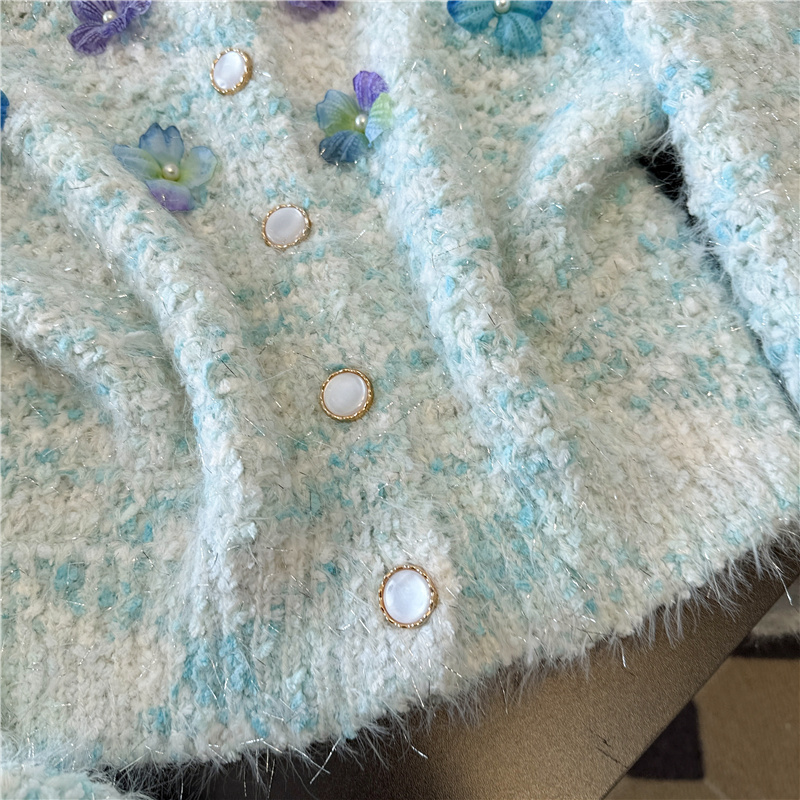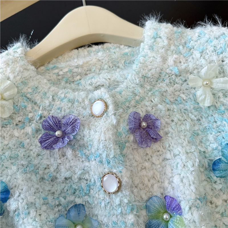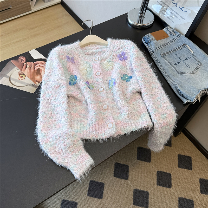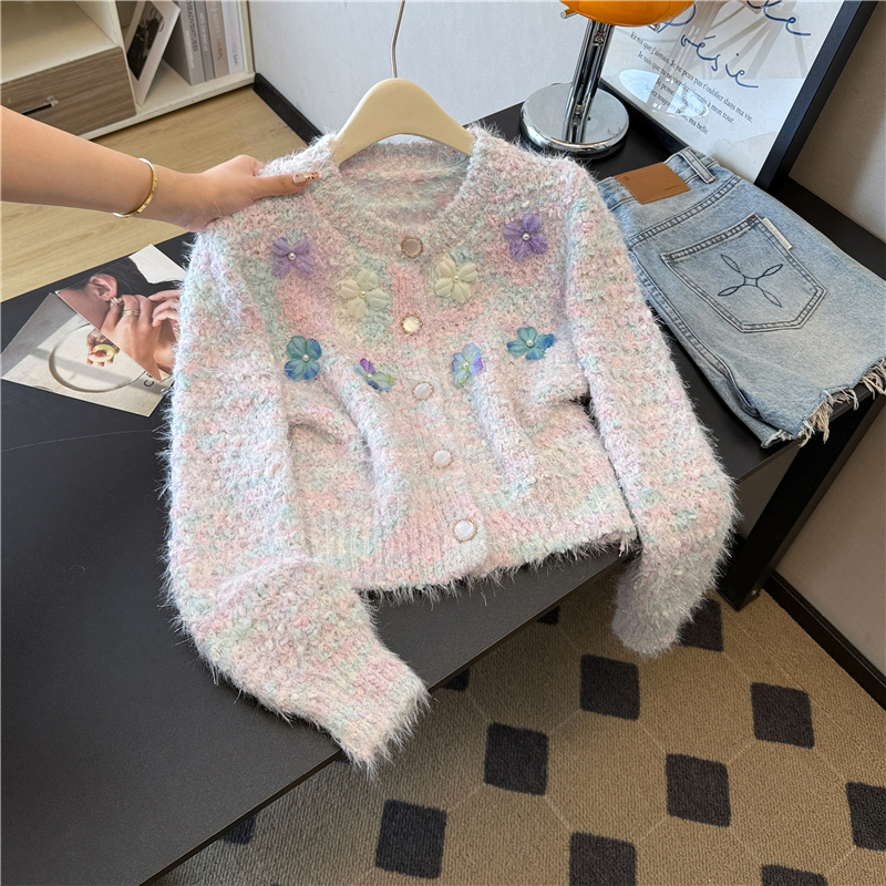 실제 사진 ~ 샤넬 스타일의 3D 플로럴 패턴 긴팔 니트 스웨터 (여성용), 2025년 가을/겨울 신상, 부드럽고 포근한 소재로 단독 착용하기 좋습니다.