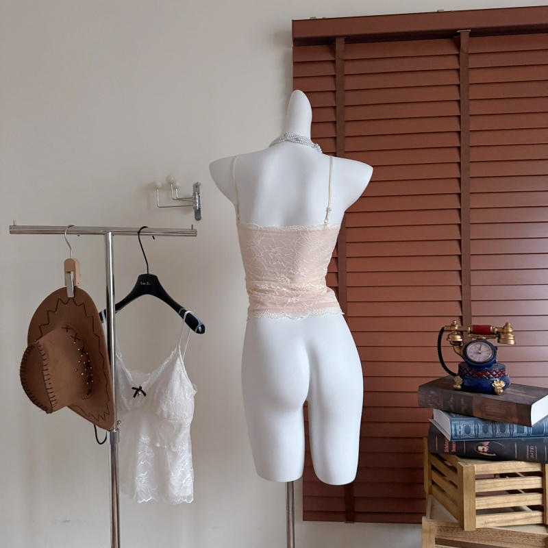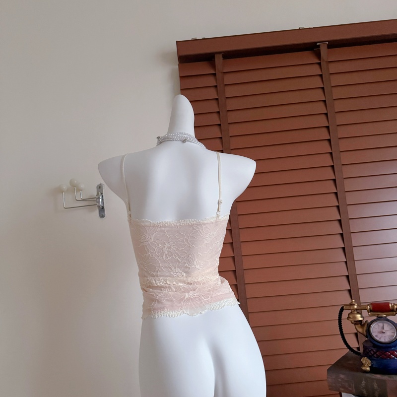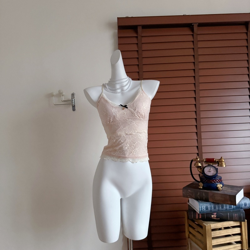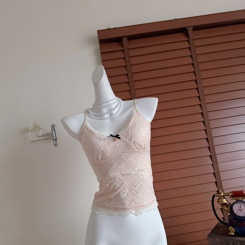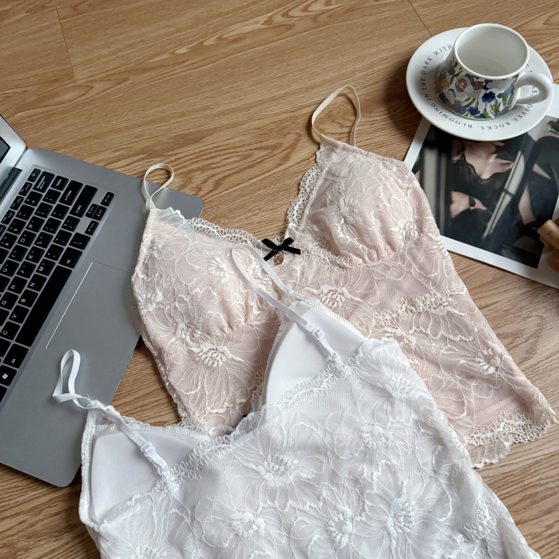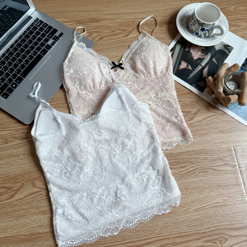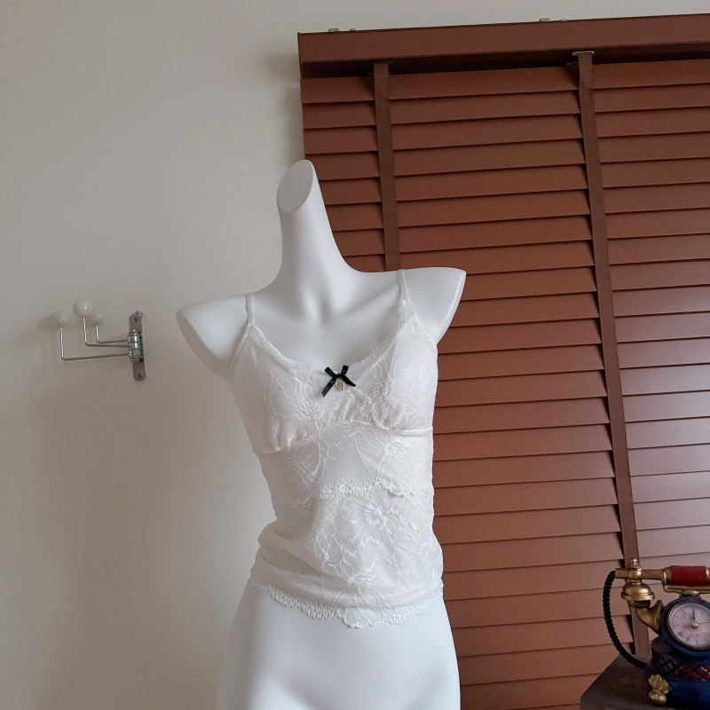 白水女 复古嗲嗲蕾丝 带胸垫蕾丝吊带背心女内搭初秋纯欲修身显瘦