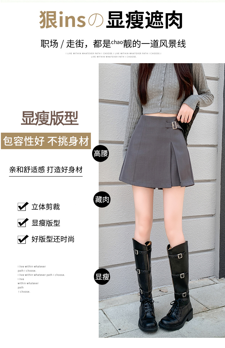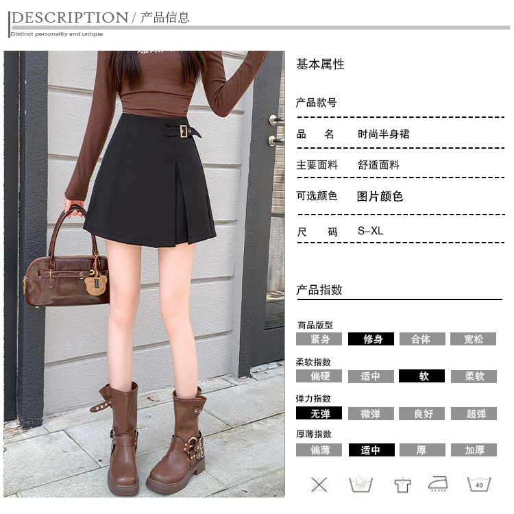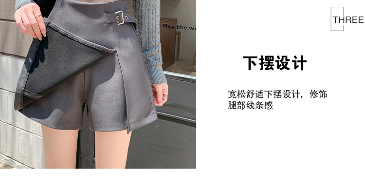 2025 가을 스타일 여성용 정장 스커트 팬츠, 루즈핏 와이드 레그 A라인 반바지, 불규칙 슬릿 스커트, 뒷면 팬츠