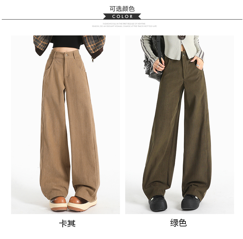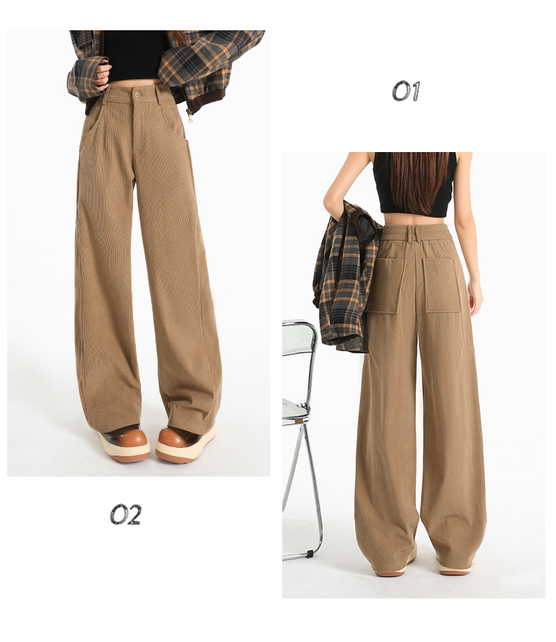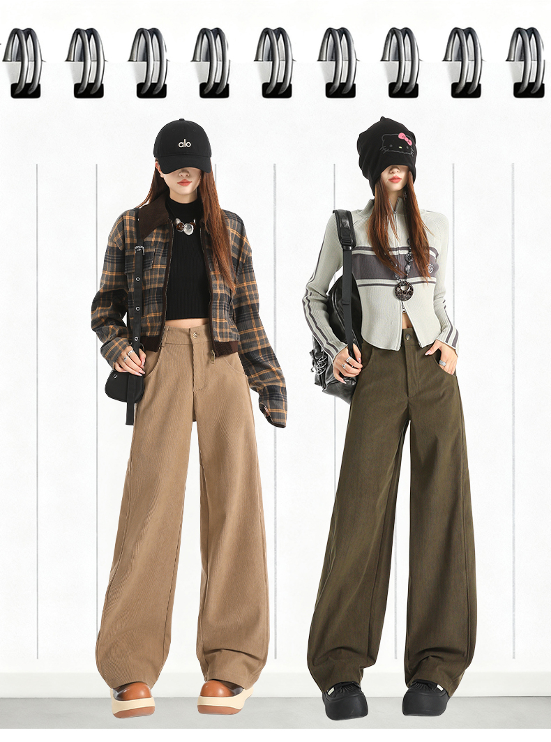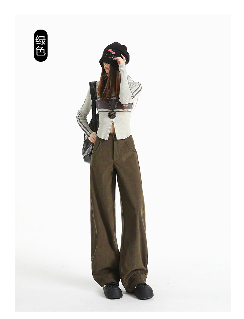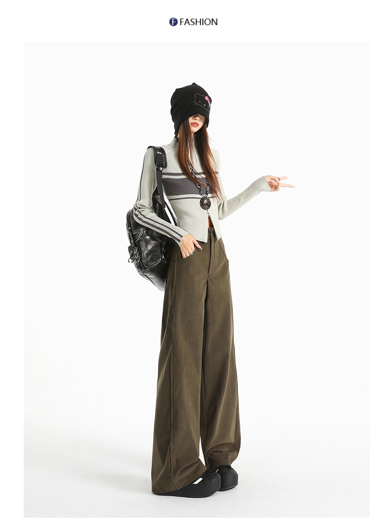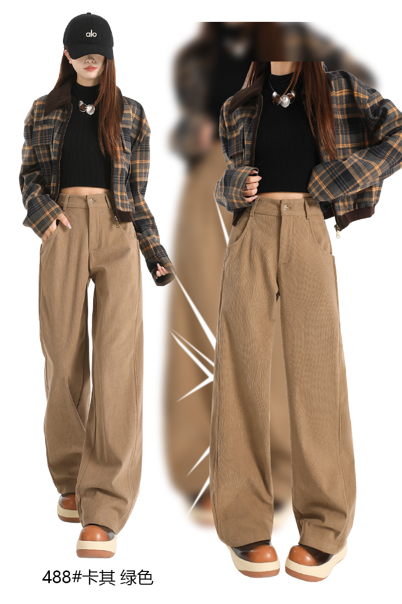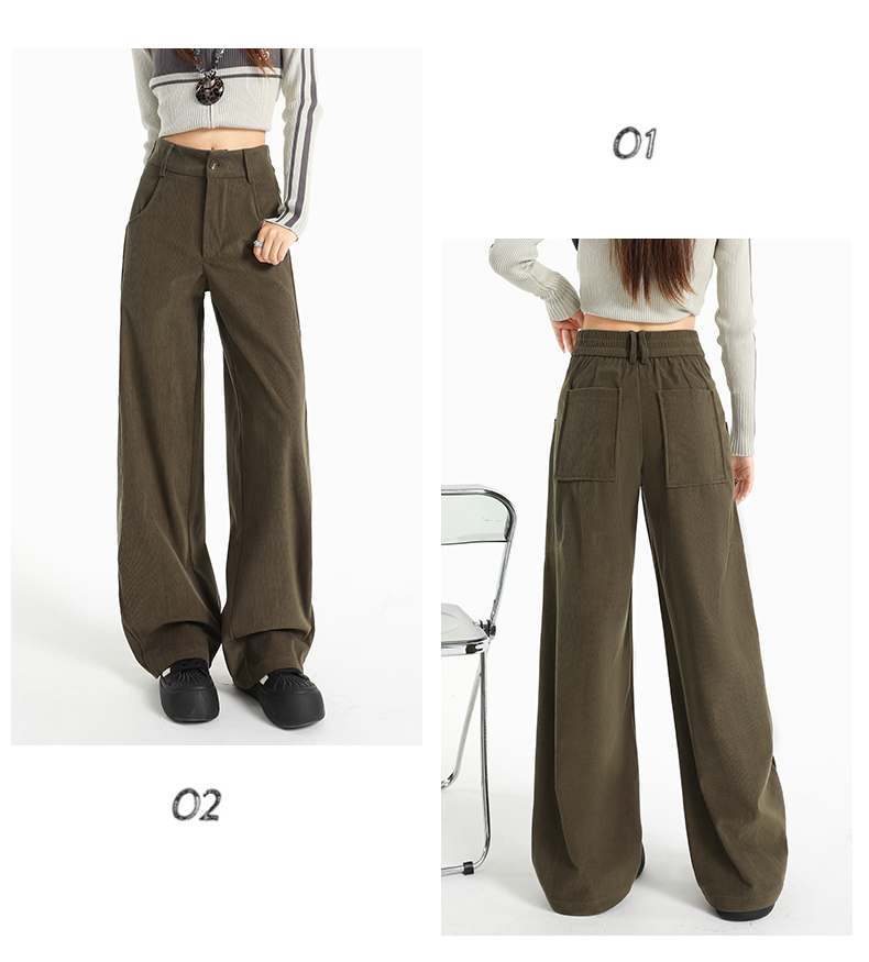 여성용 가을/겨울 신상 니트 셰닐 와이드 팬츠 코듀로이 캐주얼 정장 바지 (녹색 고무줄 허리) 실제 사진입니다.