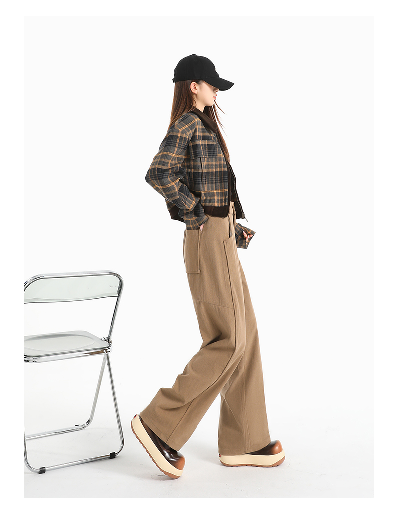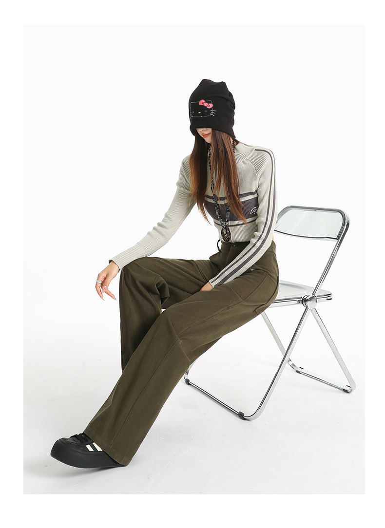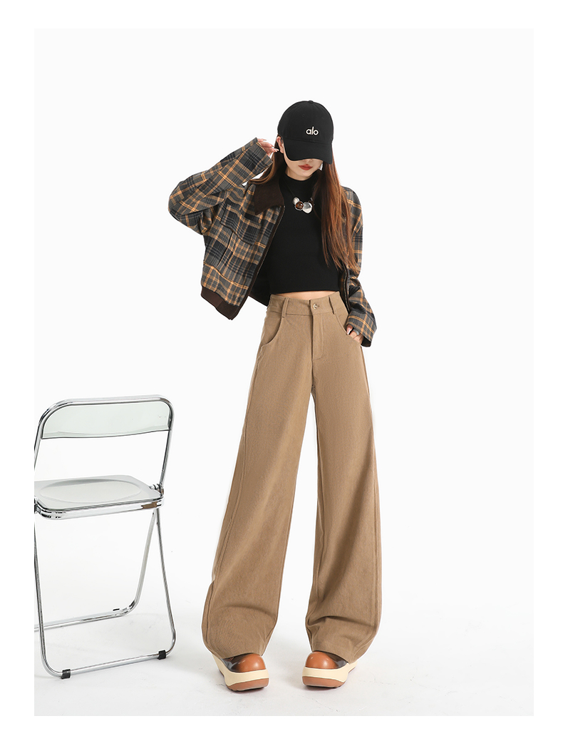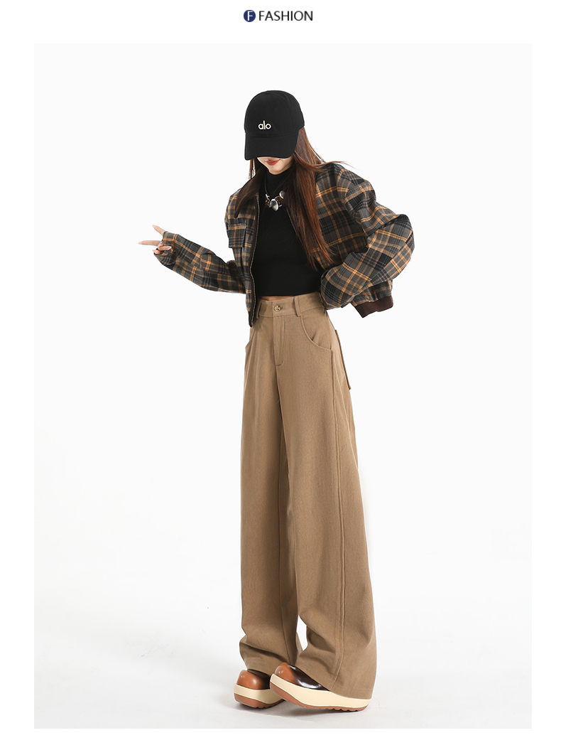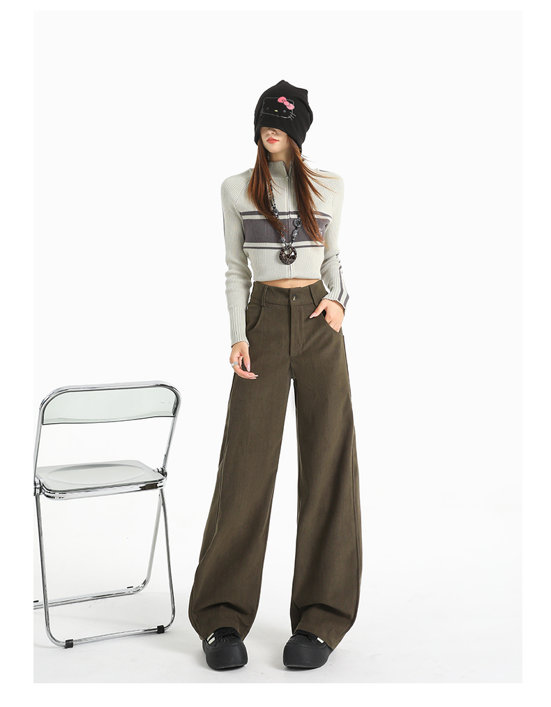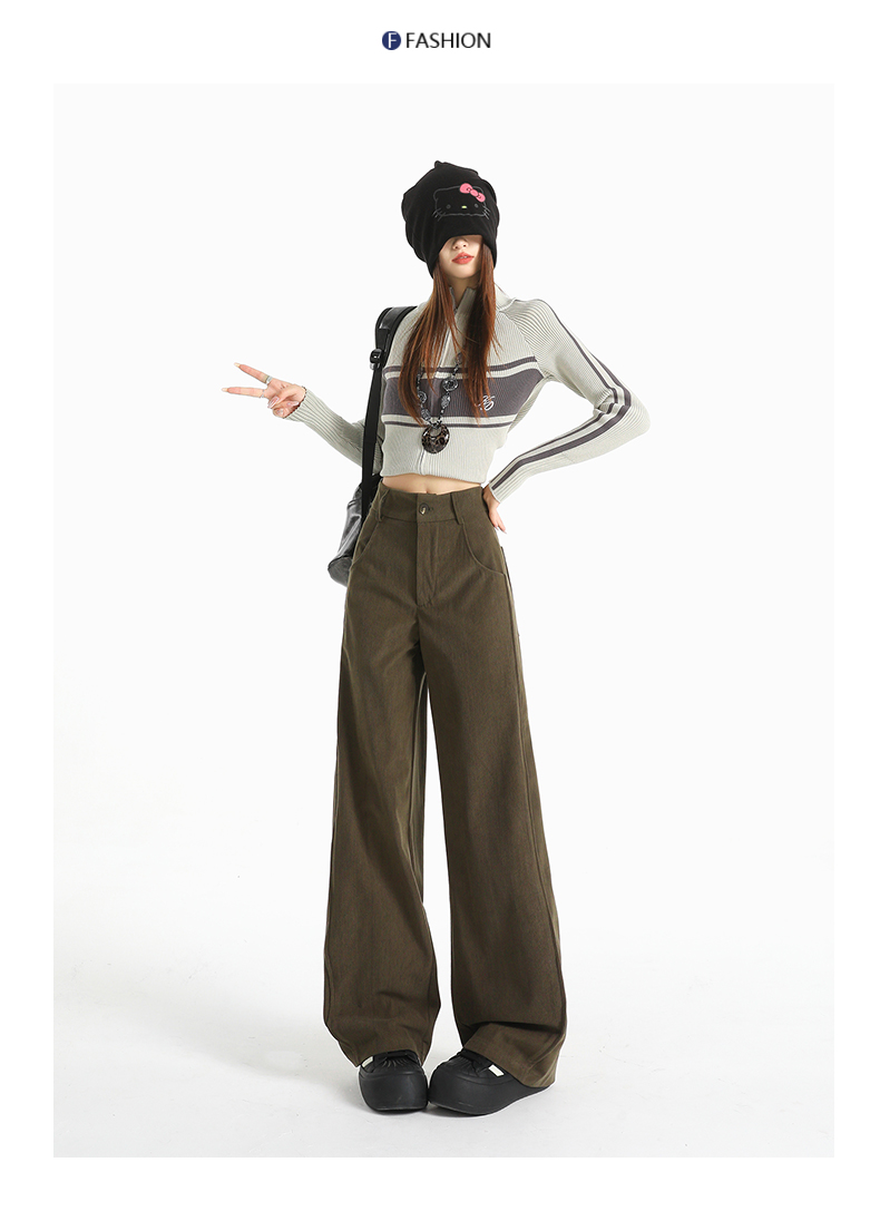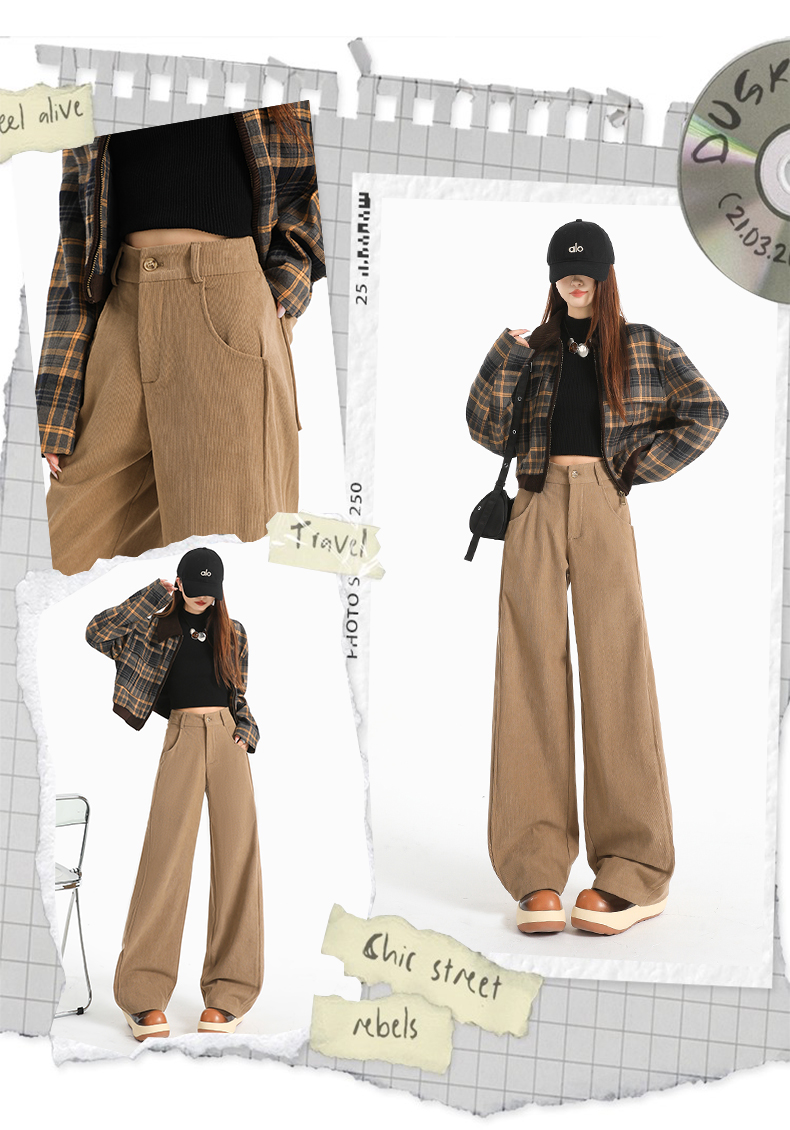 여성용 가을/겨울 신상 니트 셰닐 와이드 팬츠 코듀로이 캐주얼 정장 바지 (녹색 고무줄 허리) 실제 사진입니다.