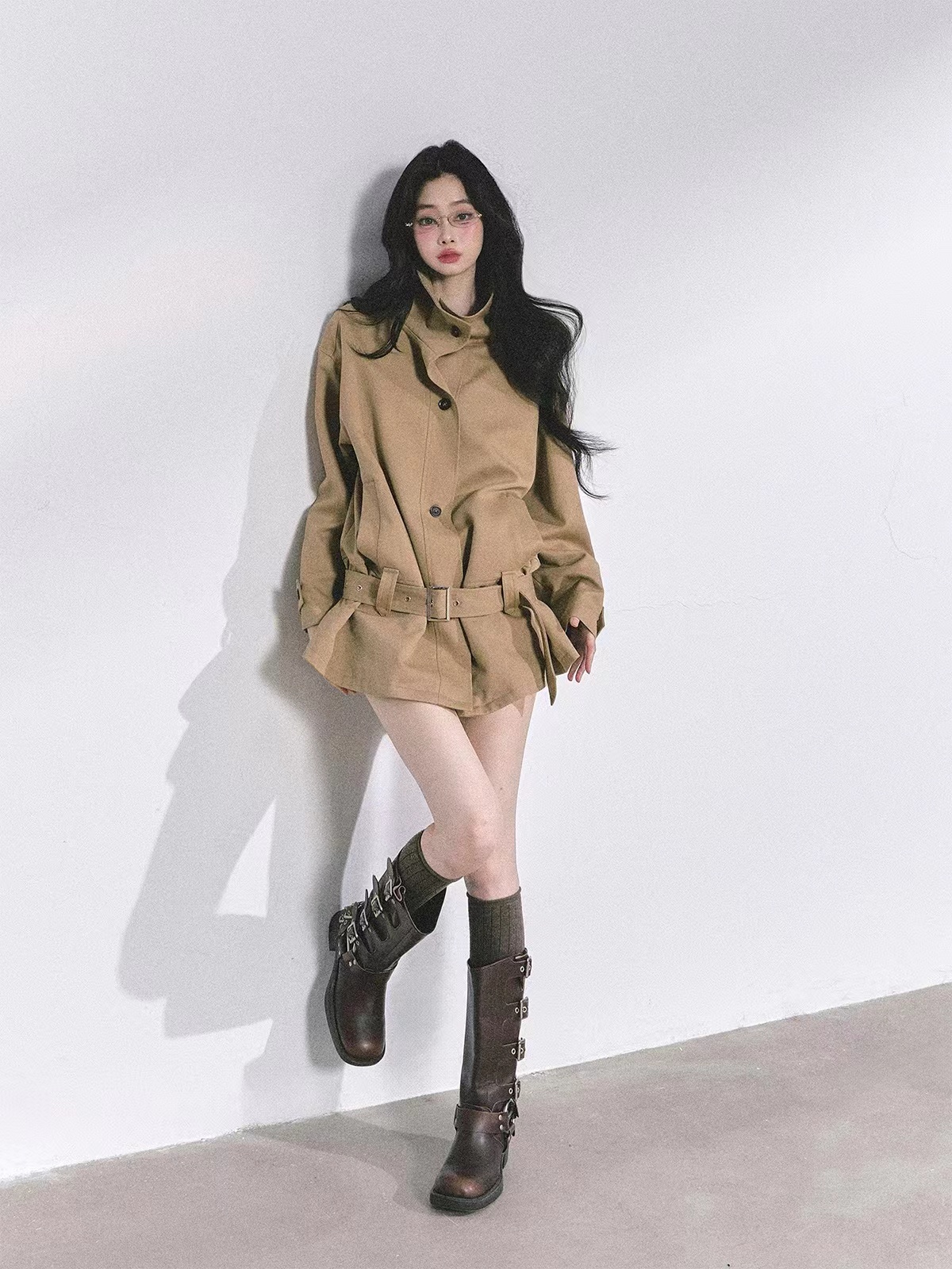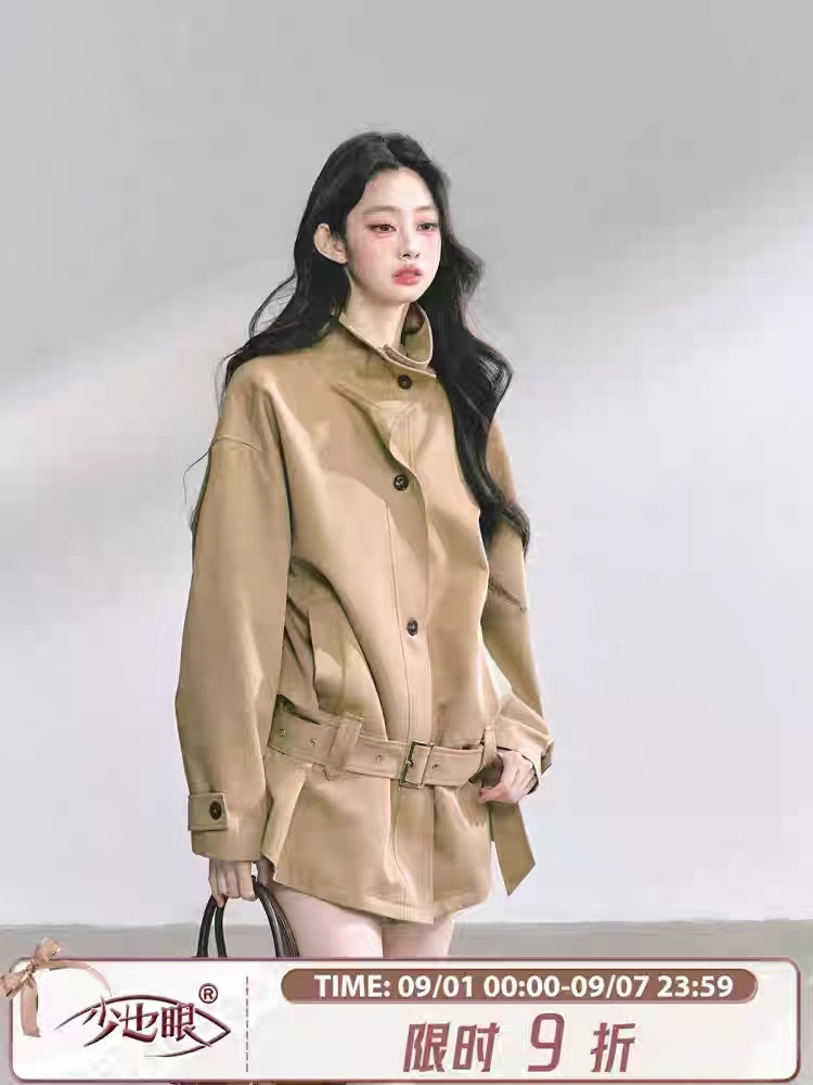 시드니 홀리데이 하이엔드 프렌치 헵번 스타일 트렌치코트, 가을 루즈핏, 슬림핏 스탠드 칼라 탑
