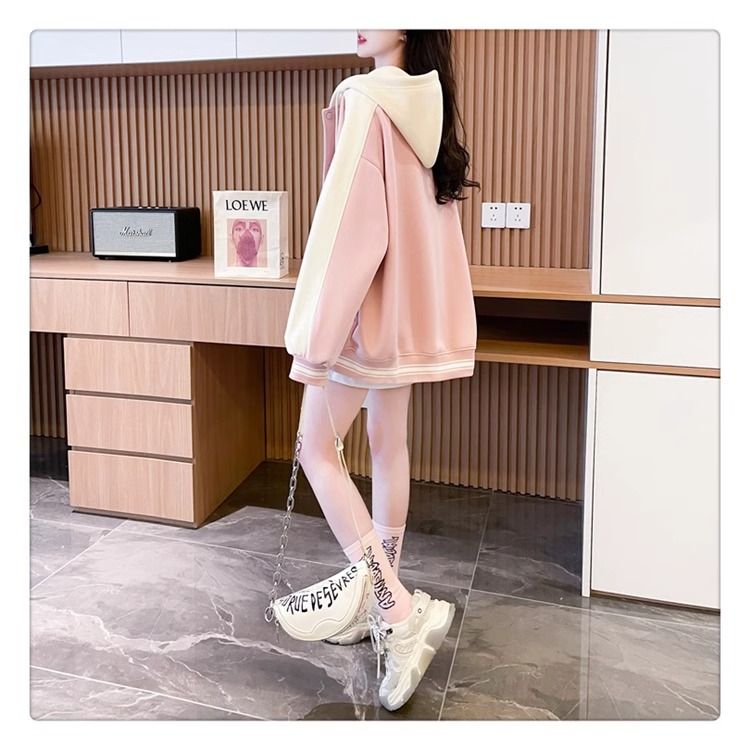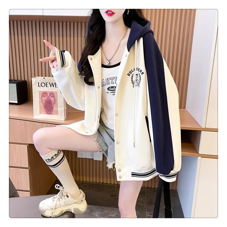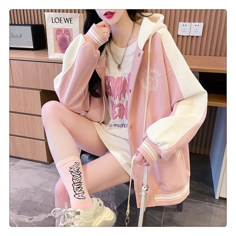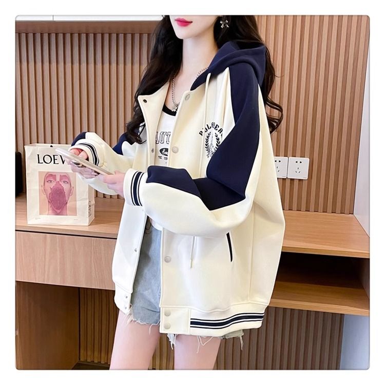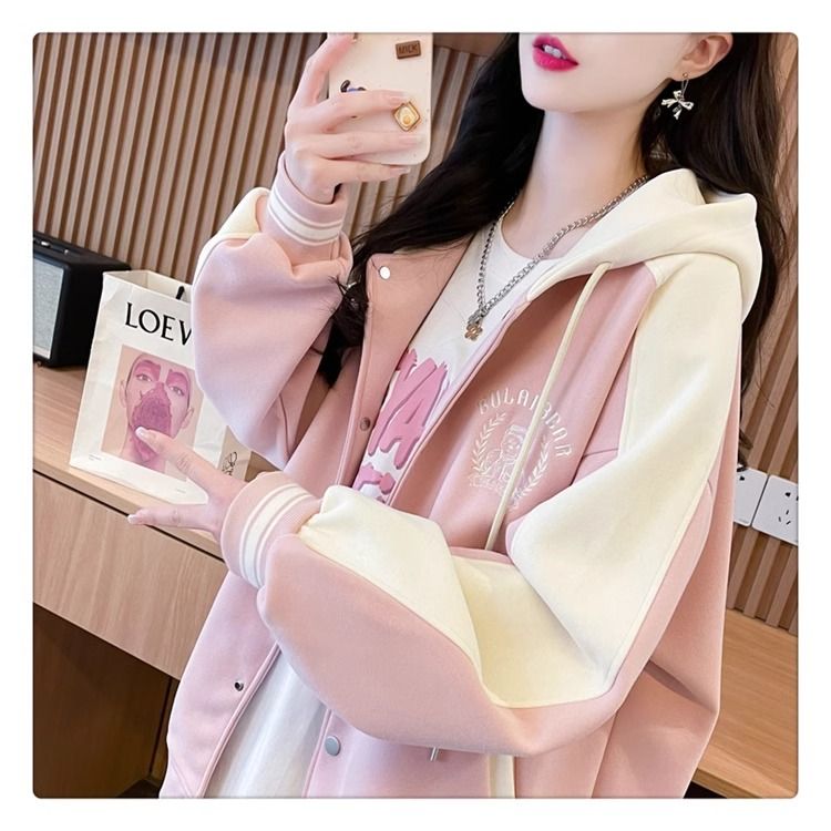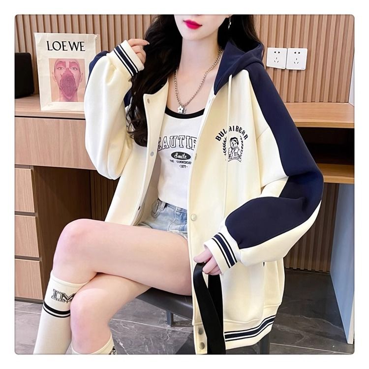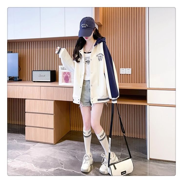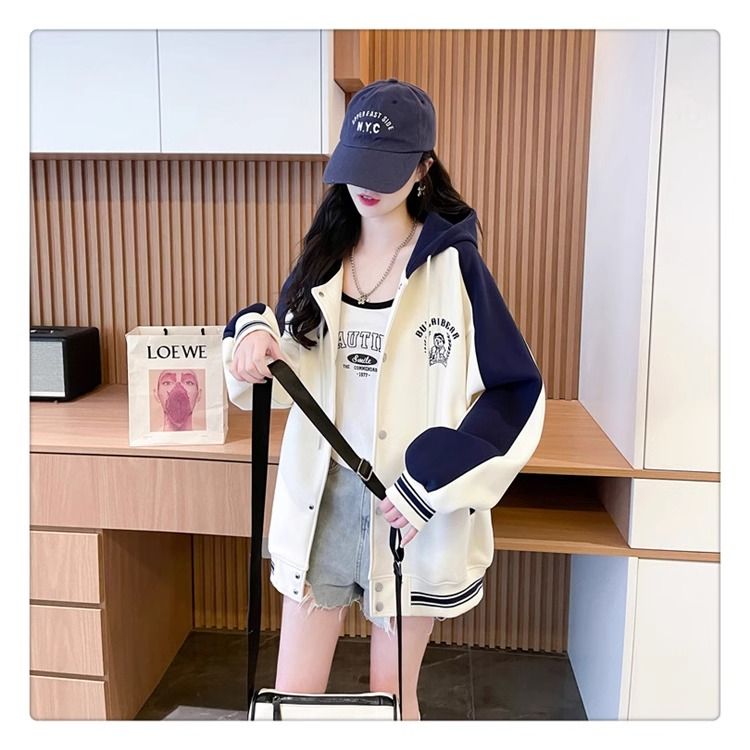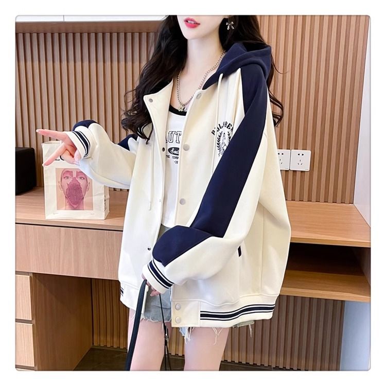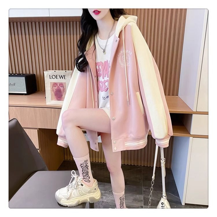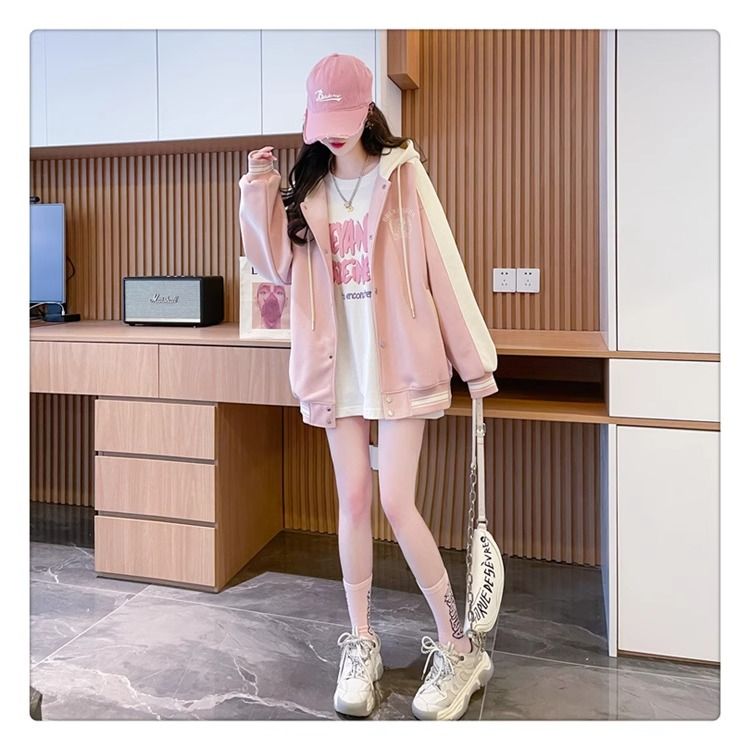 봄과 가을에 입기 좋은 모조 코튼과 밀크 실크 소재의 얇은 2피스 스웨트셔츠, 여성용 플러스 사이즈 야구 재킷.