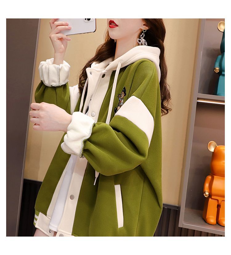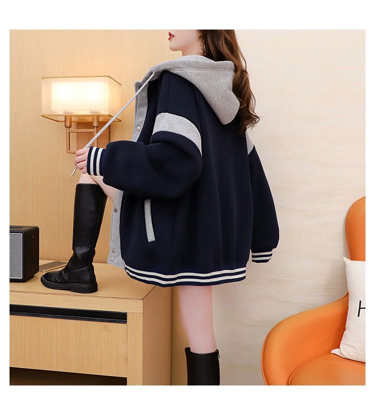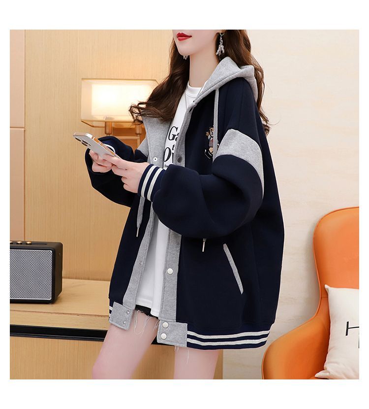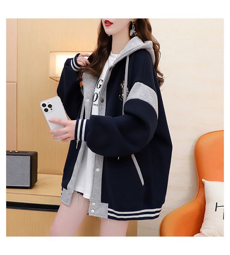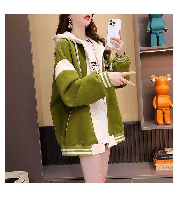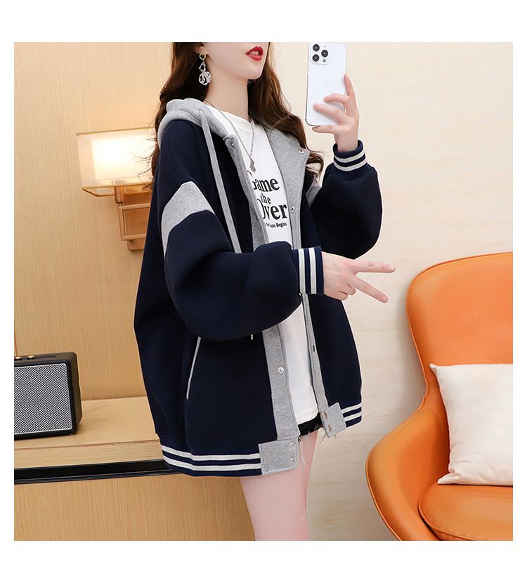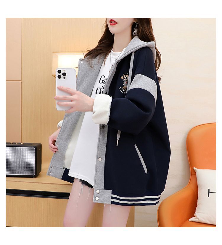 여성용 한국식 얇은 후드 스웨트셔츠 재킷으로, 모조 코튼과 밀크 실크로 제작되었습니다.