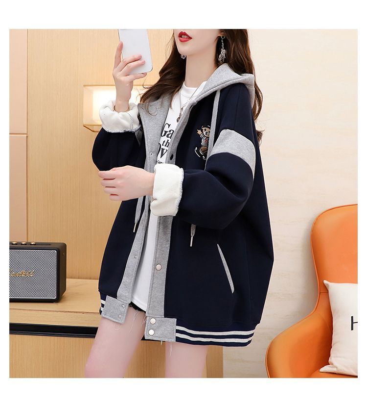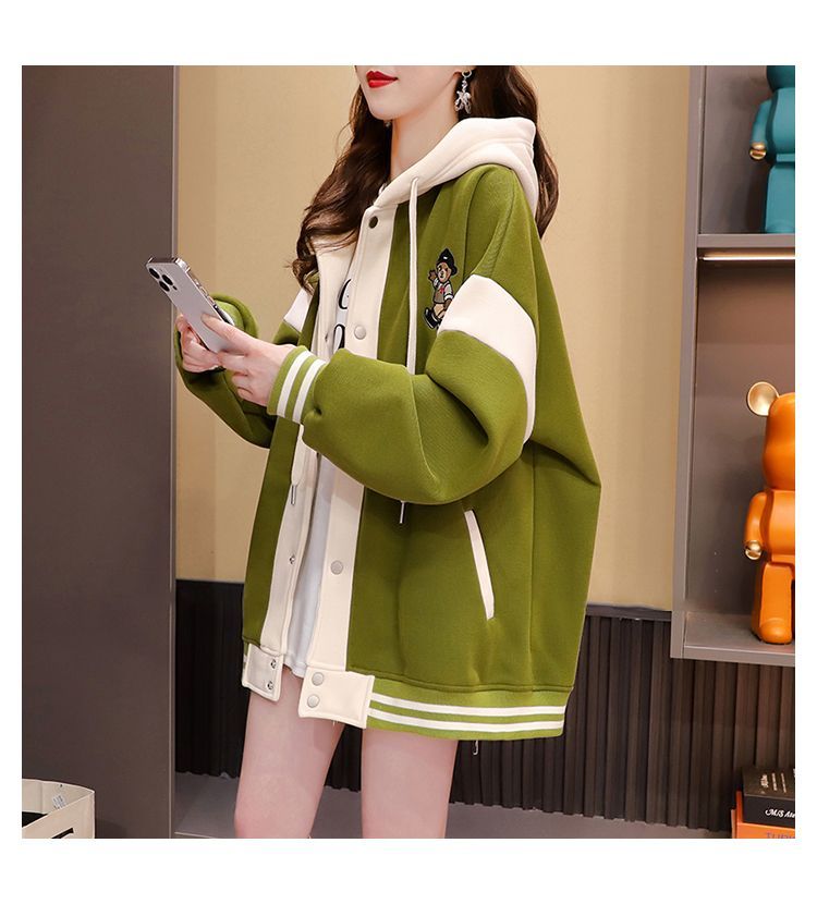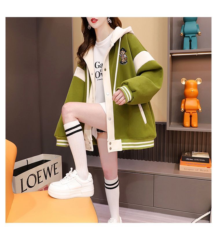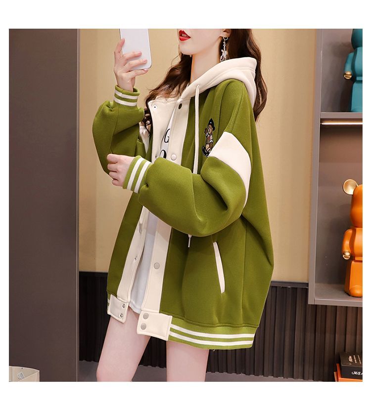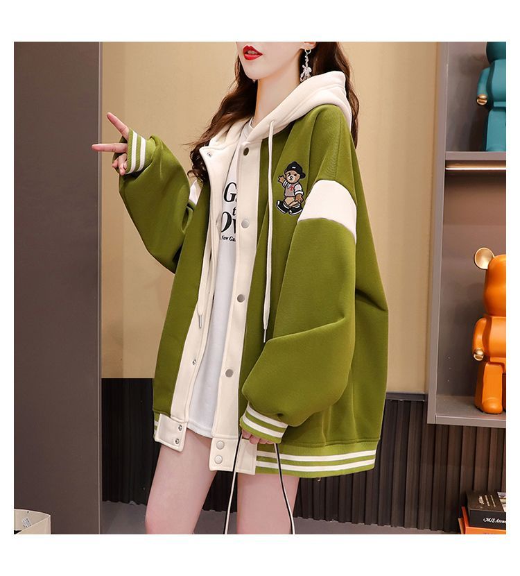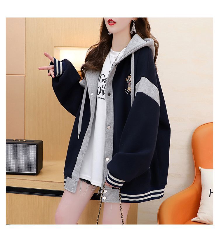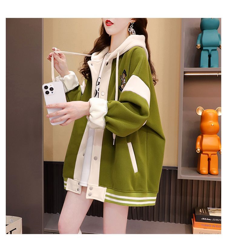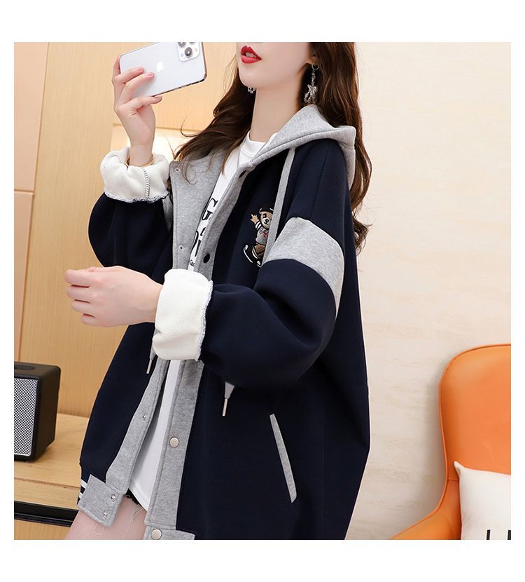 여성용 한국식 얇은 후드 스웨트셔츠 재킷으로, 모조 코튼과 밀크 실크로 제작되었습니다.