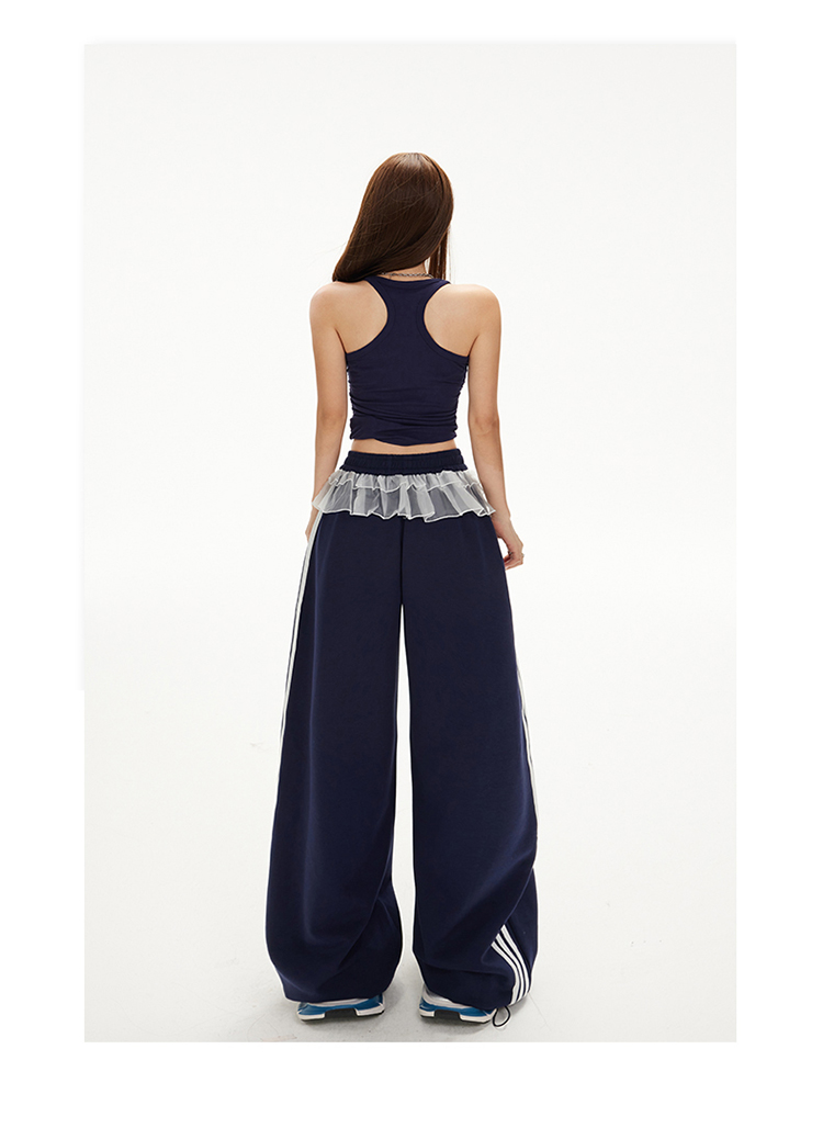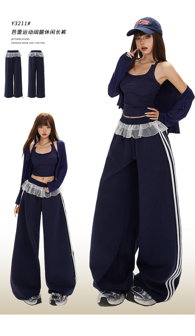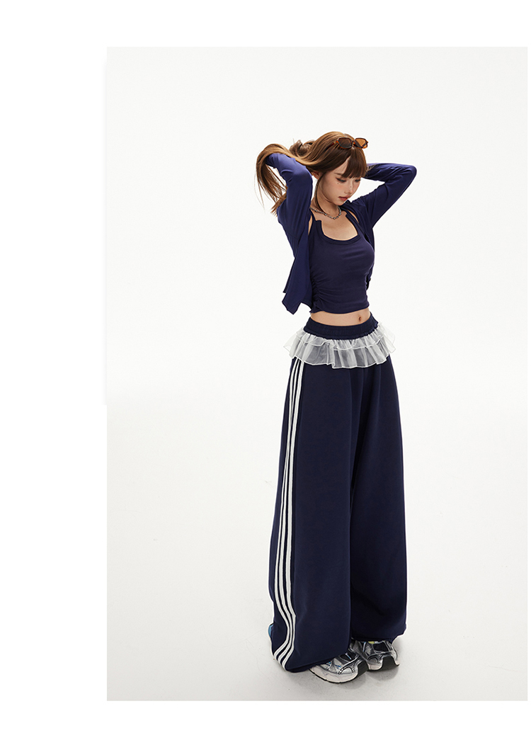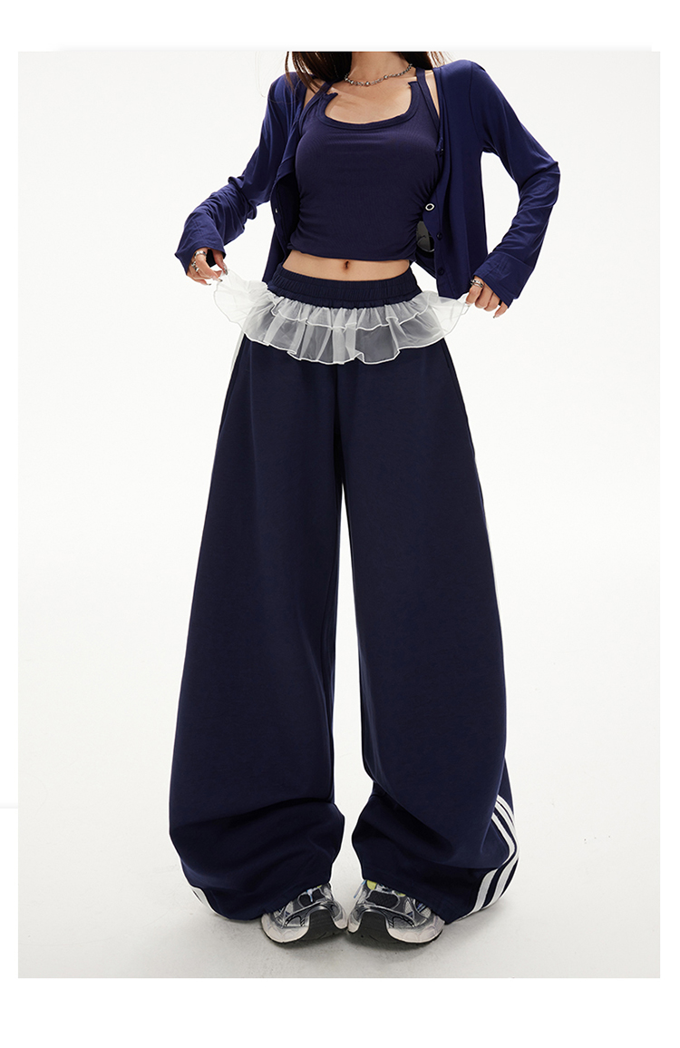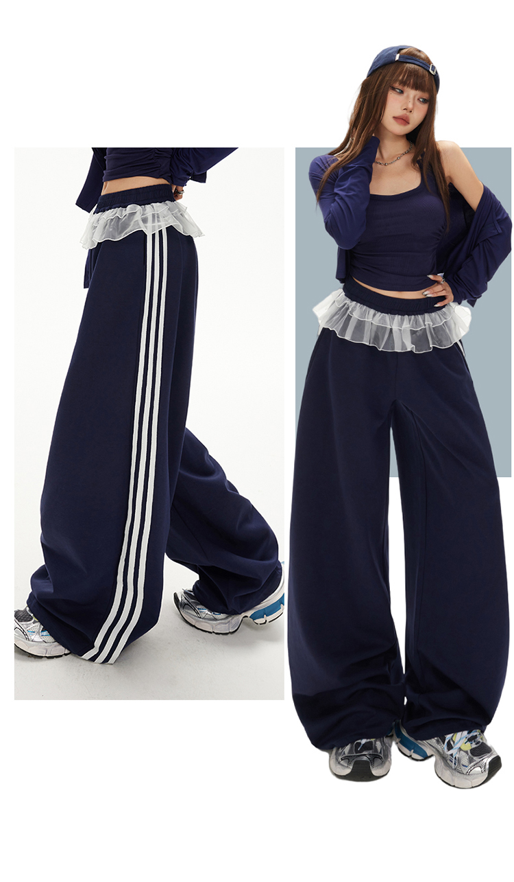 발레에서 영감을 받은 디자인의 미국 레트로 루즈 와이드 레그 팬츠, 여성용 다용도 스트레이트 레그 캐주얼 팬츠, 엑스트라 롱 팬츠의 실제 사진