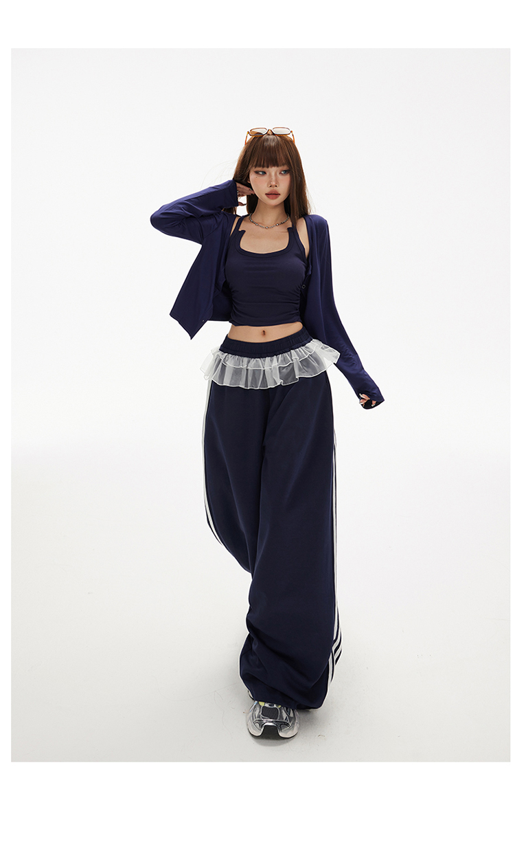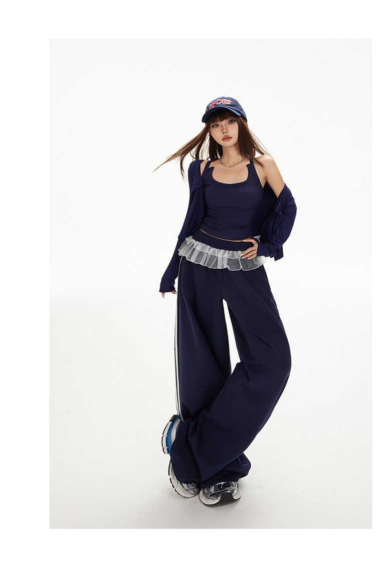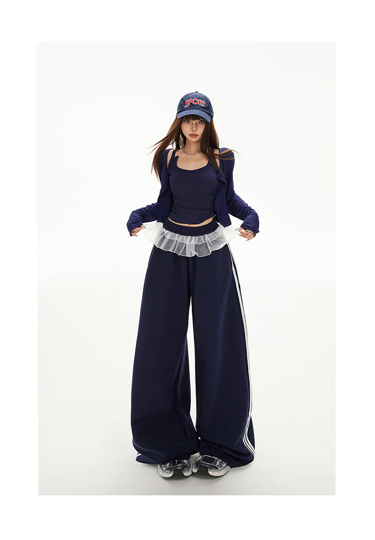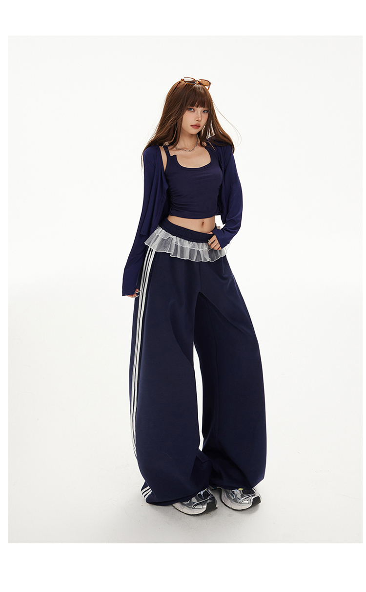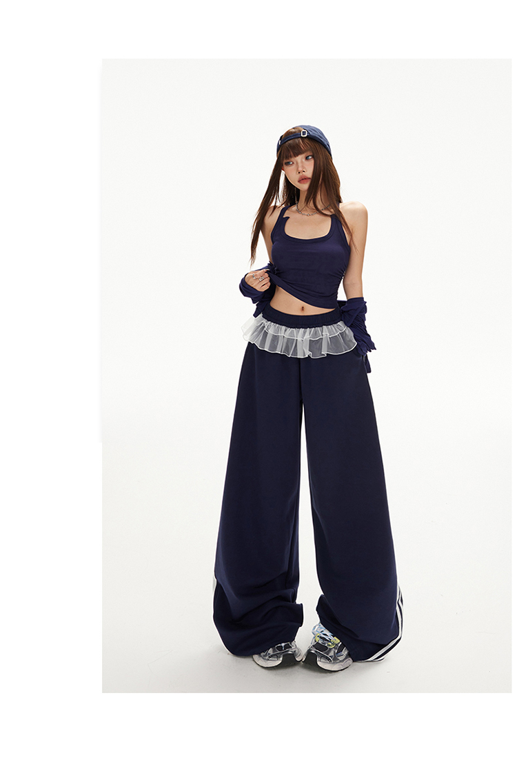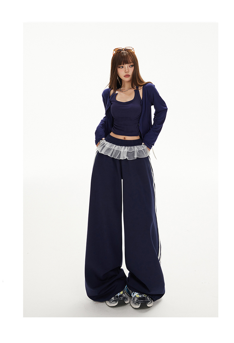 발레에서 영감을 받은 디자인의 미국 레트로 루즈 와이드 레그 팬츠, 여성용 다용도 스트레이트 레그 캐주얼 팬츠, 엑스트라 롱 팬츠의 실제 사진