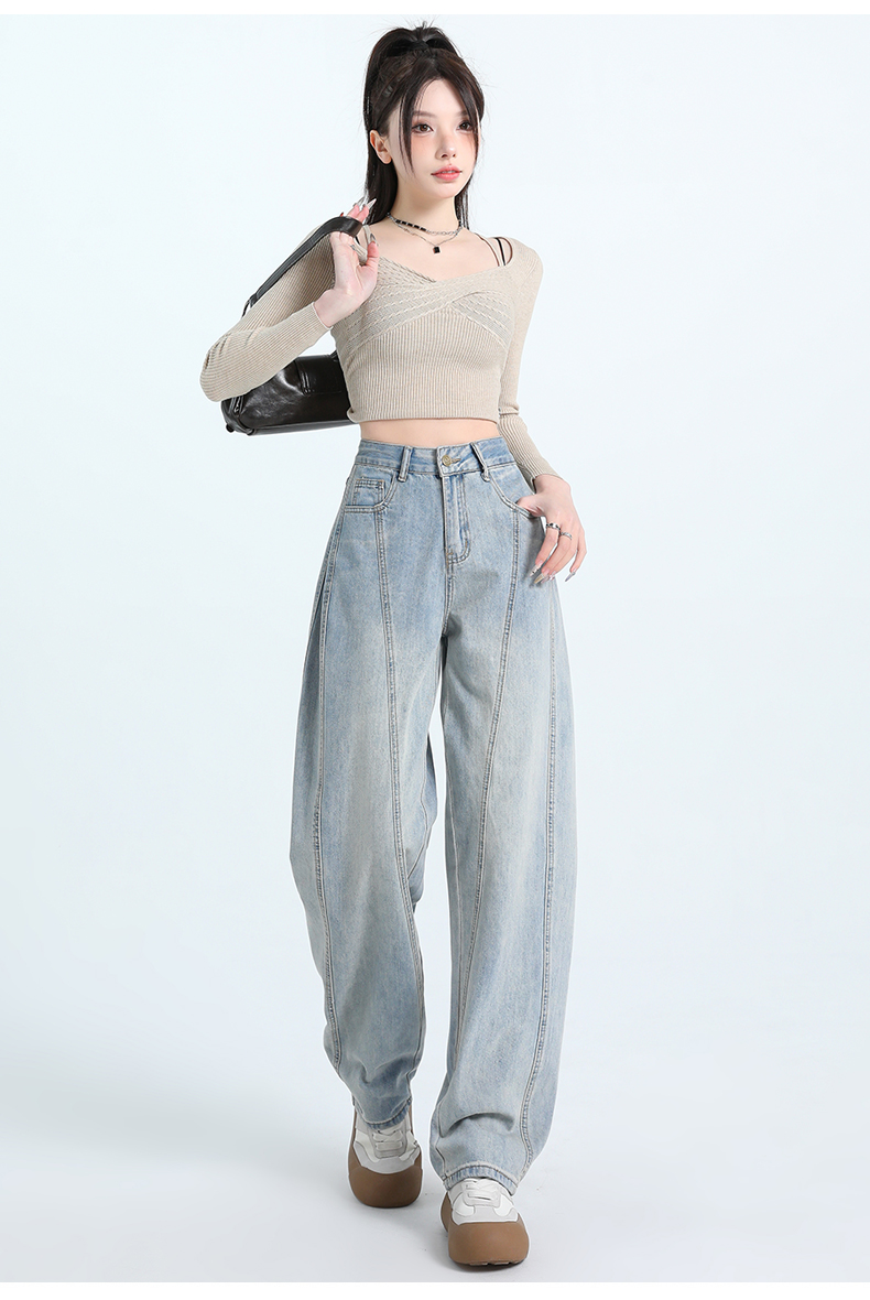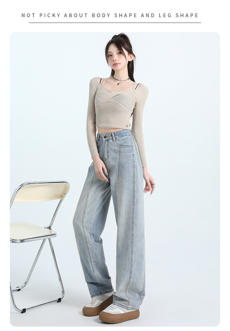 2025년 인기 판매 상품, 미국 스타일 블루 컬러, 옆솔기 하이웨이스트 디자인, 루즈핏, 슬림핏, 활용도 높은 여성용 플로어 길이 패션 진