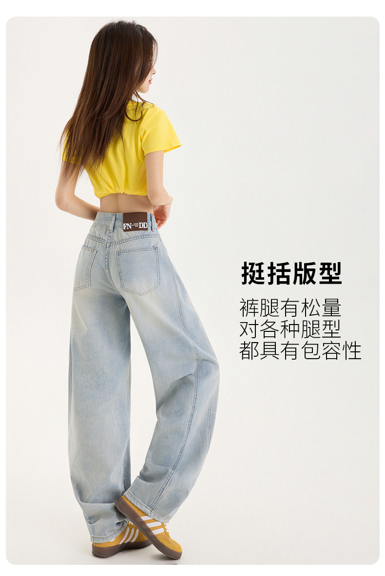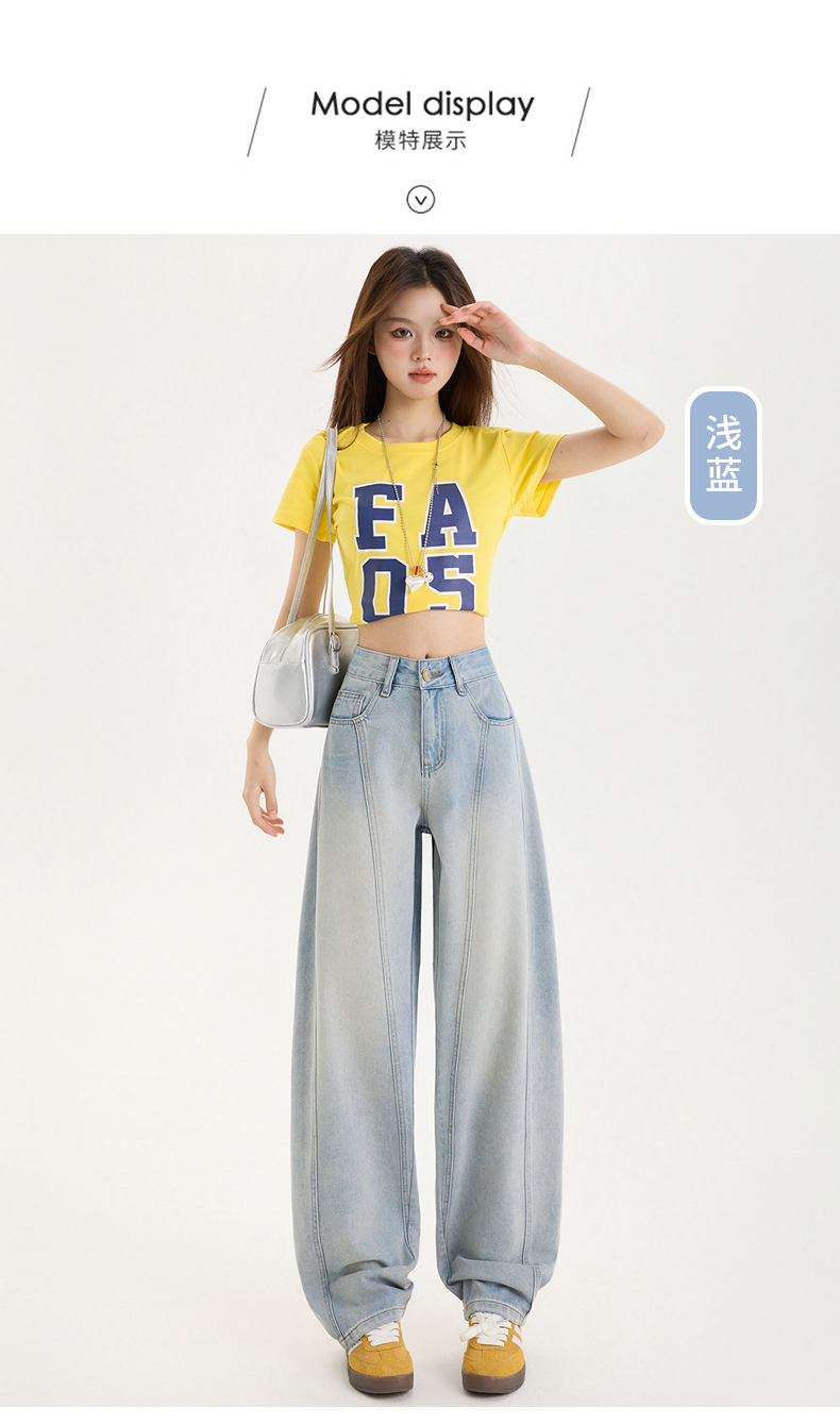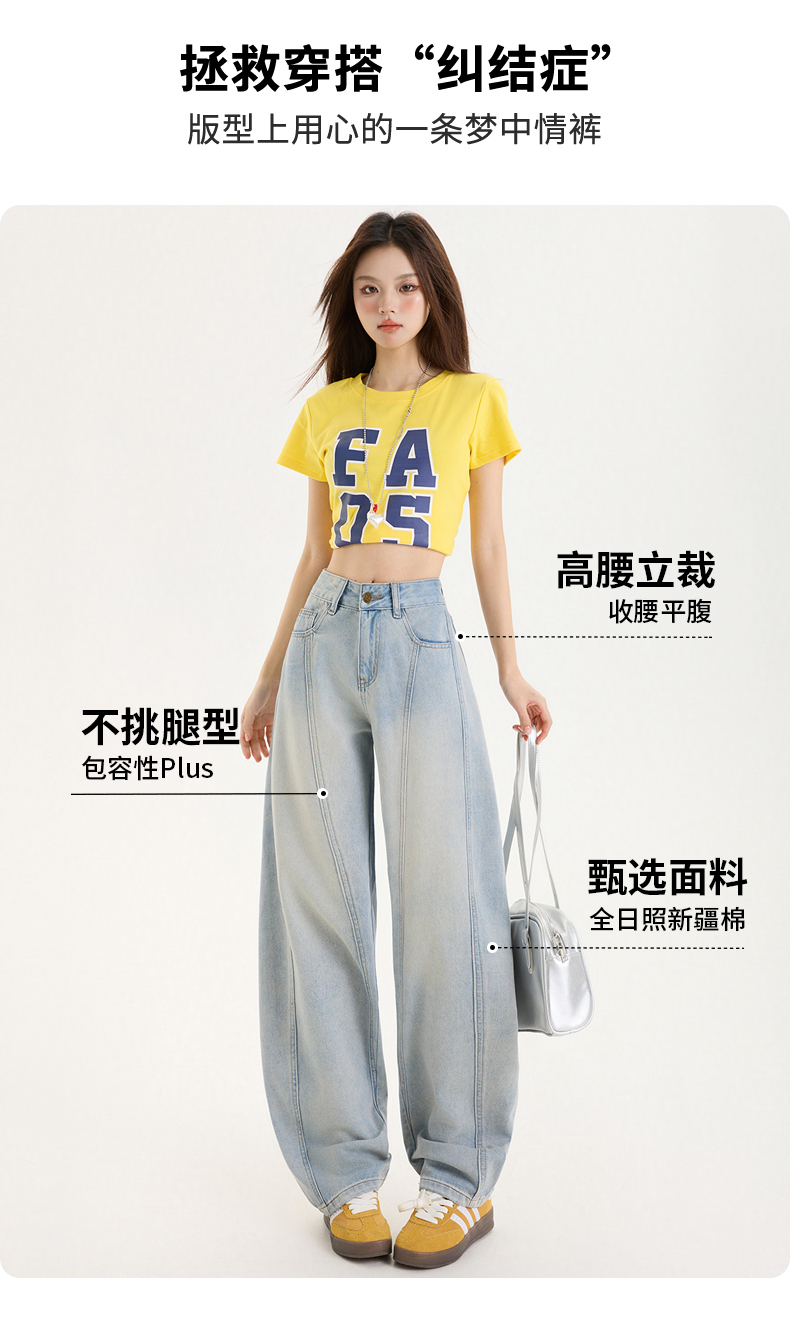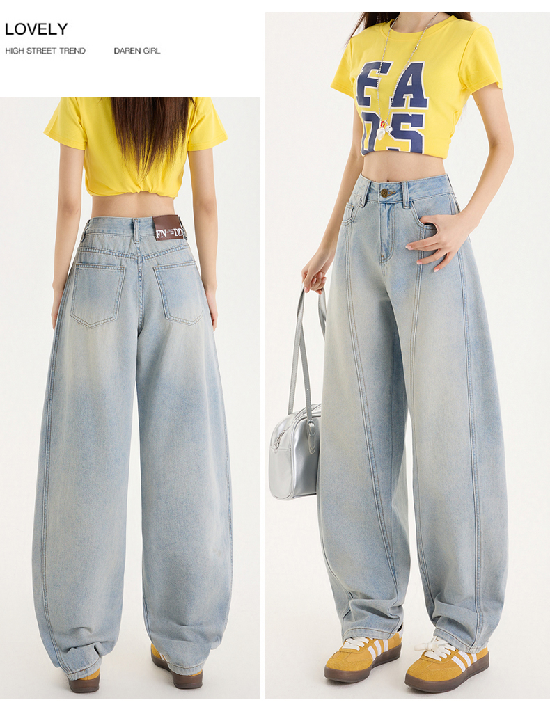 2025년 인기 판매 상품, 미국 스타일 블루 컬러, 옆솔기 하이웨이스트 디자인, 루즈핏, 슬림핏, 활용도 높은 여성용 플로어 길이 패션 진