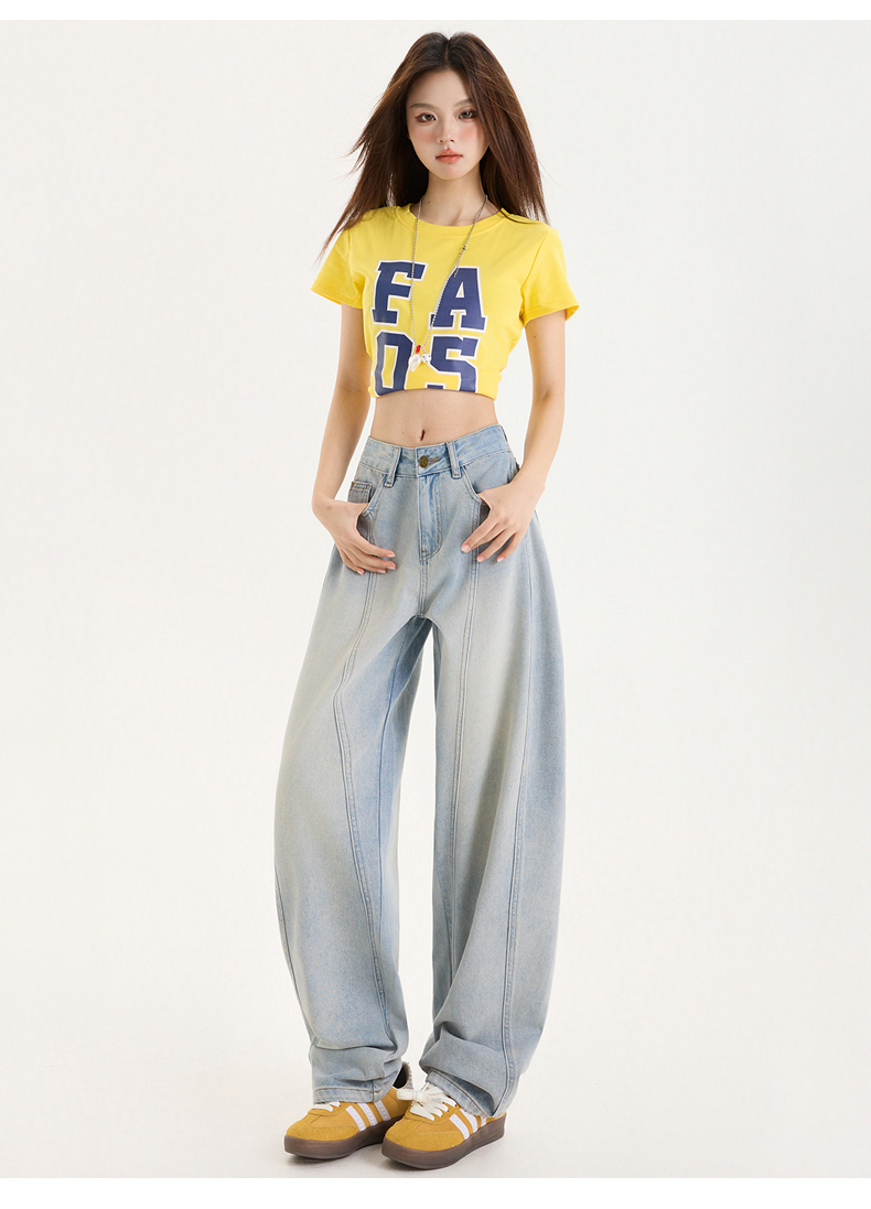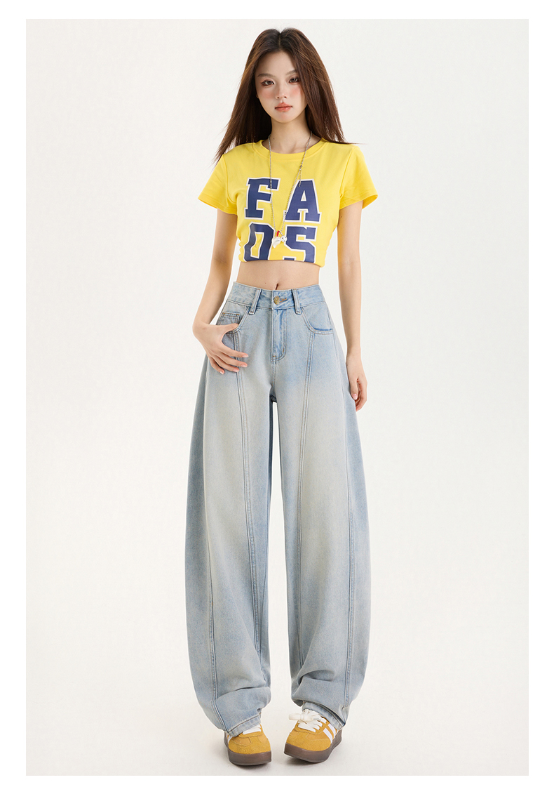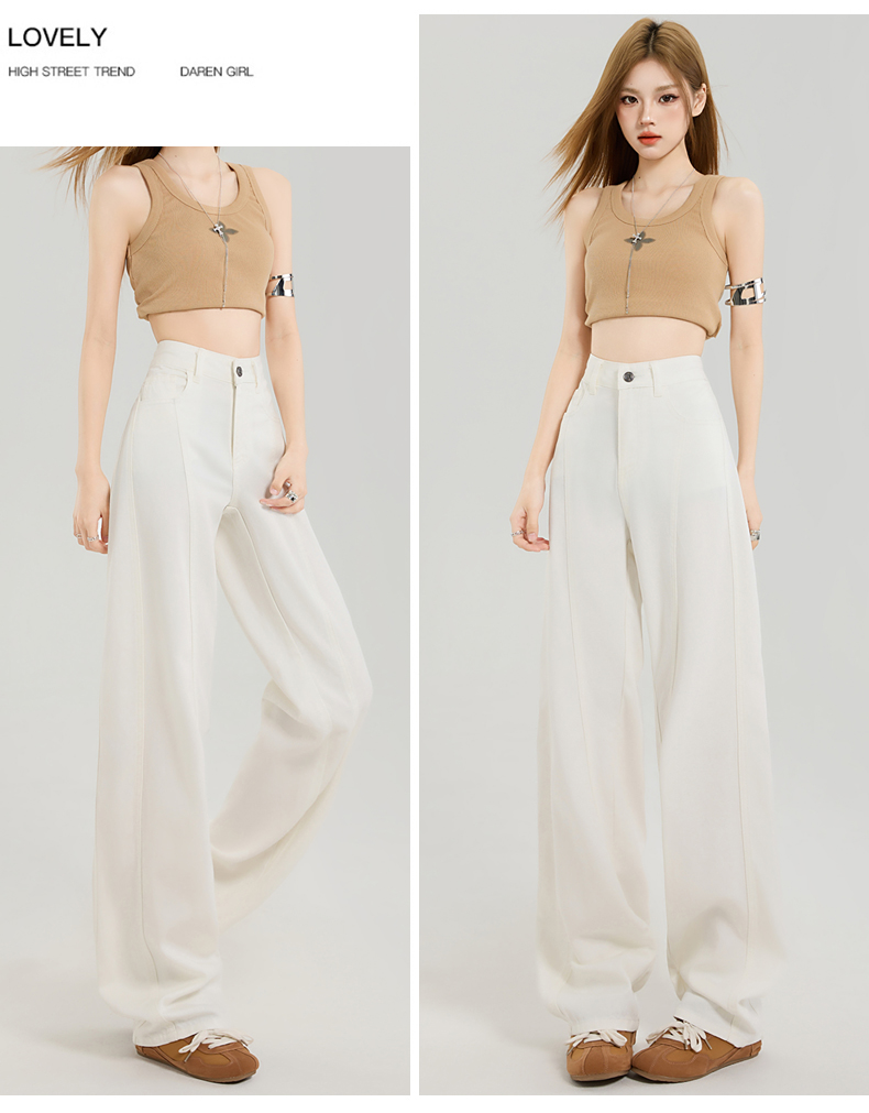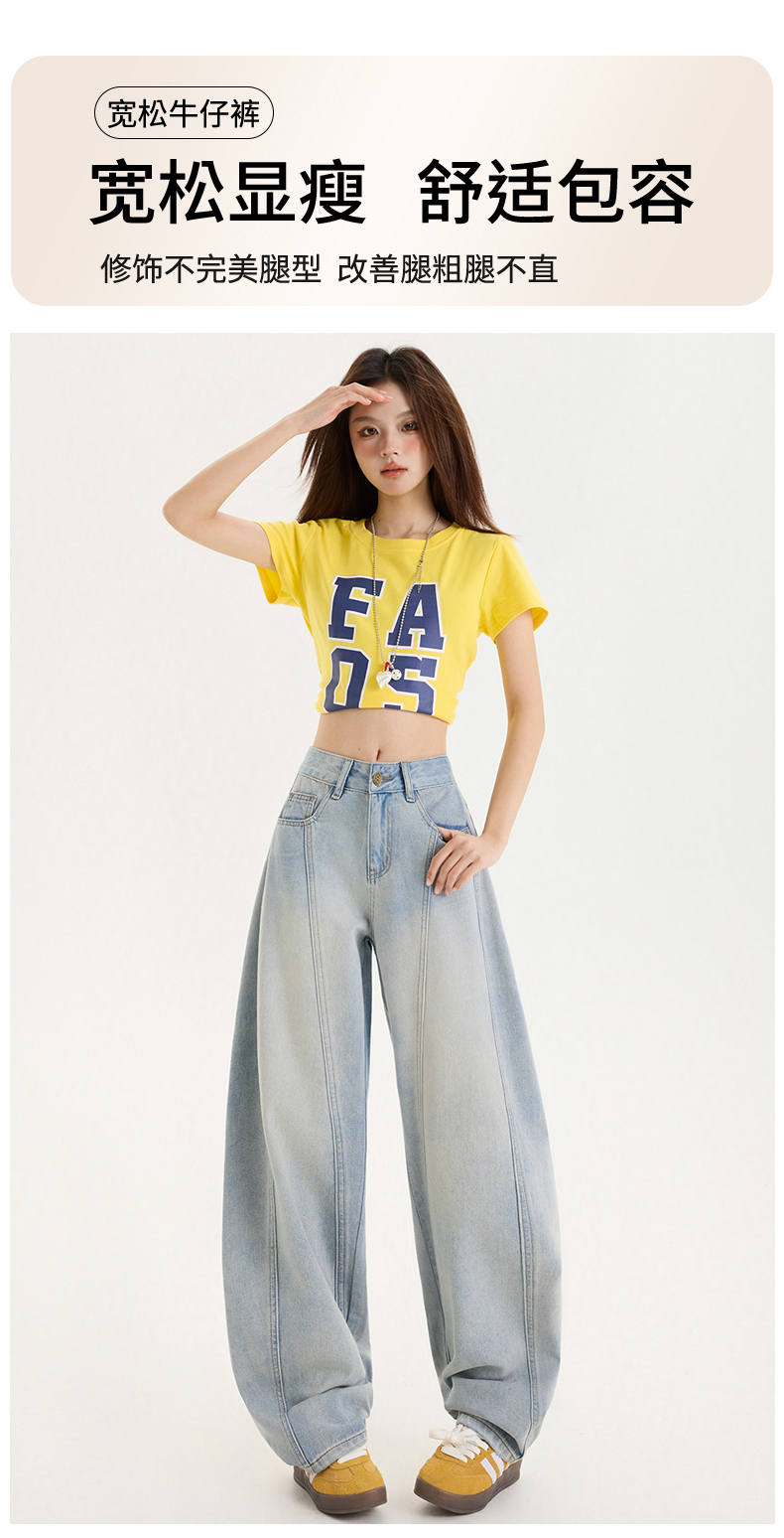 2025년 인기 판매 상품, 미국 스타일 블루 컬러, 옆솔기 하이웨이스트 디자인, 루즈핏, 슬림핏, 활용도 높은 여성용 플로어 길이 패션 진