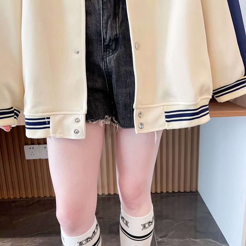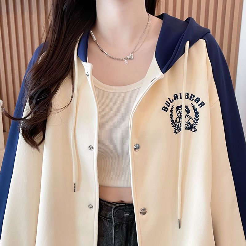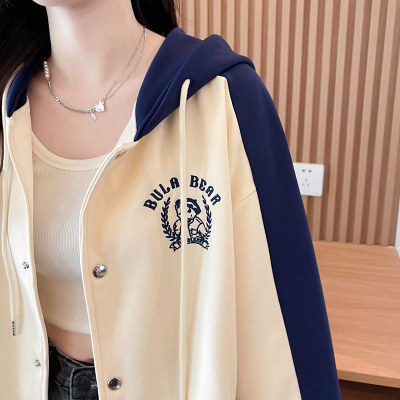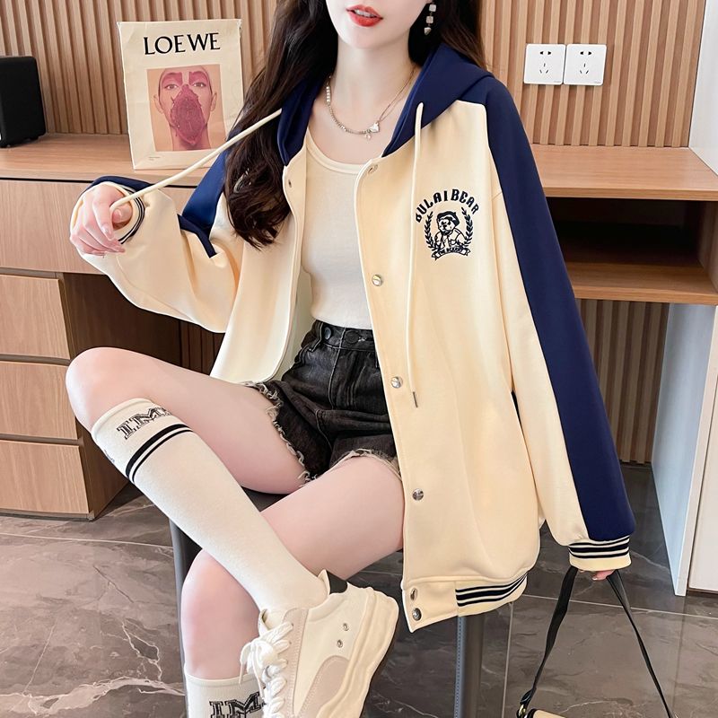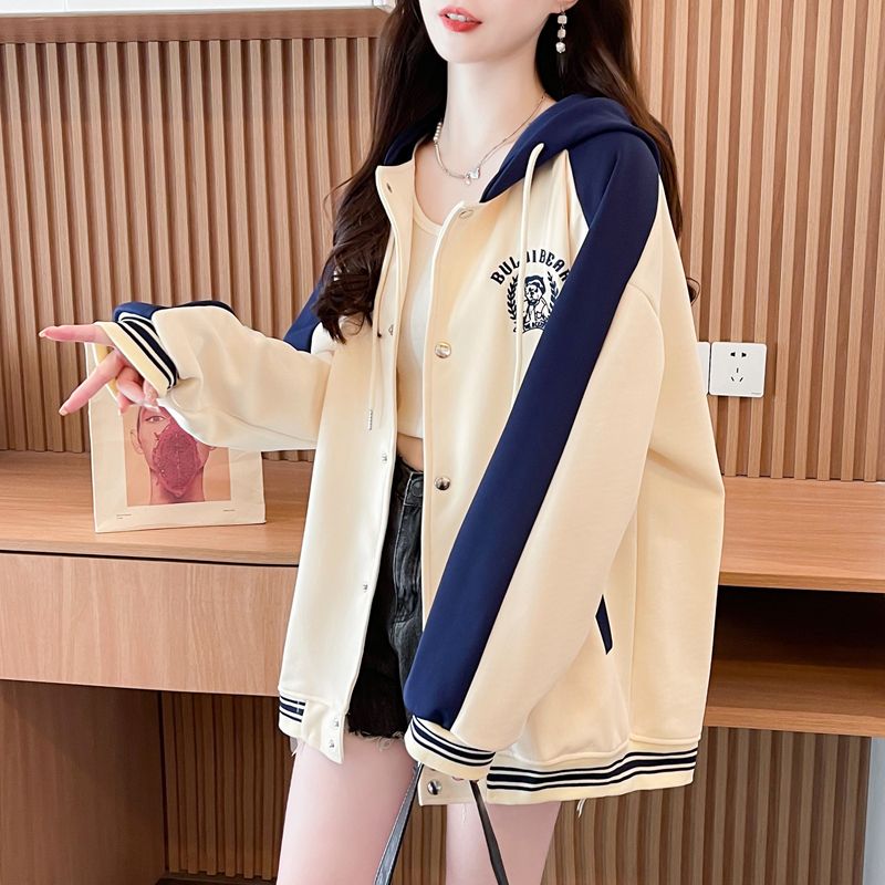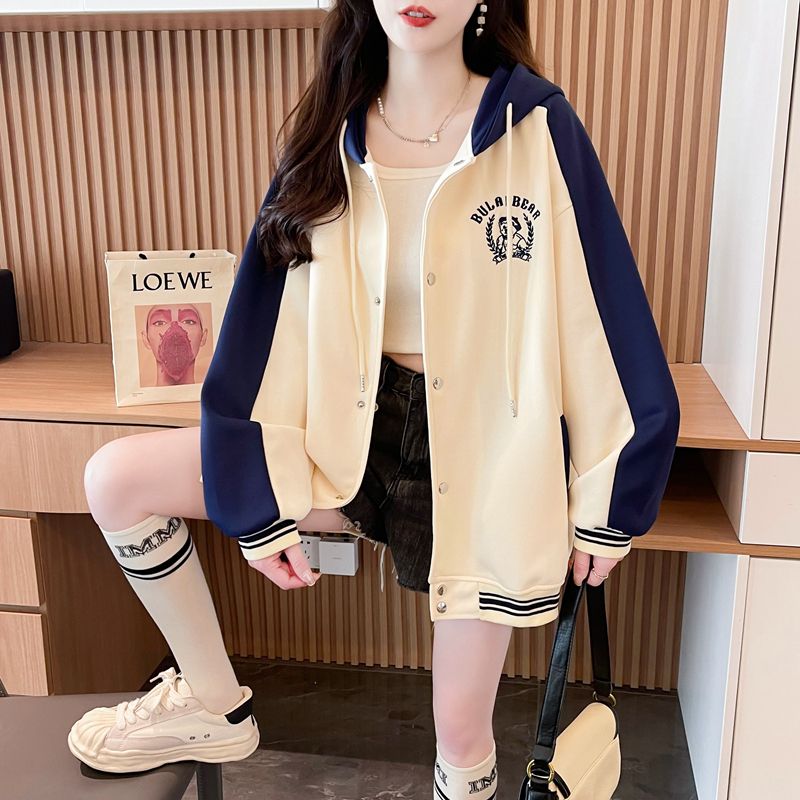 모조 코튼과 밀크 실크로 만든 여성용 플러스 사이즈 야구 재킷/후드티의 실제 사진입니다. 봄/가을에 입기 좋은 두 조각으로 스타일링했습니다.