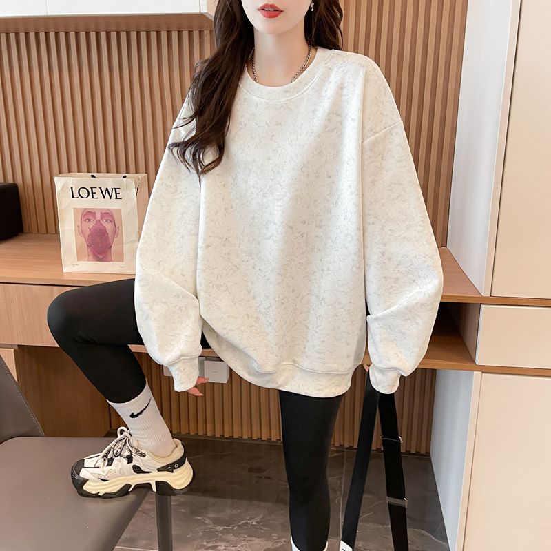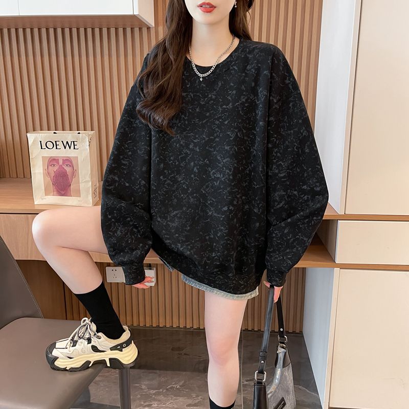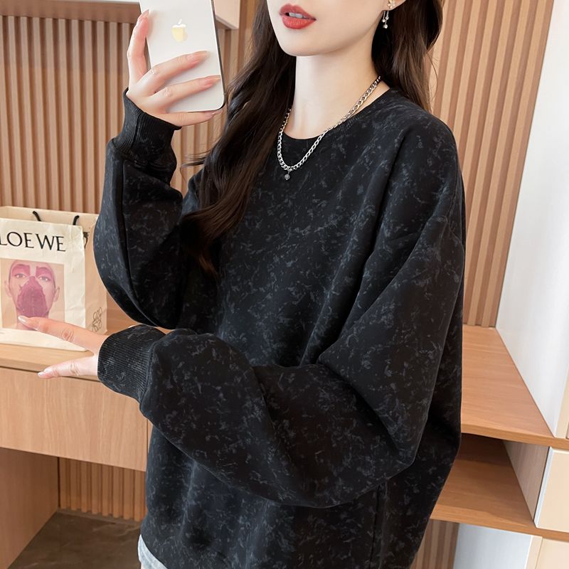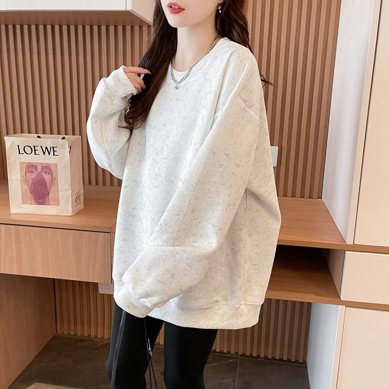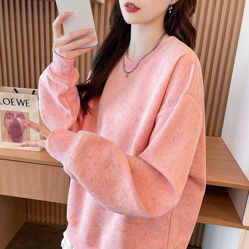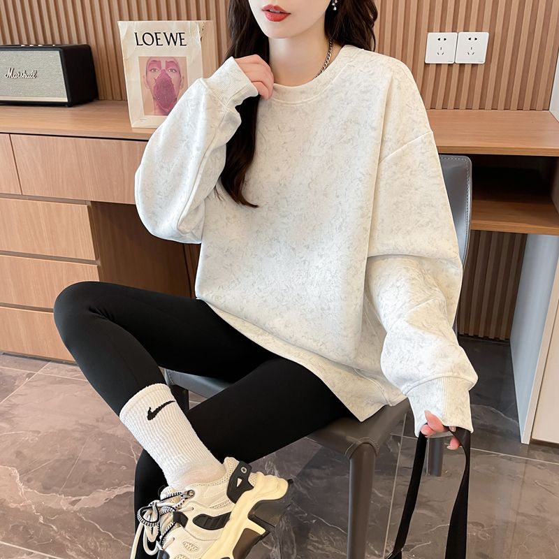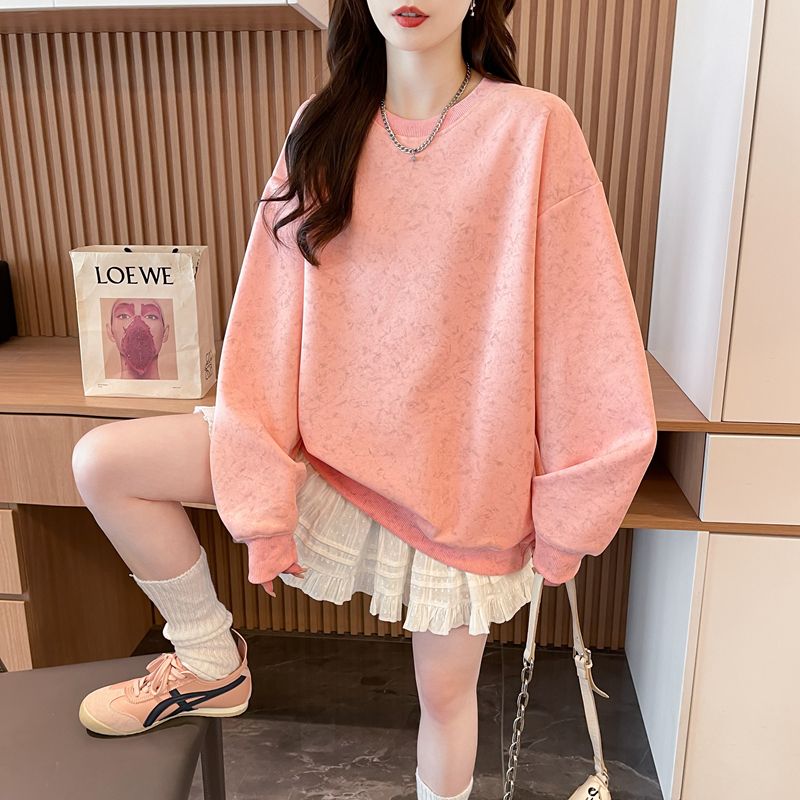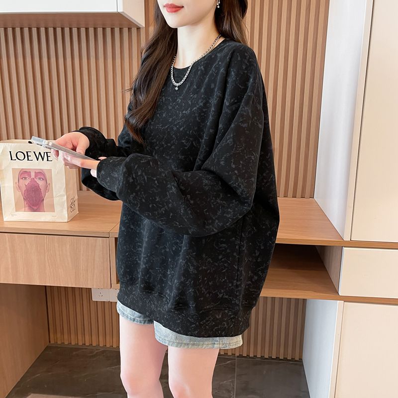여성용 코튼 합성 밀크 실크 마감 처리된 빈티지, 가벼운 타이 다이 루즈핏 스웨트셔츠의 실제 사진입니다.