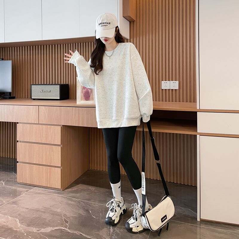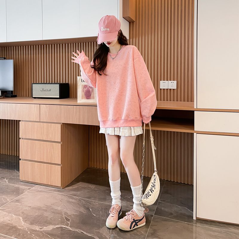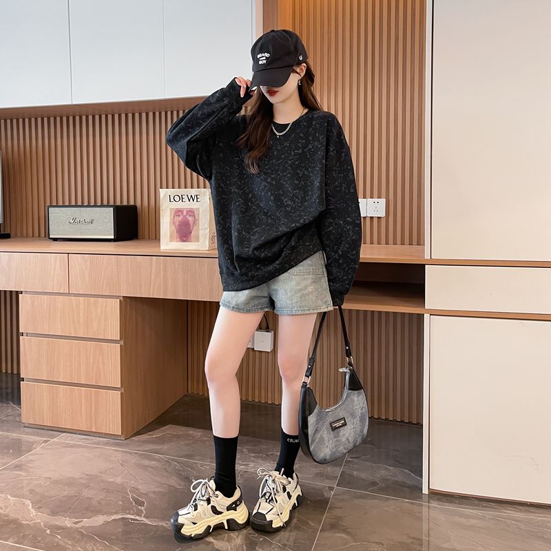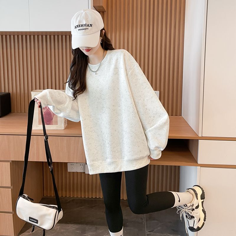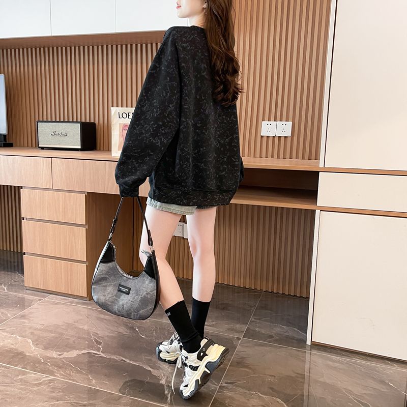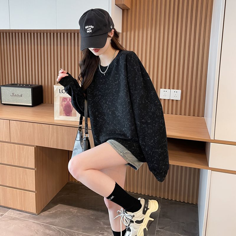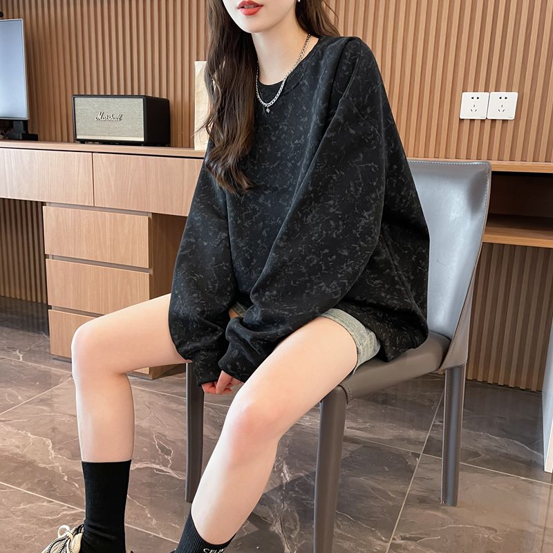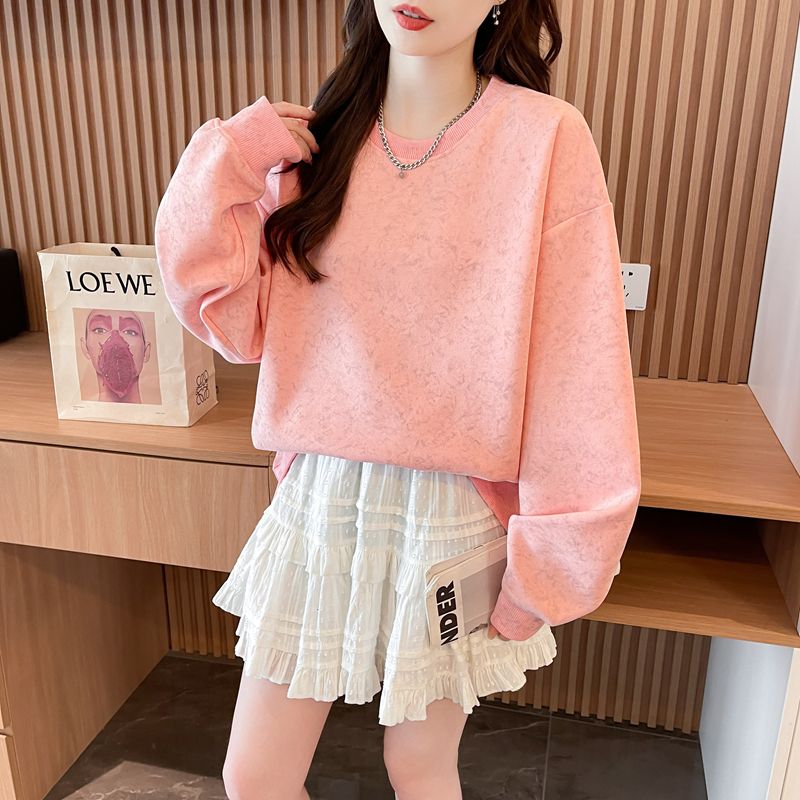여성용 코튼 합성 밀크 실크 마감 처리된 빈티지, 가벼운 타이 다이 루즈핏 스웨트셔츠의 실제 사진입니다.