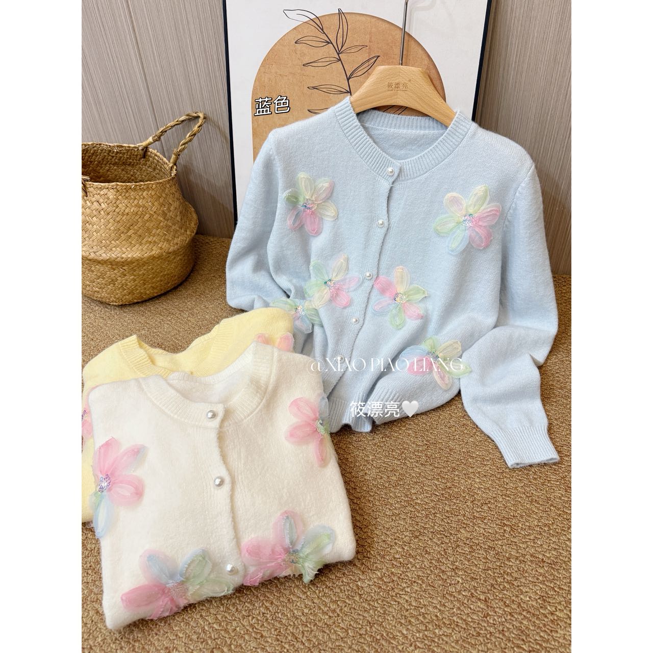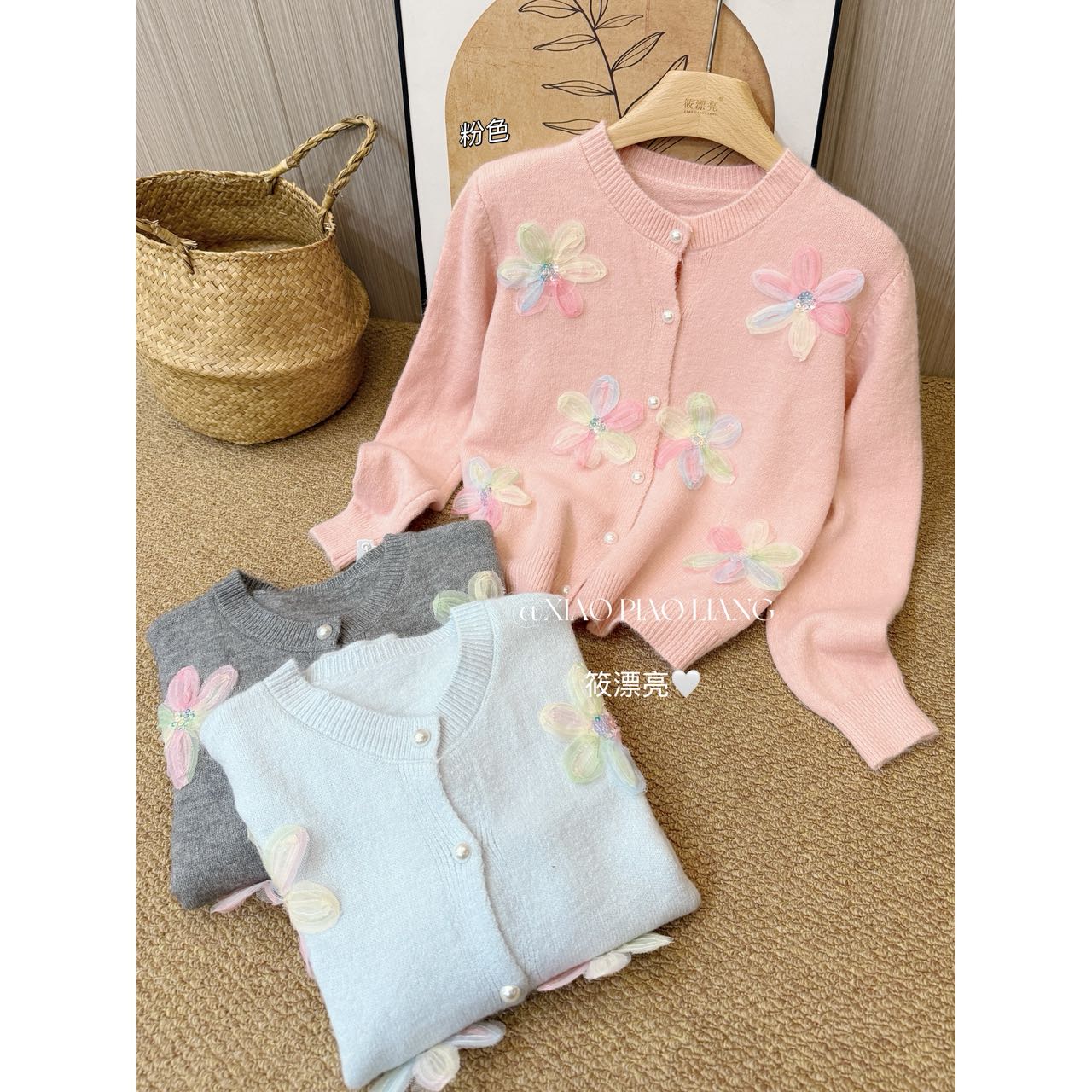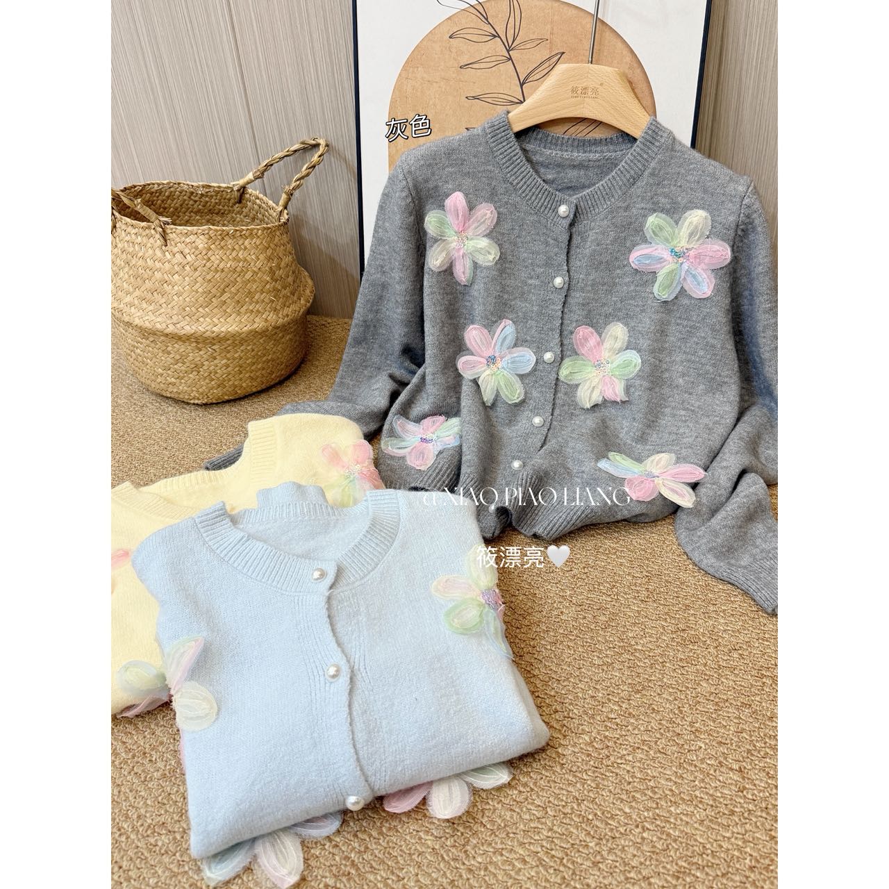 여성용 튼튼한 3D 컬러풀한 꽃무늬 니트 카디건, 2025년 신상품, 사랑스럽고 깔끔함.