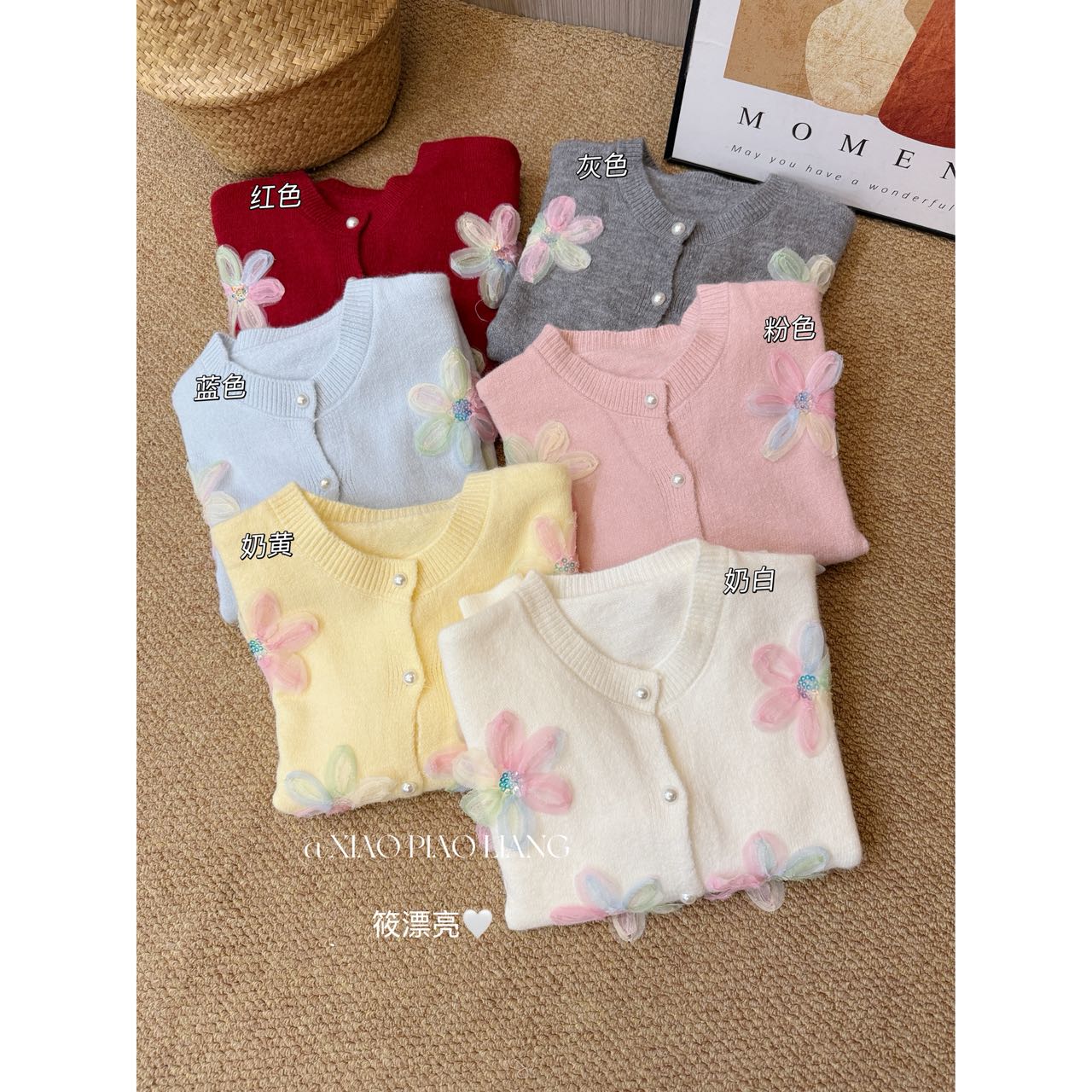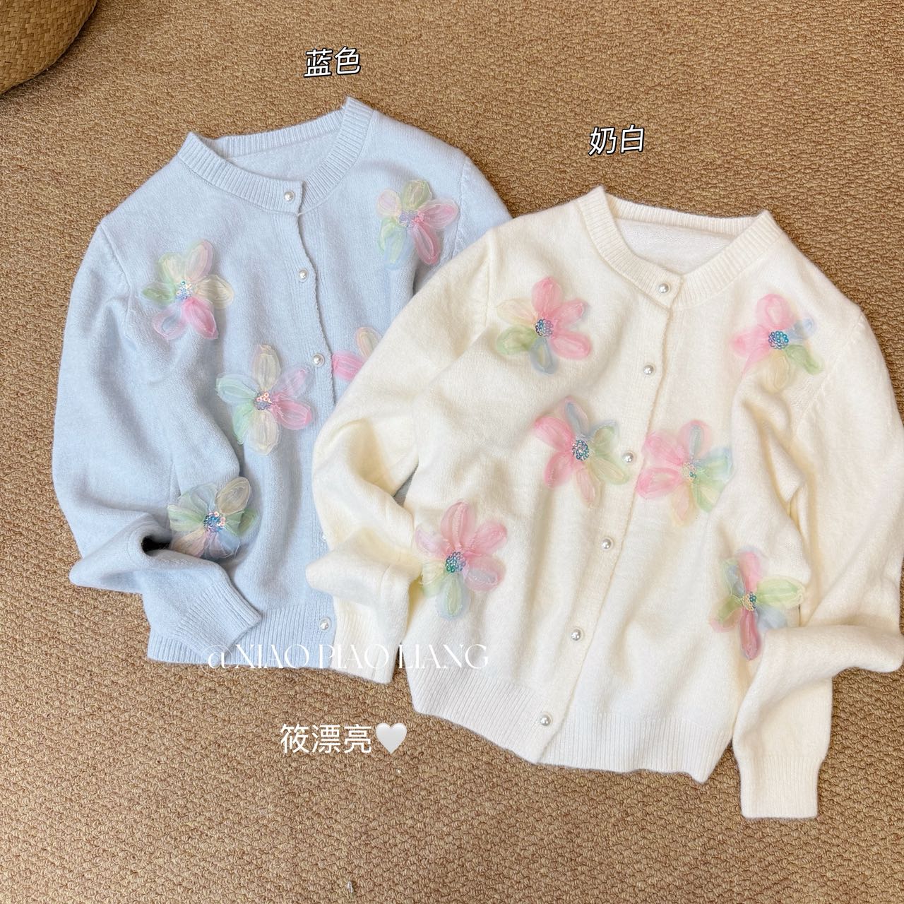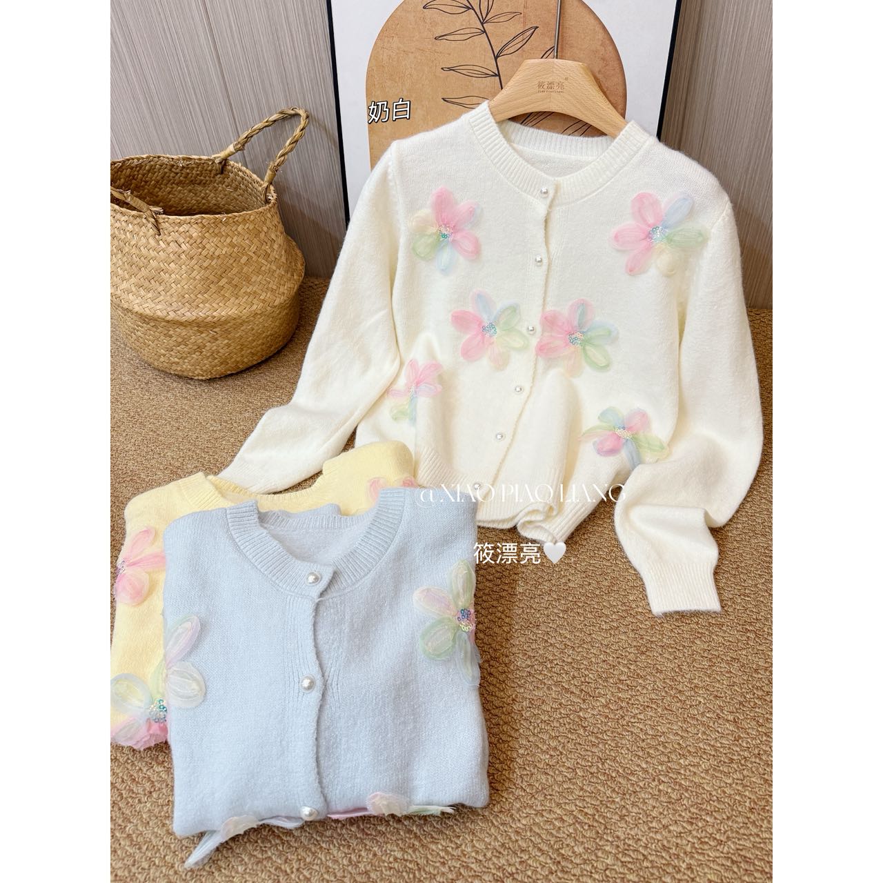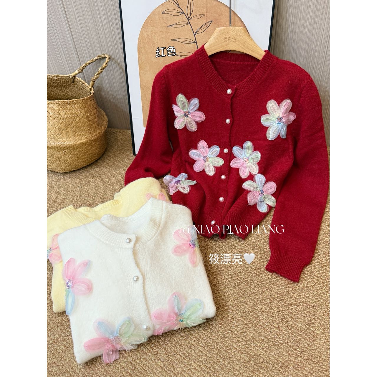 여성용 튼튼한 3D 컬러풀한 꽃무늬 니트 카디건, 2025년 신상품, 사랑스럽고 깔끔함.