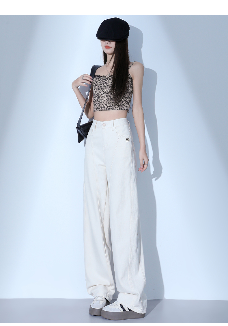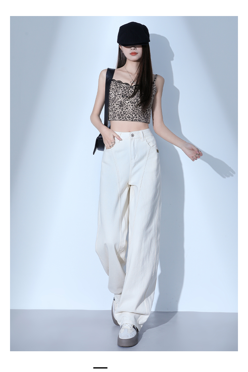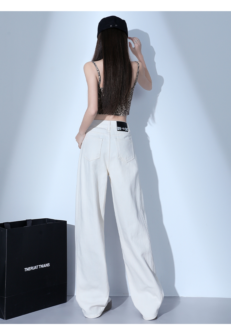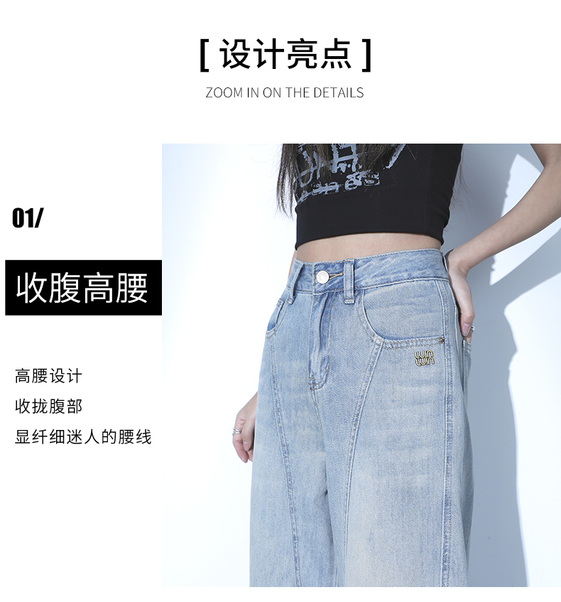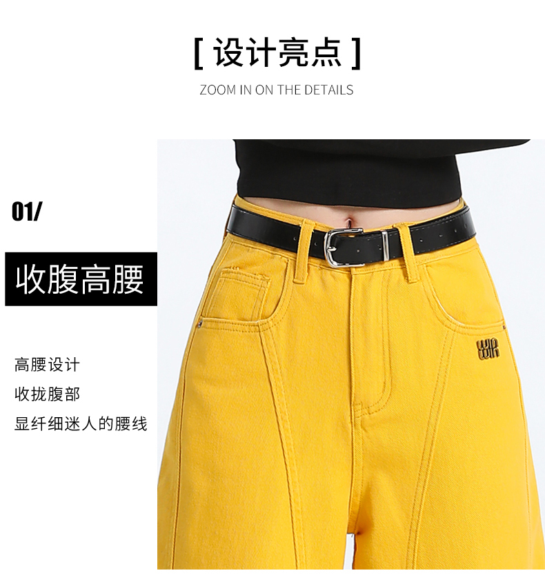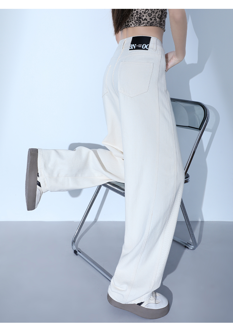 낫 모양의 와이드 레그 진, 루즈핏, 핏이 예쁘고, 바닥까지 내려오는 길이, 하늘색, 살구색, 노란색, 매우 긴 바지
